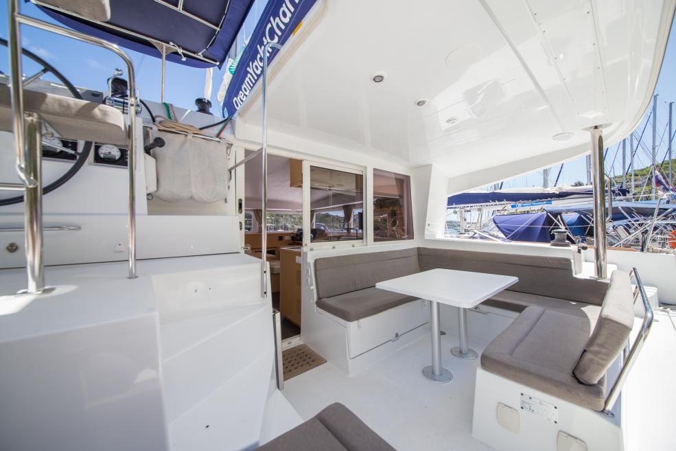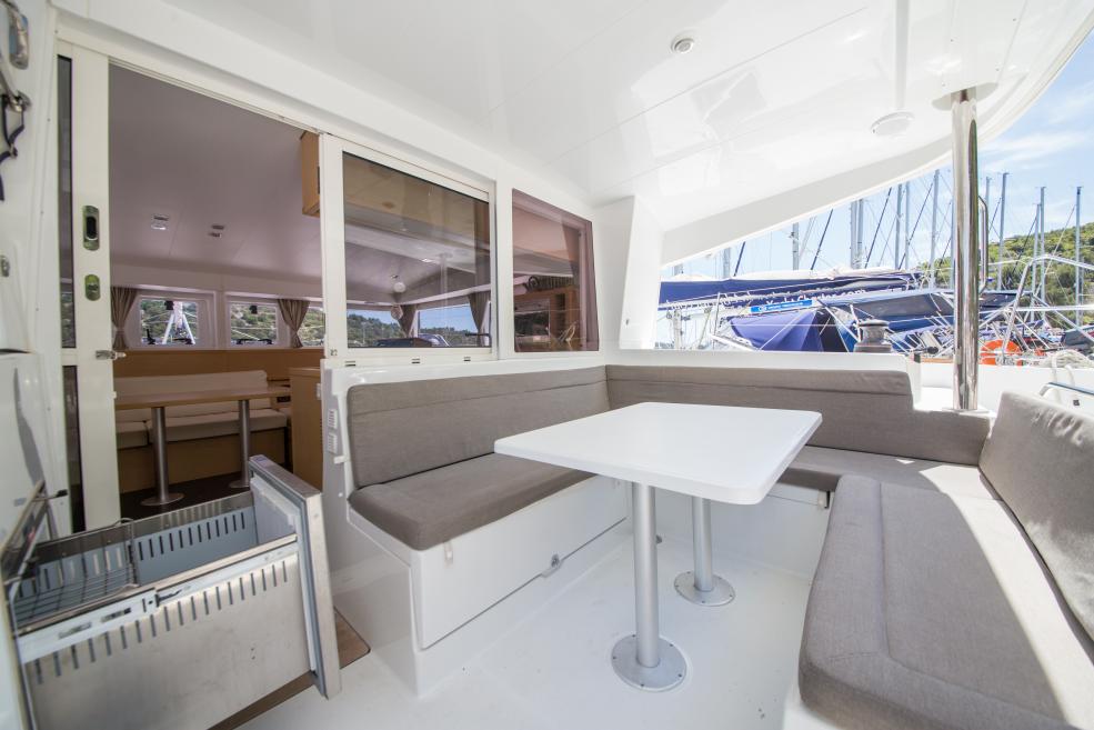 | Outside | 220 V-Landanschluss, Badeleiter, Biminitop, Cockpitdusche, Cockpitlautsprecher, Cockpitpolster, Cockpittisch, Davits, elektr. Ankerwinsch, elektr. Winsch, Selbstholende Winschen, Sprayhood, Windex |