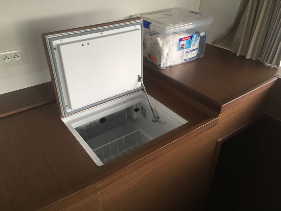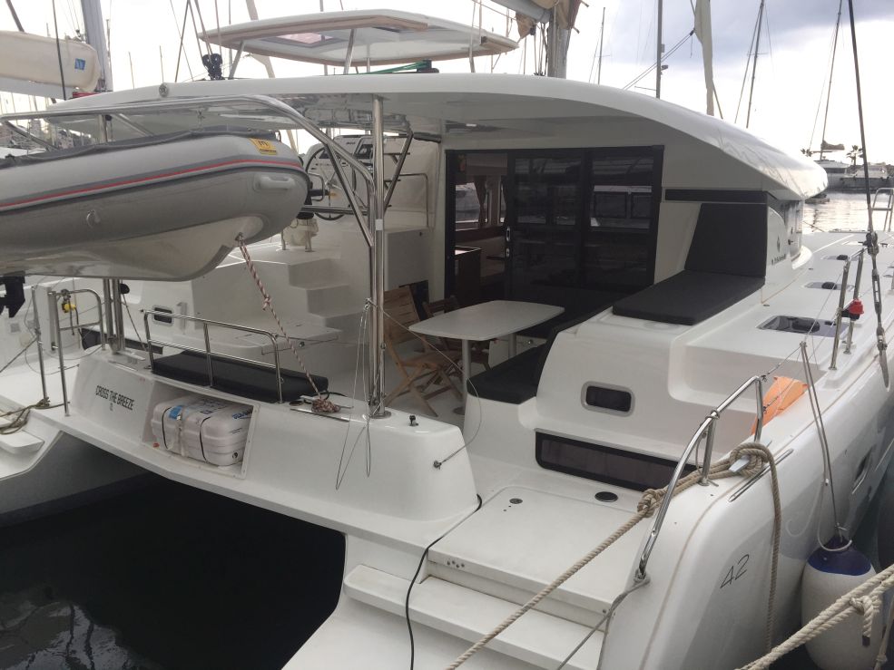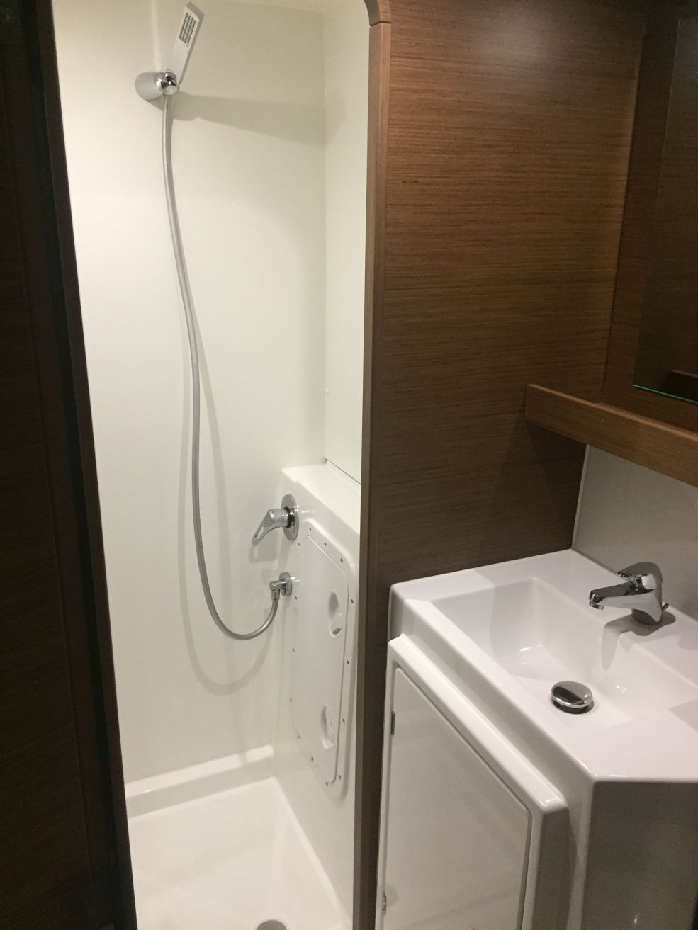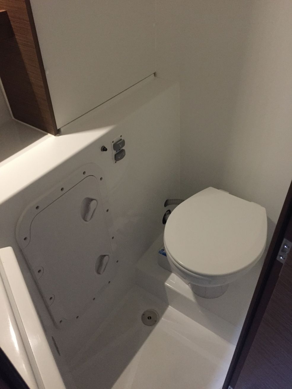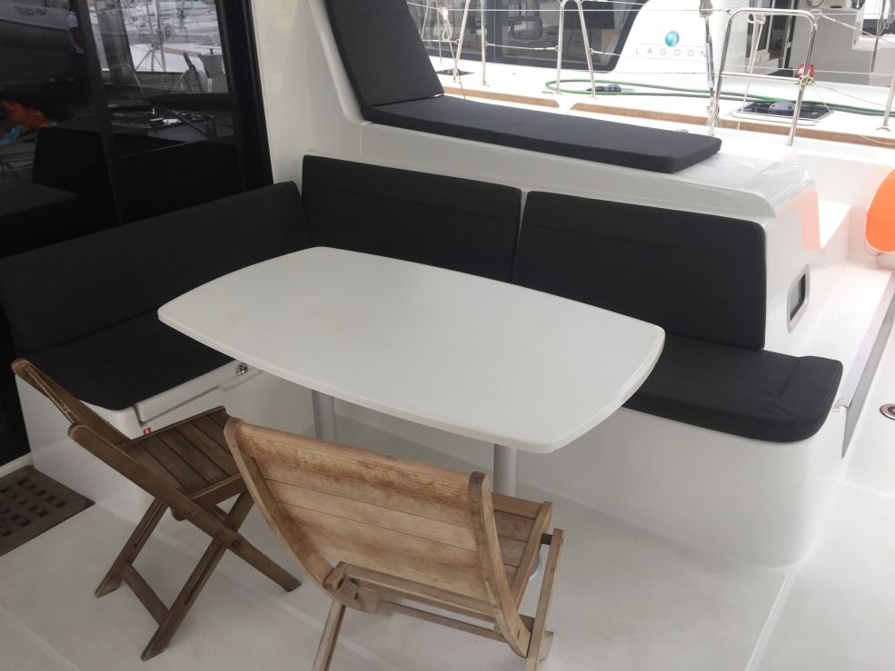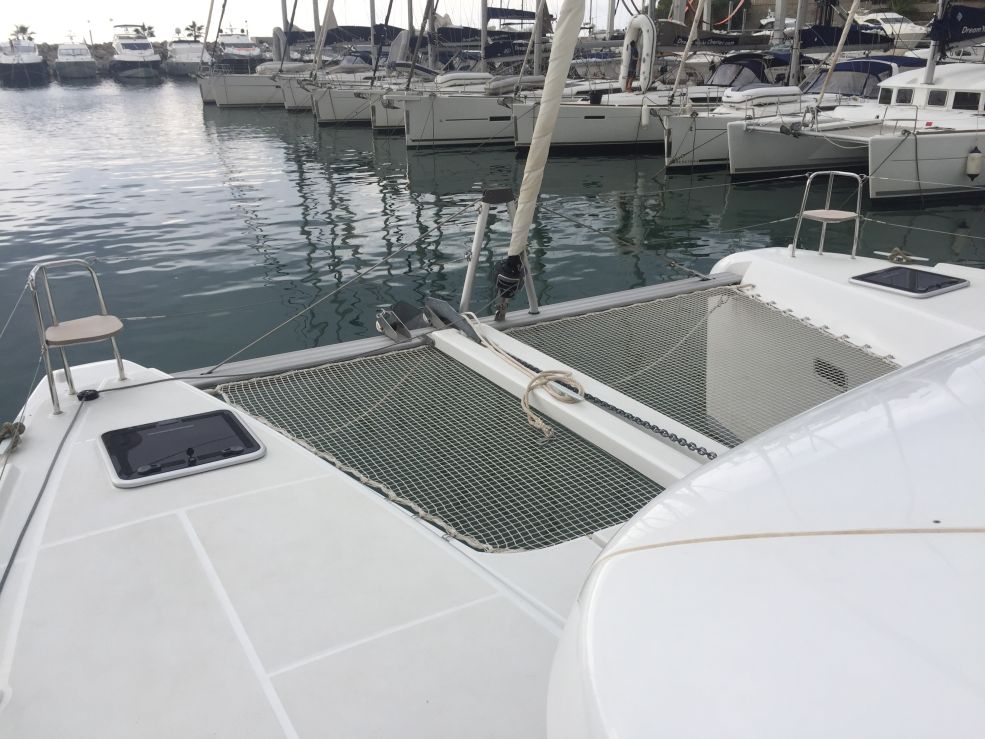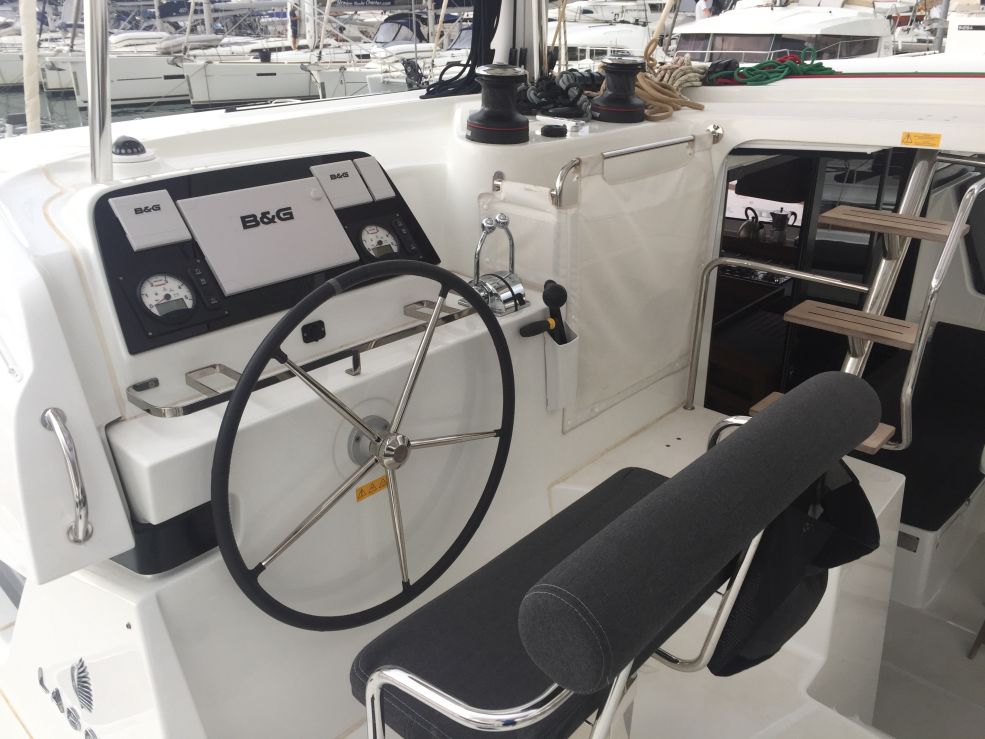 | Inside | 2. Kühlschrank, 220V Steckdosen, Backofen, FUSION Sound System, Gasherd, Inverter 12V/220V, Kühlschrank, Ladegerät, Radio, Salontisch absenkbar, USB Steckdosen in den Kabinen, Ventilatoren in Salon und Kabinen, WC (elektr.) |