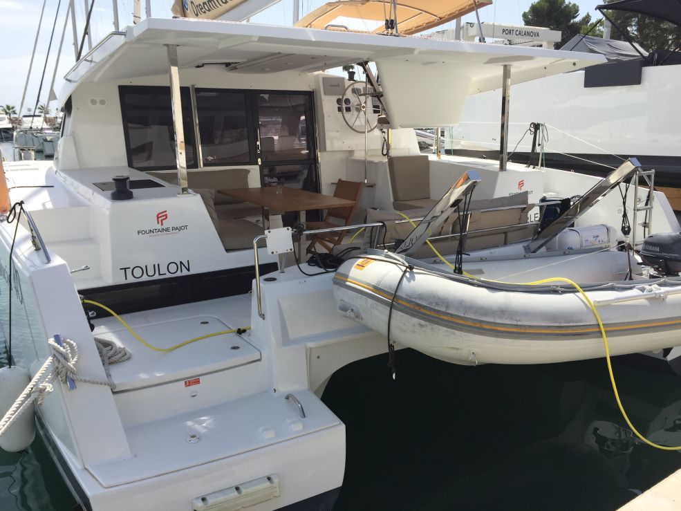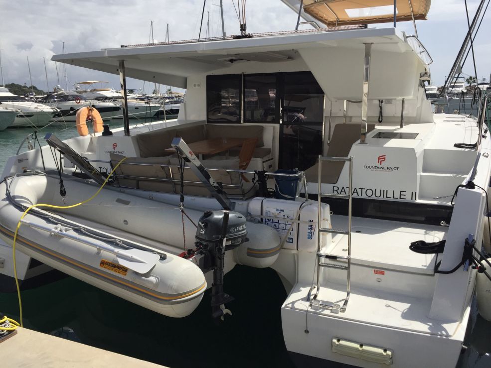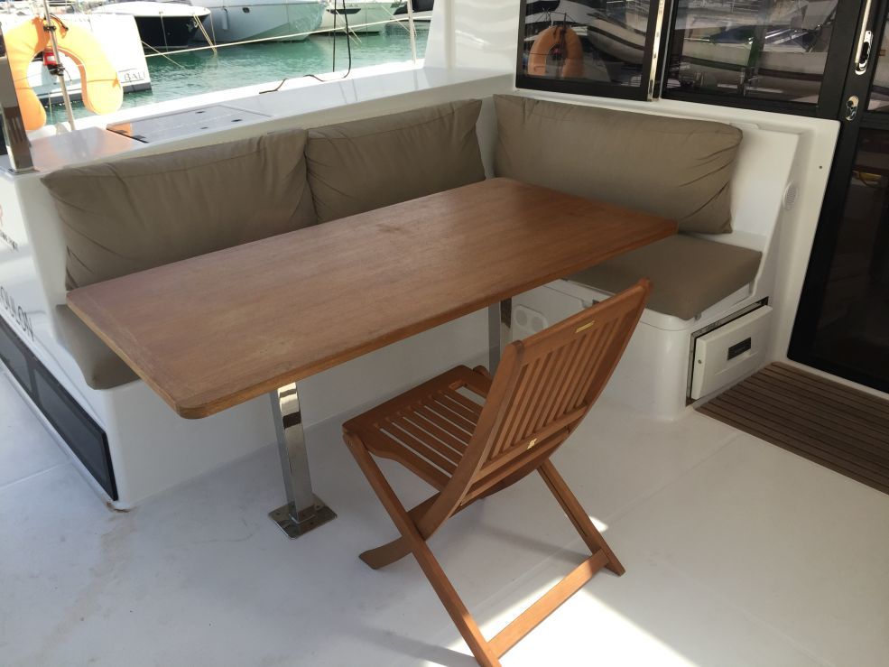 | Inside | Backofen, FUSION Sound System, Gasherd, Inverter 12V/220V, Kühlschrank, Radio mit Bluetooth, Salontisch absenkbar, TV, Ventilatoren in Kabinen, Watermaker, WC (elektr.) |