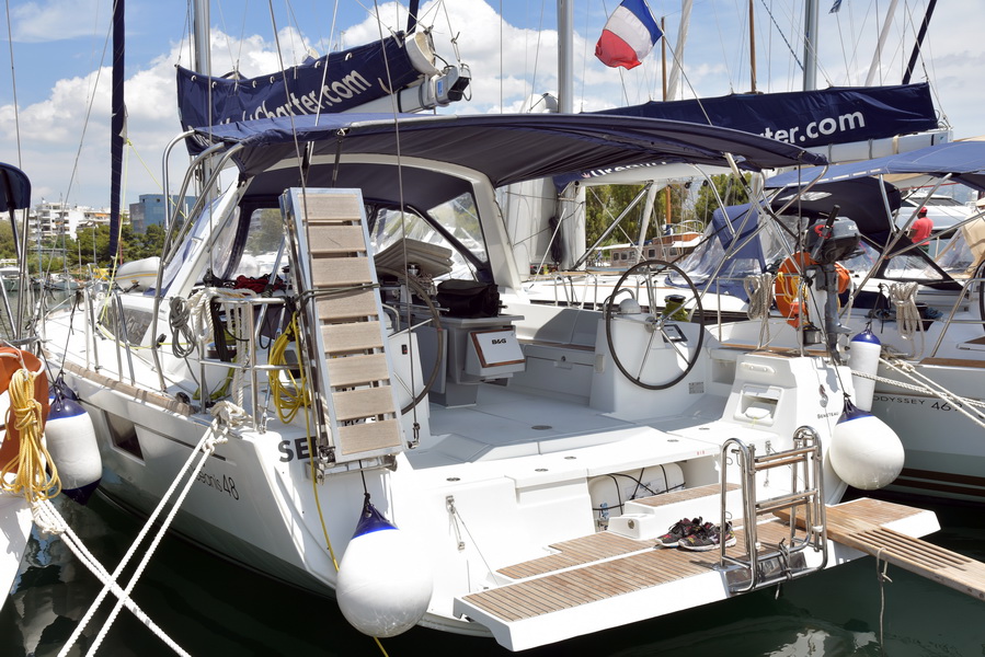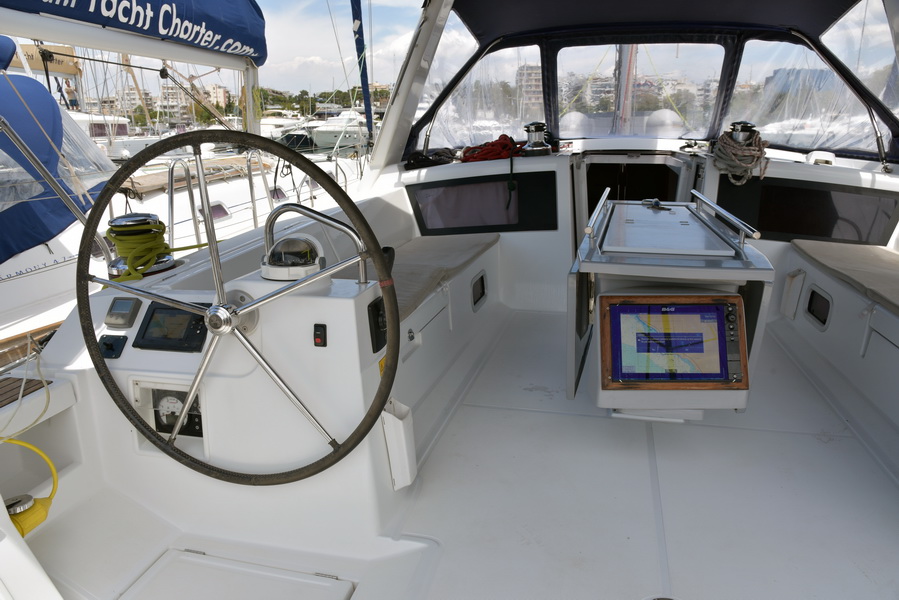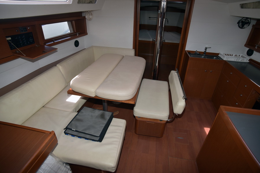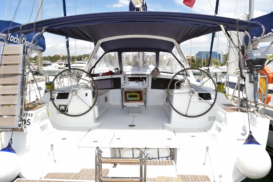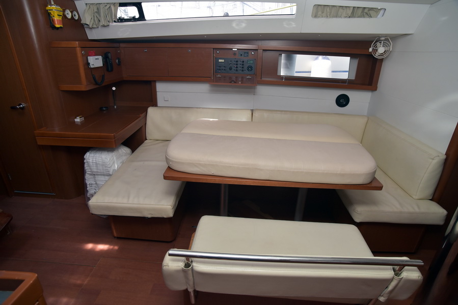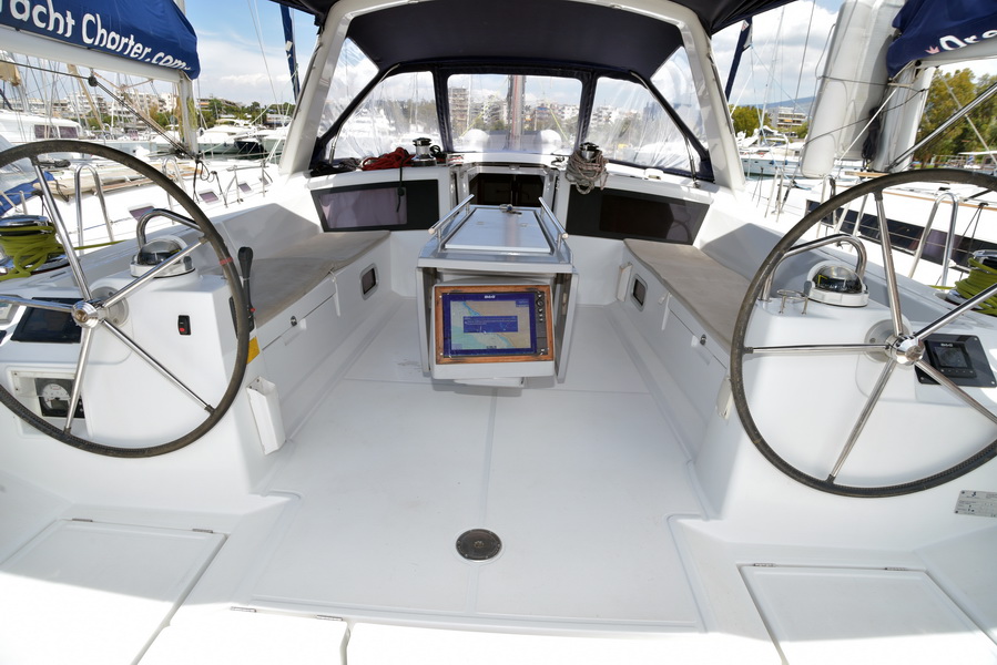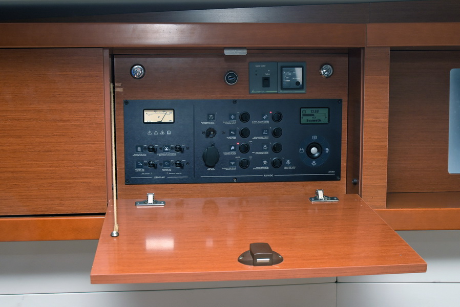 | Outside | 12 V-Anschluss, 220 V-Landanschluss, Badeleiter, Biminitop, Cockpitdusche, Cockpitlautsprecher, Cockpitpolster, Cockpittisch, Cockpittisch mit Eisbox, elektr. Ankerwinsch, Gangway, Schnorchelausrüstung, Selbstholende Winschen, Sprayhood, Windex |