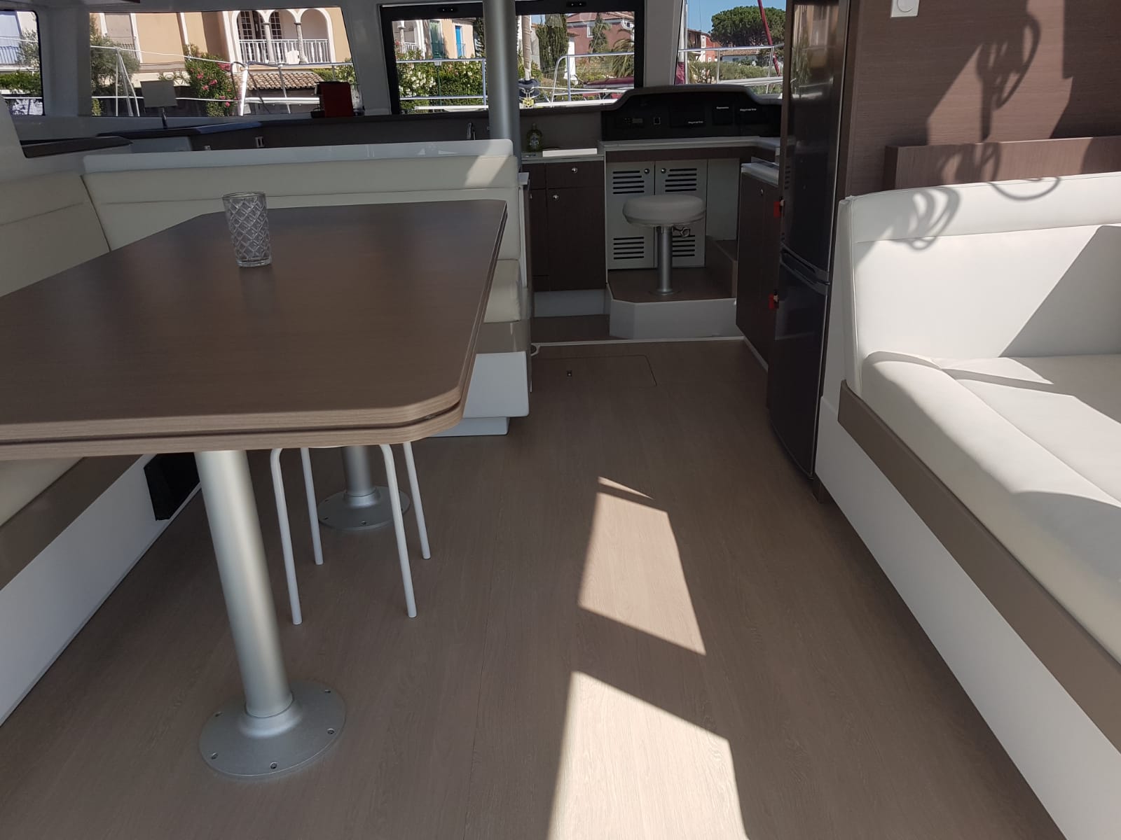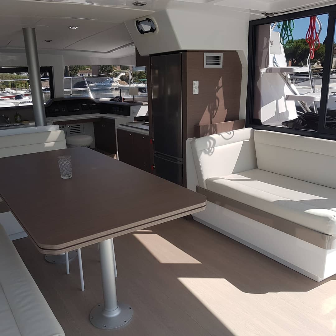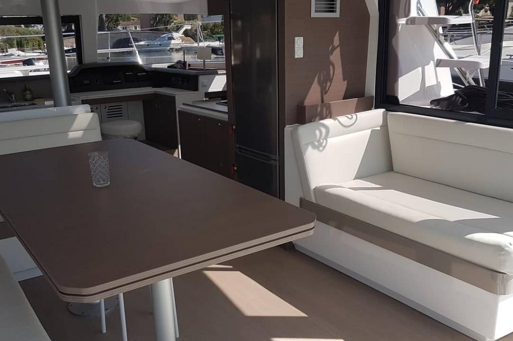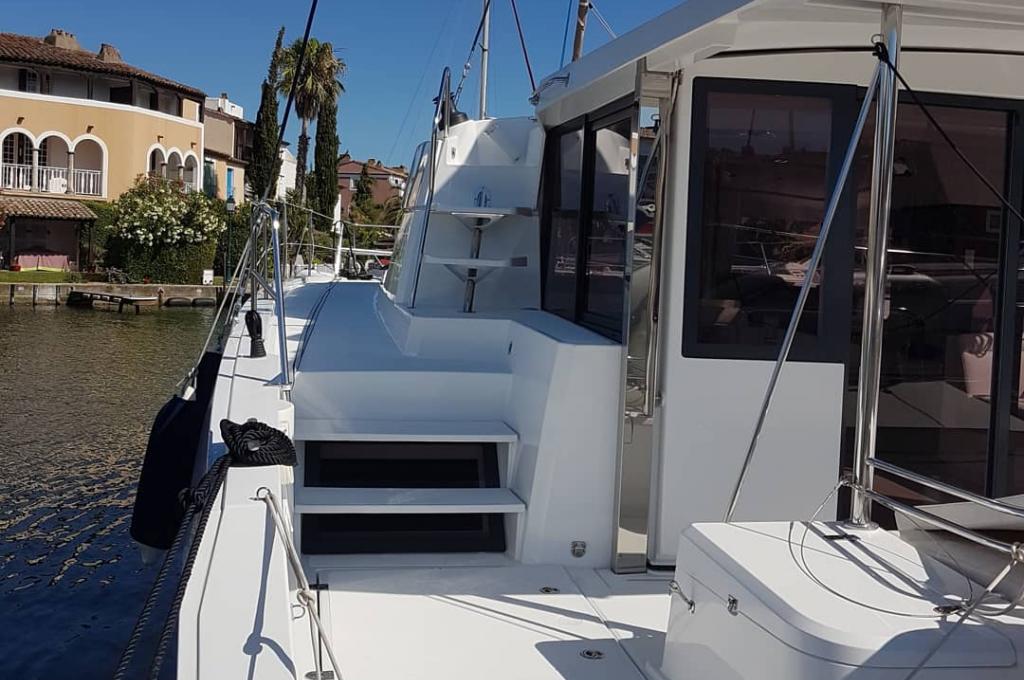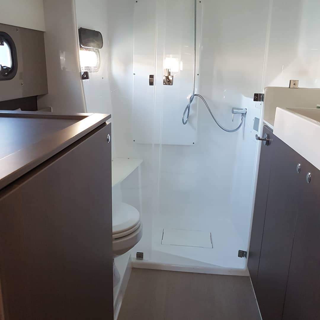 | Outside | Außendusche, Badeleiter, Biminitop, Cockpitdusche, Cockpittisch, elektr. Ankerwinsch, Grill, Solaranlage, Sprayhood, Teakdeck |