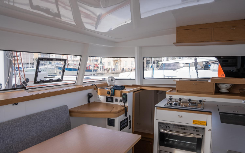 | Inside | Backofen, Bluetooth Player, Druckwasser, FUSION Sound System, Gasherd, Gefrierschrank, Inverter 12V/220V, Kühlschrank, Pantryausstattung, Sound System, Ventilator, Warmwasser, WC (elektr.) |