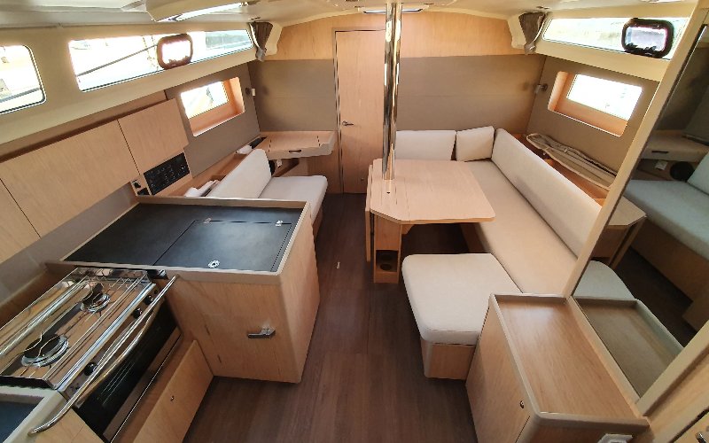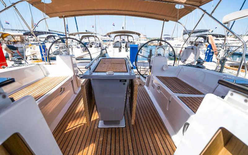| Outside | Cockpitdusche, Cockpittisch, elektr. Winsch, Sprayhood, Teak im Cockpit |