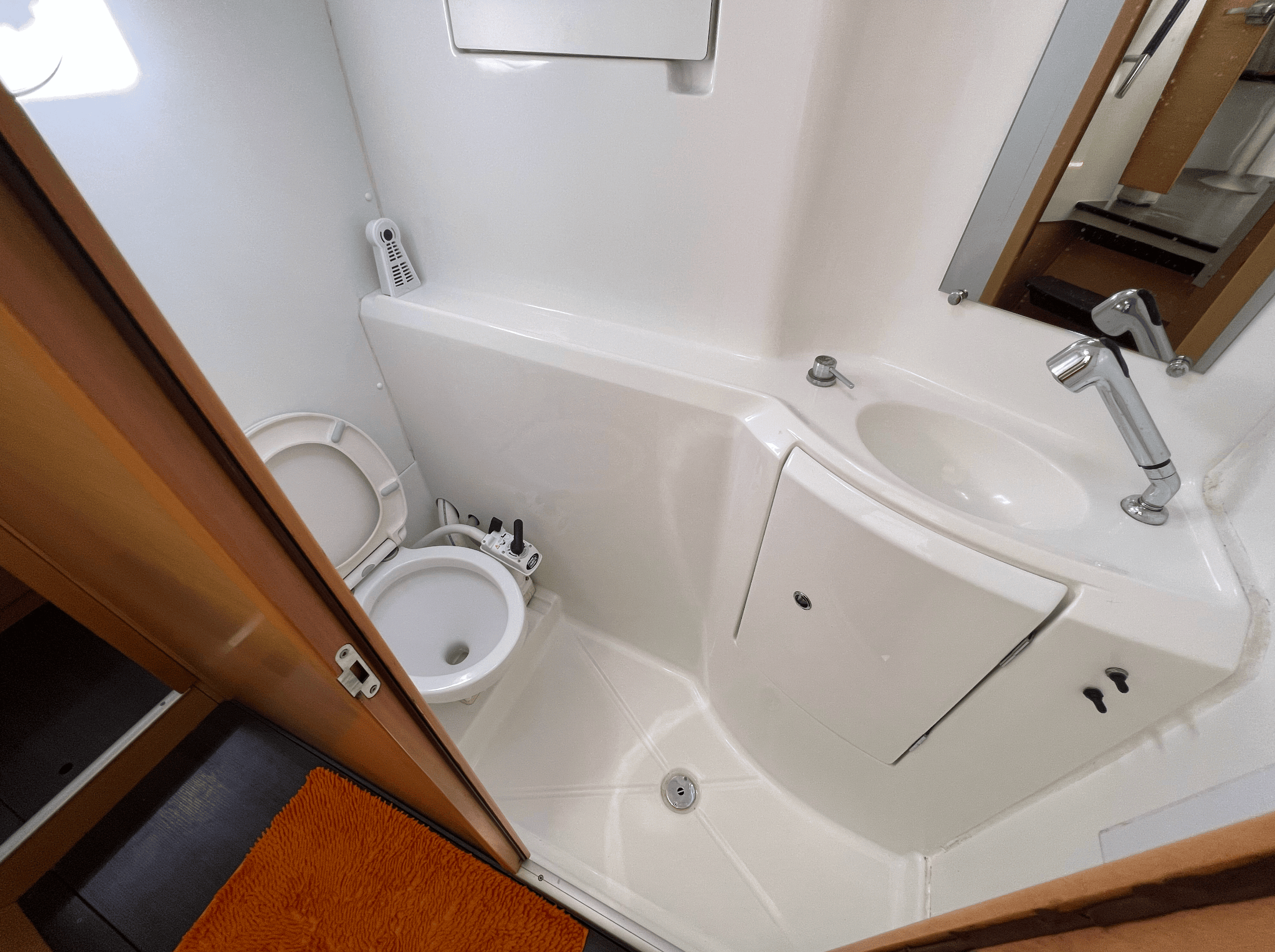 | Outside | 12 V-Anschluss, Anker mit Kette, Biminitop, Cockpitdusche, Cockpitpolster, Cockpittisch, Grill, Solaranlage, Winschen |