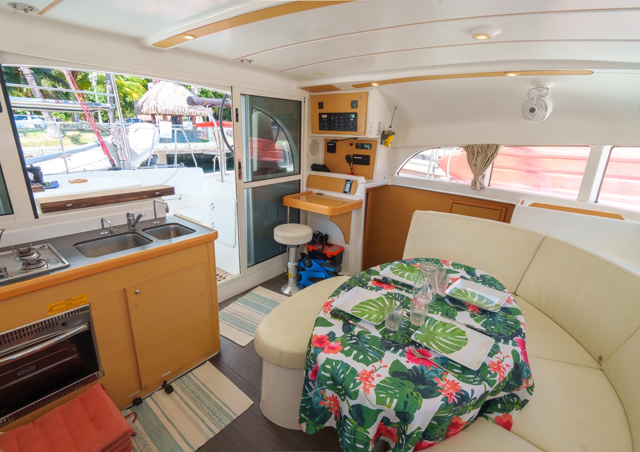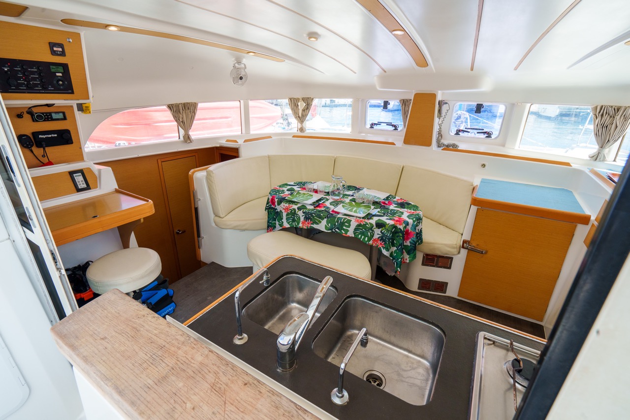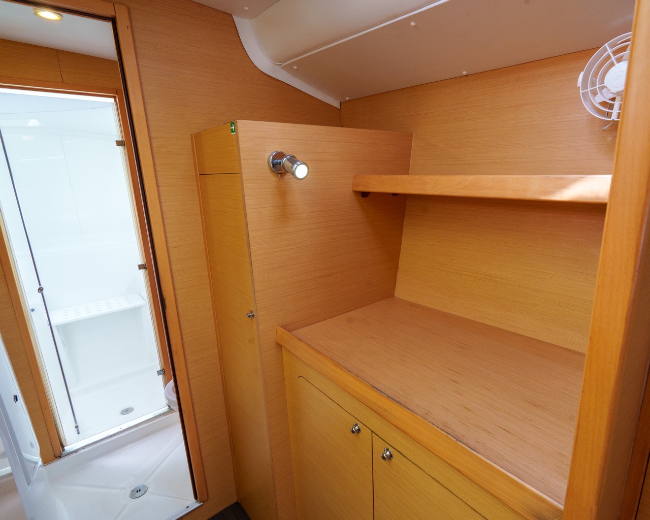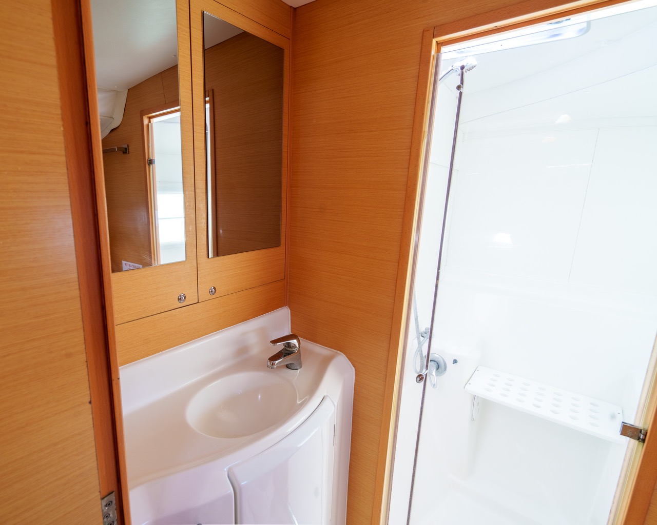 | Outside | 12 V-Anschluss, Anker mit Kette, Biminitop, Cockpitdusche, Cockpitpolster, Cockpittisch, Grill, Solaranlage, Winschen |