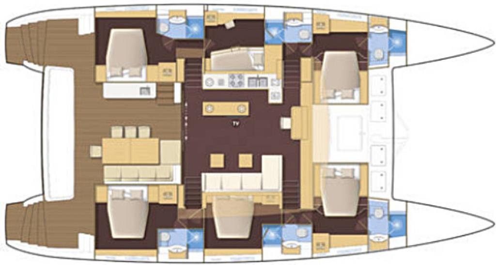 | Inside | 220V Steckdosen, Dusche, Gasherd mit Backofen, Gefrierschrank, Generator, Geschirrspüler, Inverter 12V/220V, Klimaanlage, Kühlschrank, Ladegerät, Pantryausstattung, Radio mit CD/MP3/USB (Ipod möglich), Ventilator, Ventilatoren in Kabinen, Watermaker, WC (elektr.) |