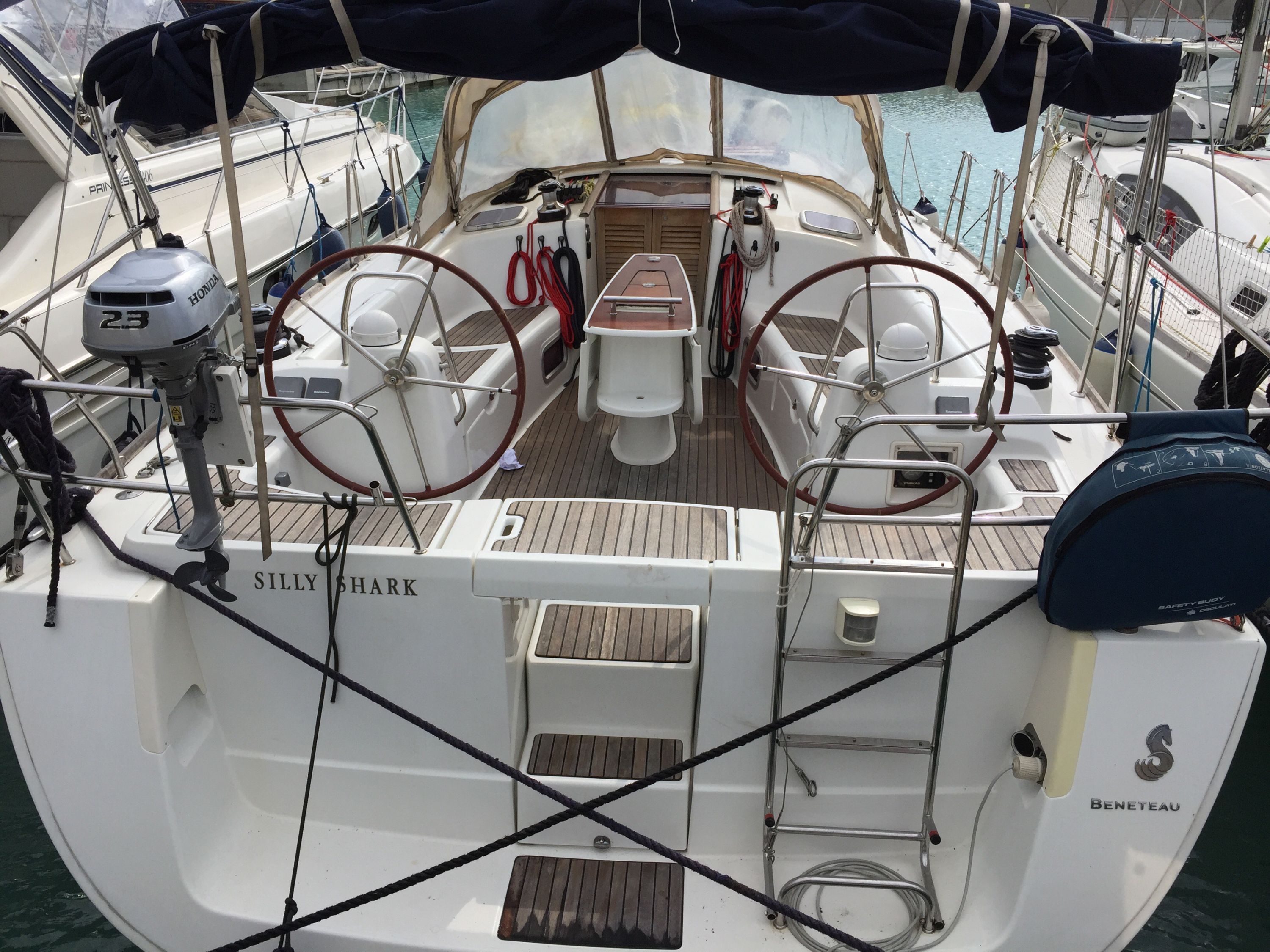 | Outside | Biminitop, Cockpitdusche, Cockpitlautsprecher, Cockpitpolster, elektr. Ankerwinsch, elektr. Winsch, Sprayhood, Teak im Cockpit |