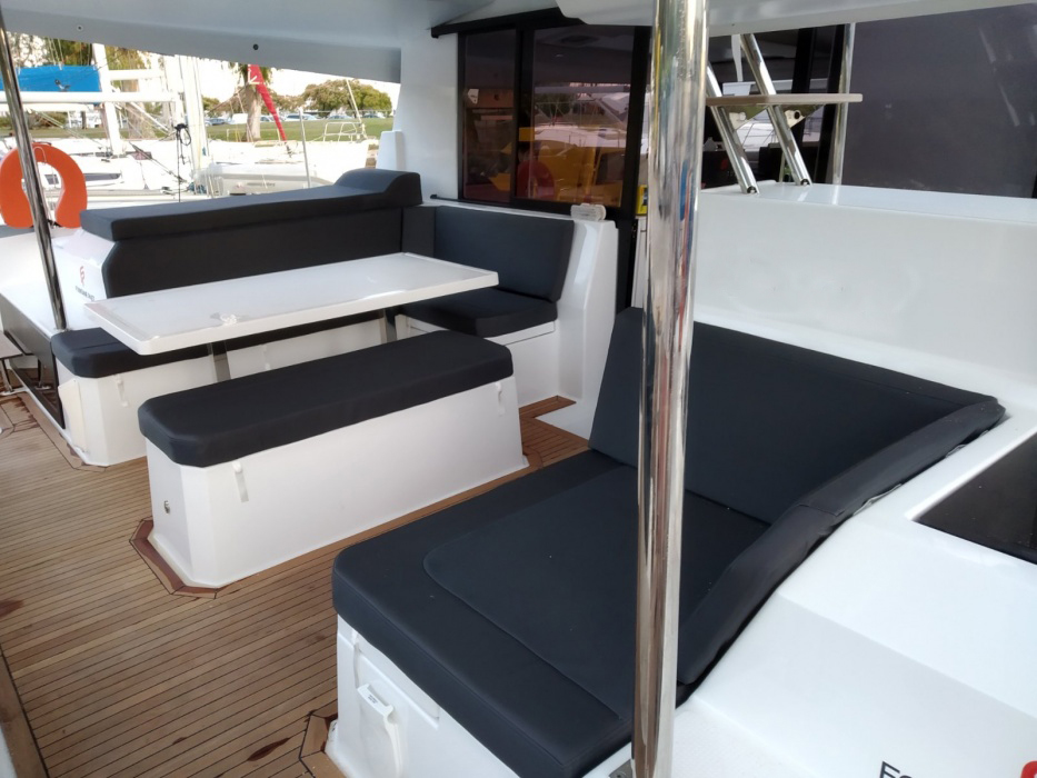 | Outside | Biminitop, Cockpitdusche, Cockpitpolster, Cockpittisch, elektr. Ankerwinsch, Solaranlage, Sprayhood |