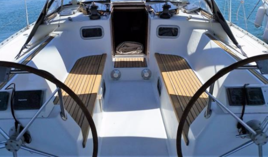 | Outside | 12 V-Anschluss, 220 V-Landanschluss, Badeleiter, Badeplattform, Biminitop, Cockpitdusche, Cockpitlautsprecher, Cockpittisch, elektr. Ankerwinsch, Fender, Grill, Solaranlage, Sprayhood, Teak auf Badeplattform |