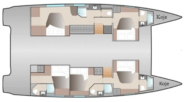 | Inside | 220V Steckdosen, Gasherd mit Backofen, Gefrierschrank, Geschirrspüler, Inverter 12V/220V, Klimaanlage (Landstrom), Mikrowelle, Pantryausstattung, USB Steckdosen in den Kabinen, Ventilatoren in Salon und Kabinen, Warmwasser, Waschmaschine, Waschmaschine mit Trockner, Watermaker, WC (elektr.) |