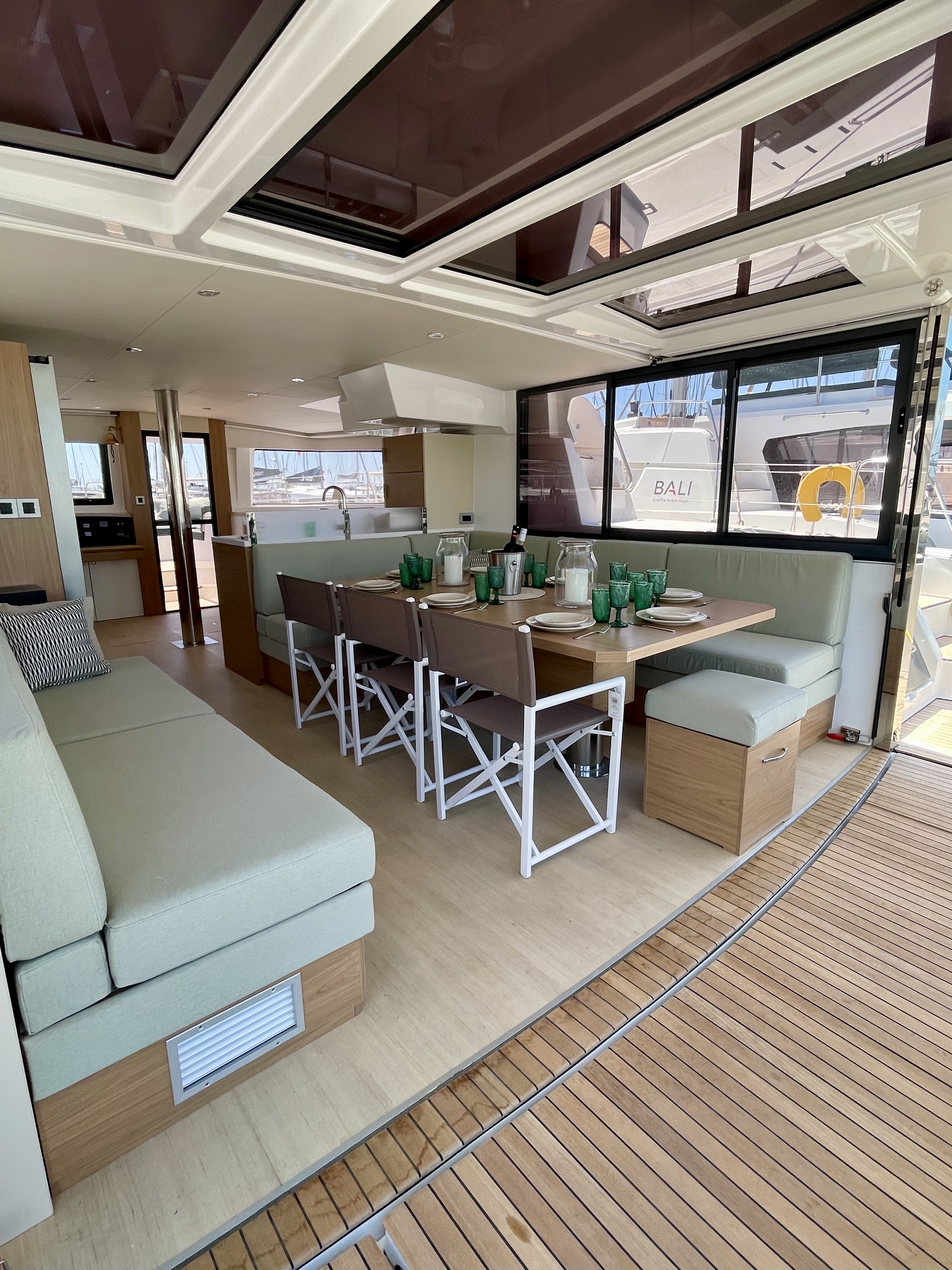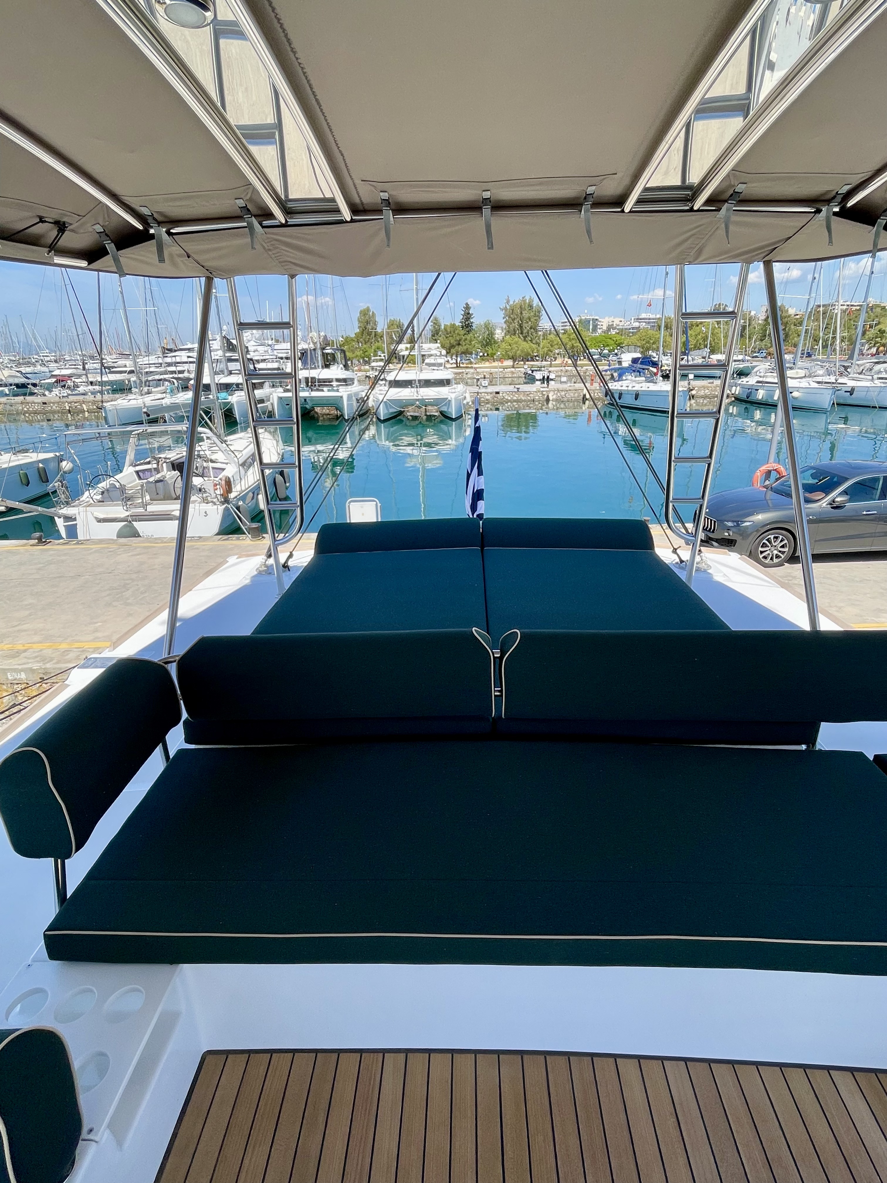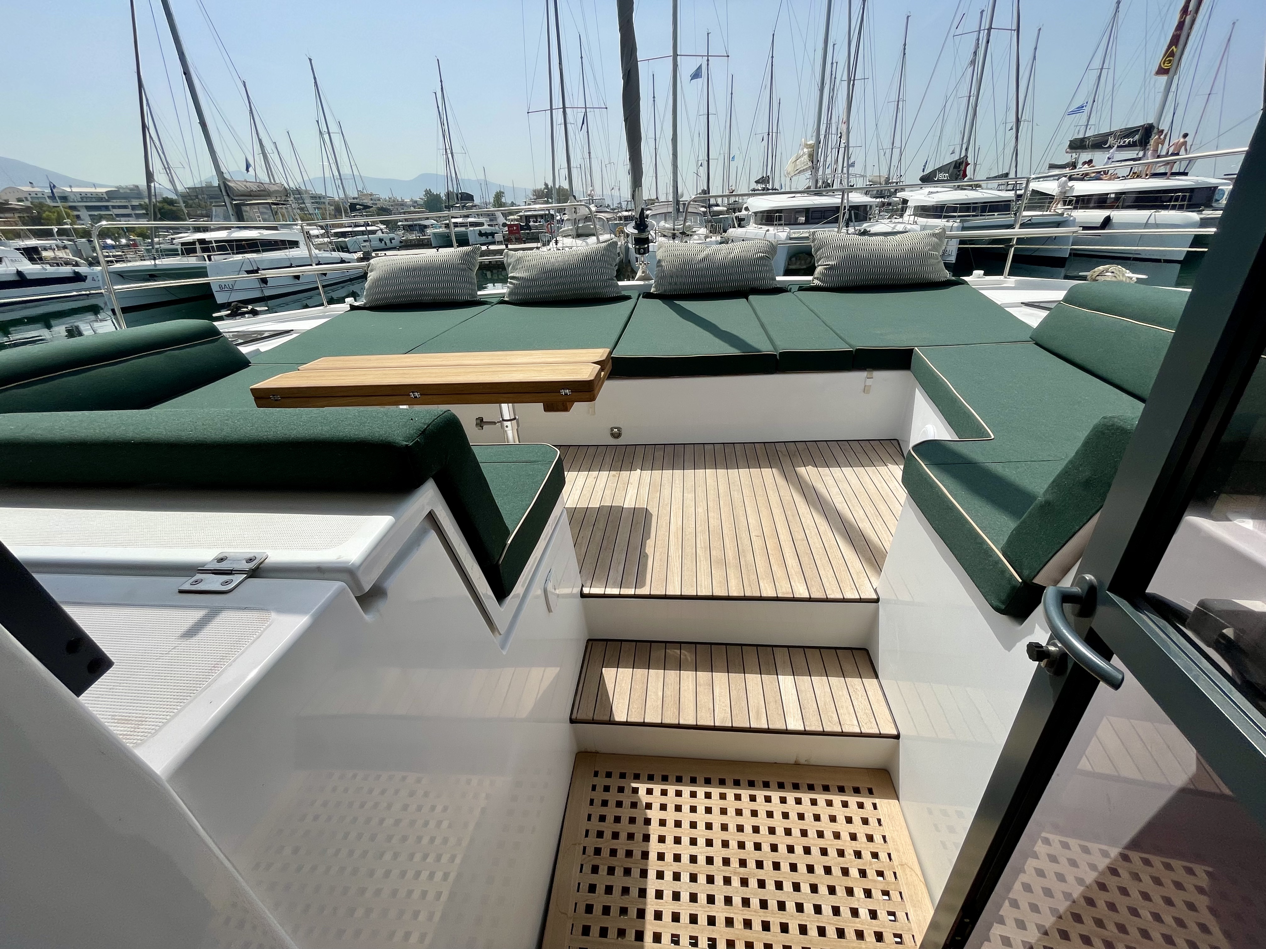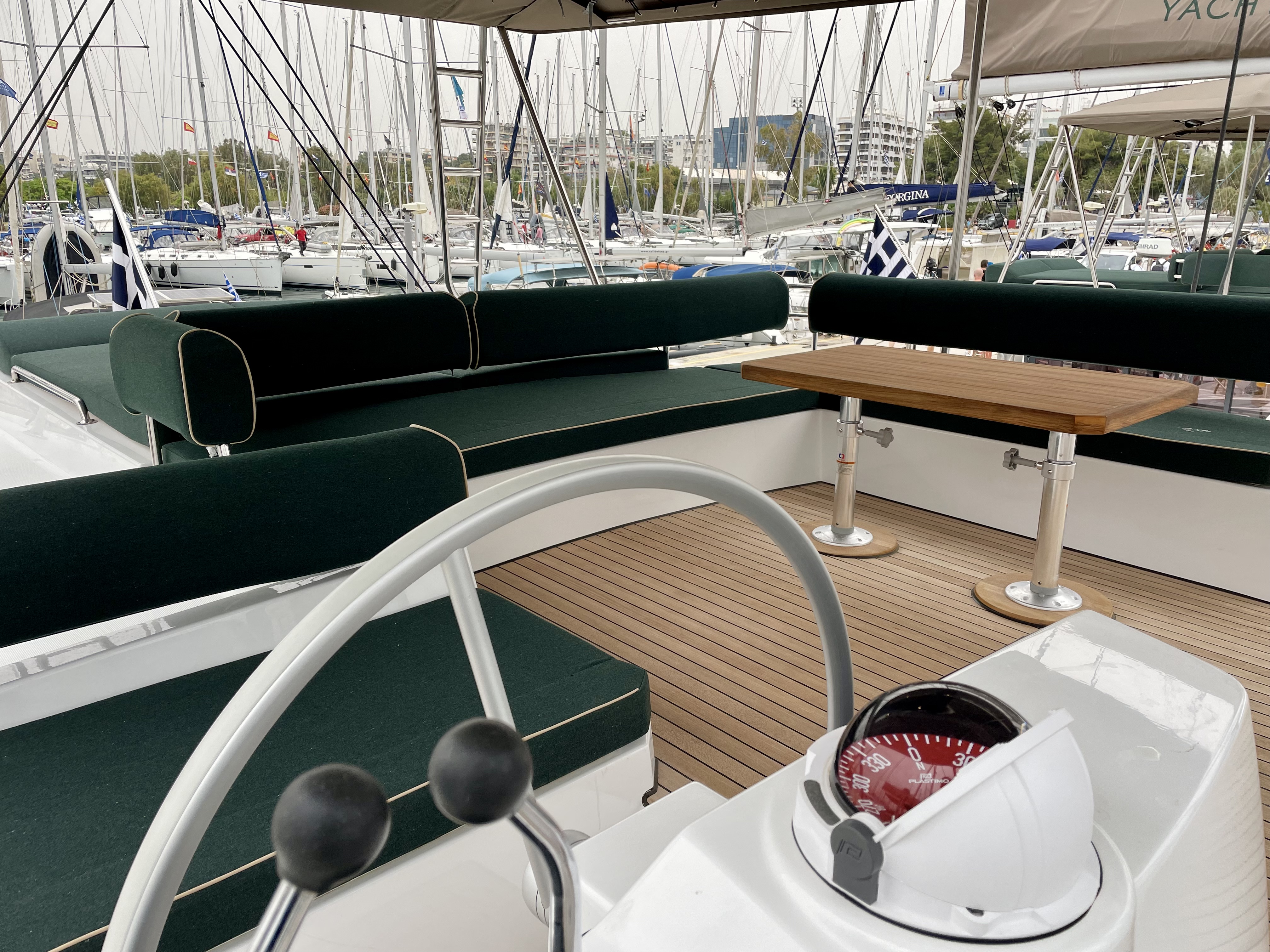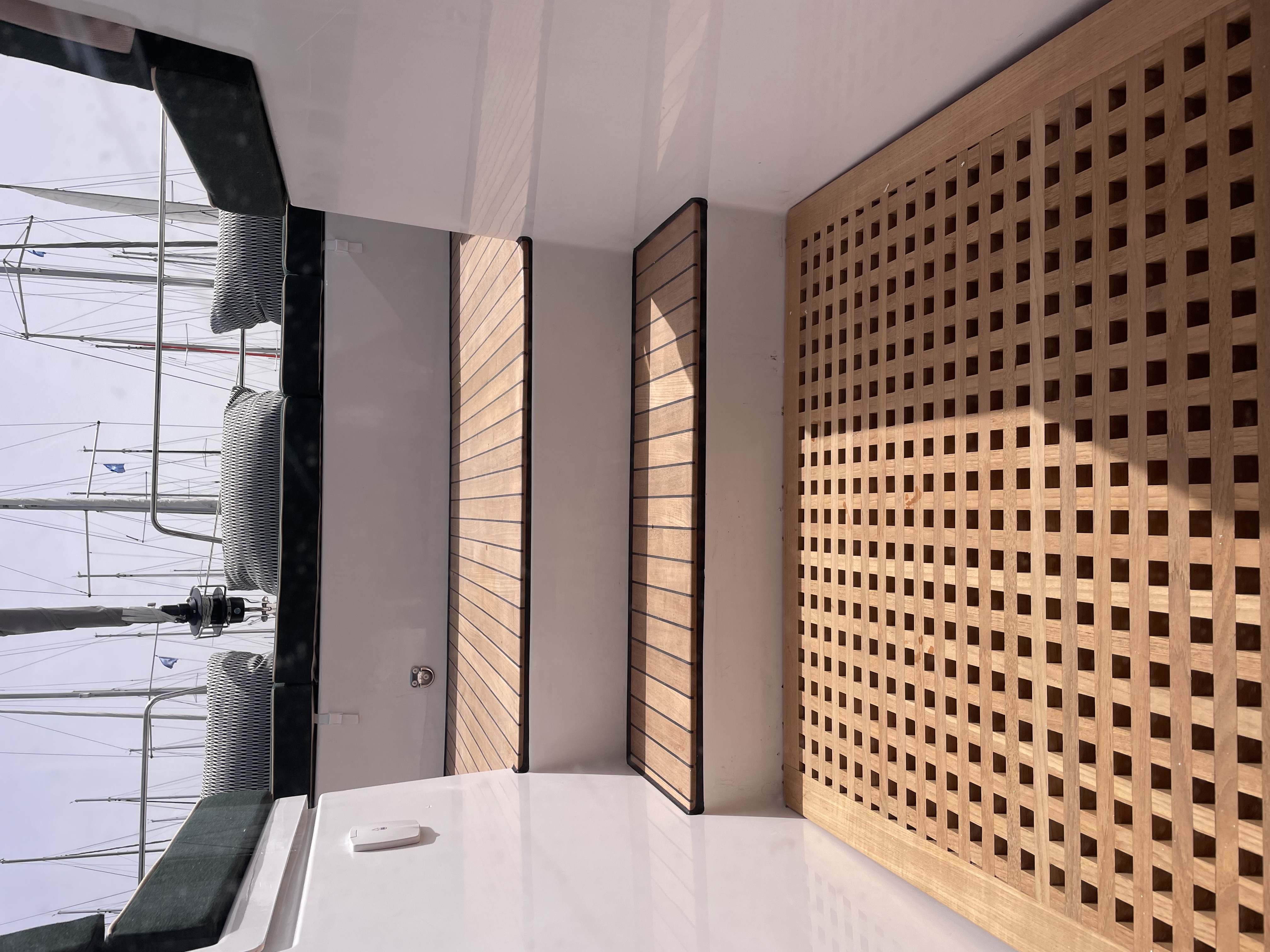 | Outside | Biminitop, Cockpitlautsprecher, elektr. Ankerwinsch, hydraul. Gangway, Solaranlage, Sprayhood, Teakdeck |