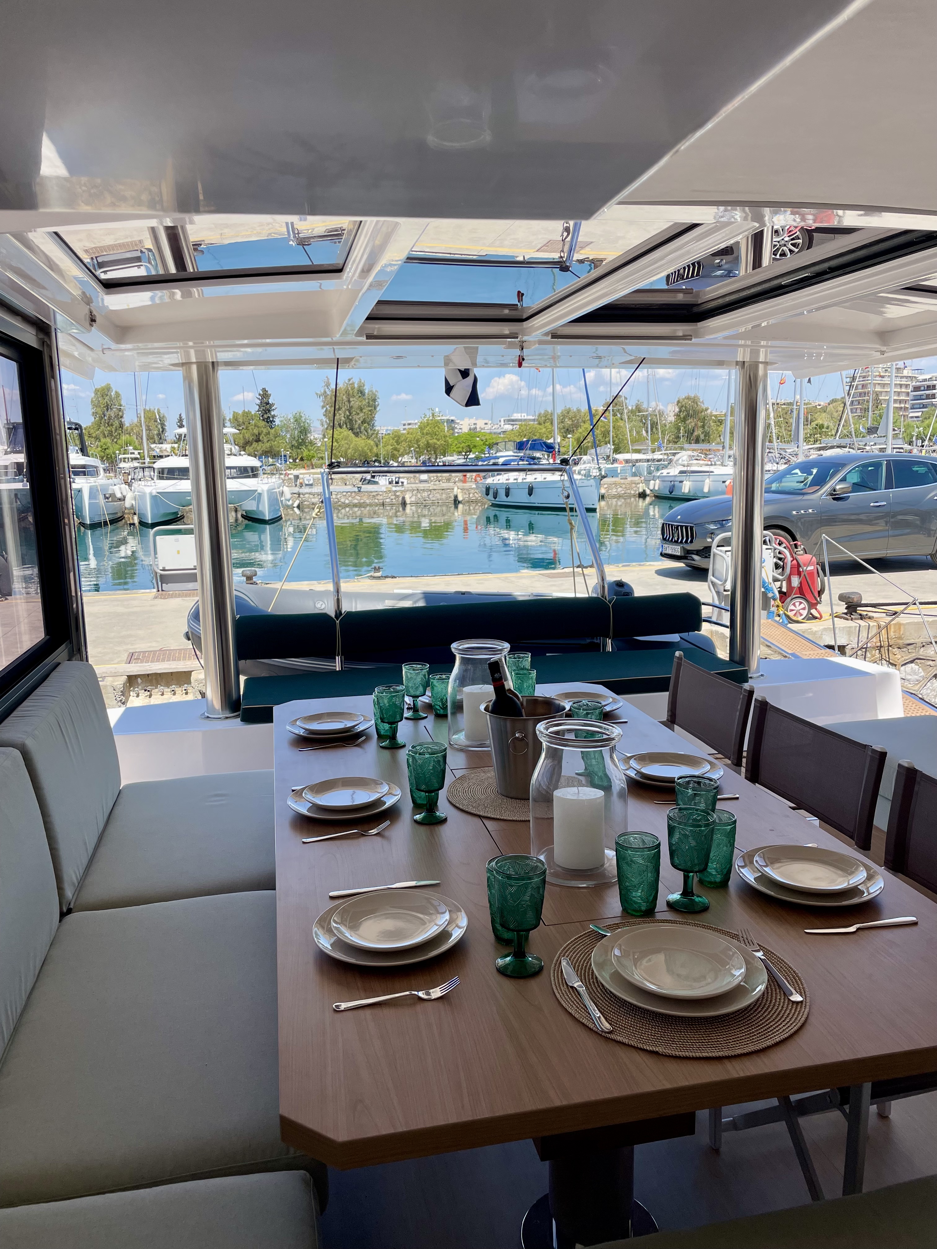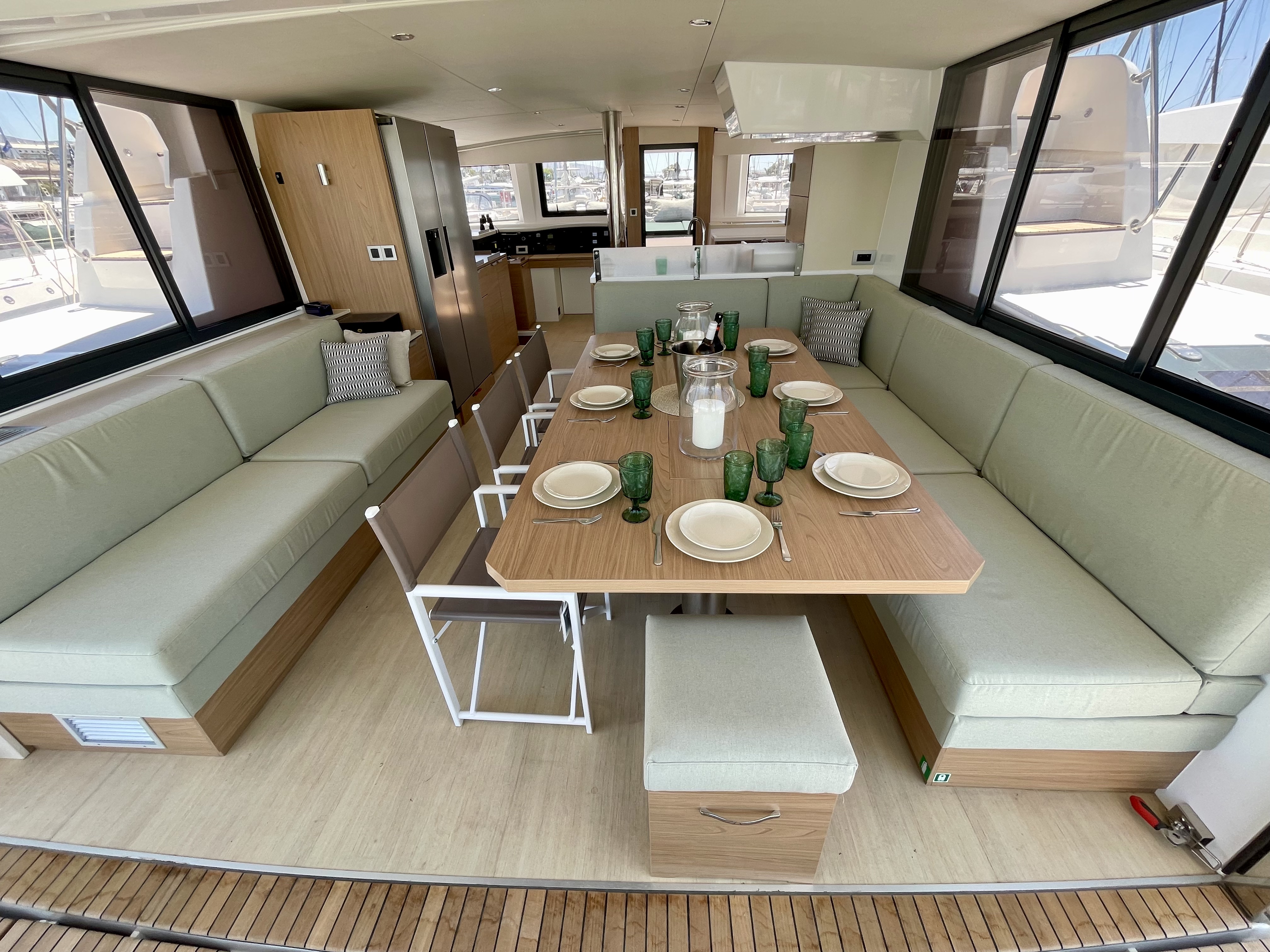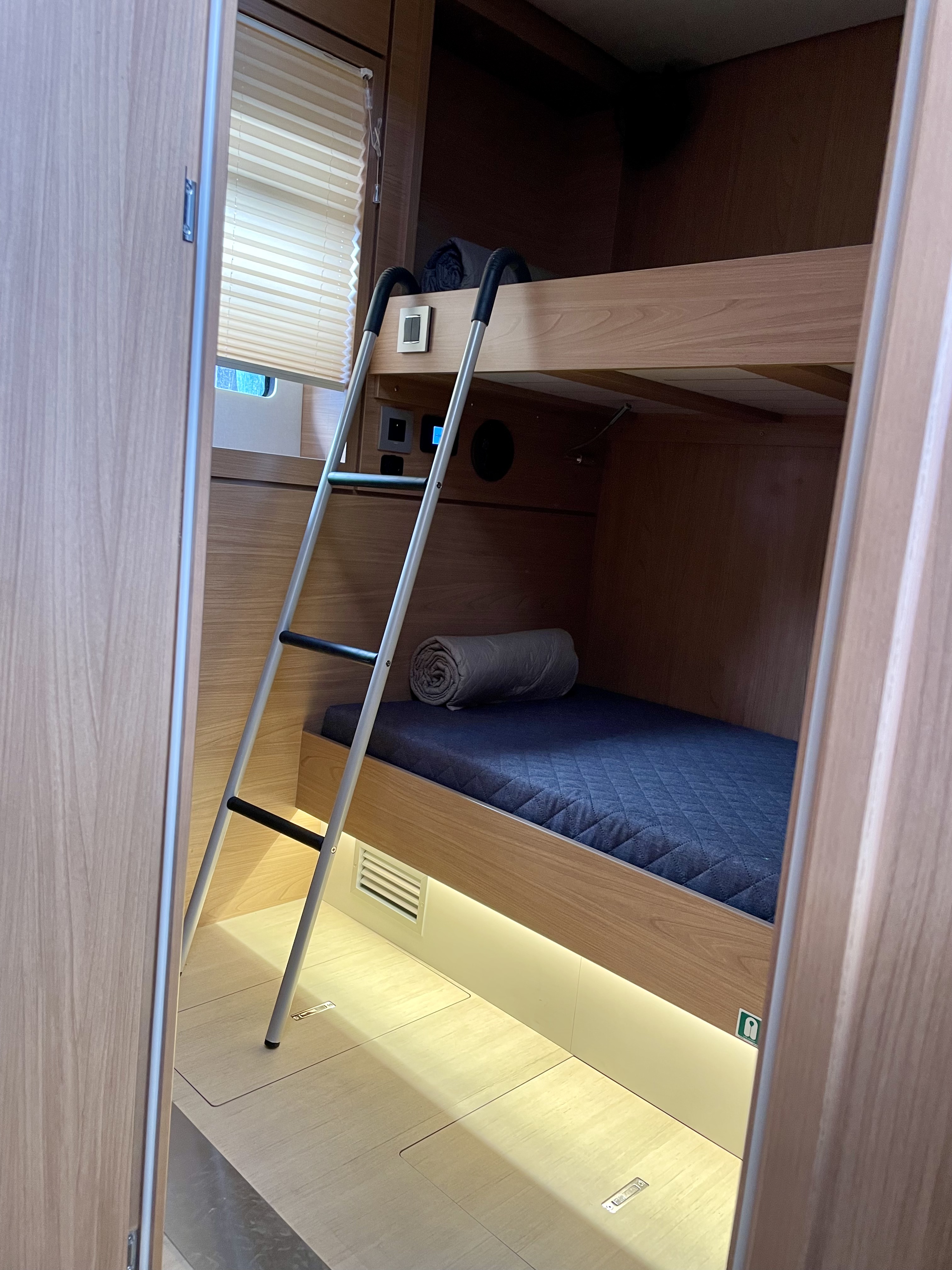 | Inside | Generator, Heizung, Inverter 12V/220V, Kaffeemaschine, Kühlschrank, Mikrowelle, Radio mit CD, Spülmaschine, Watermaker, WC (elektr.) |