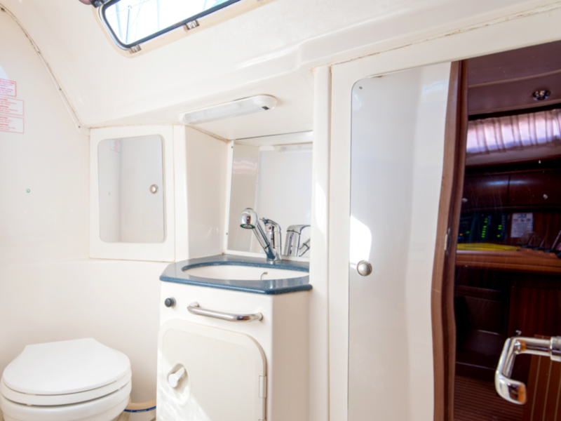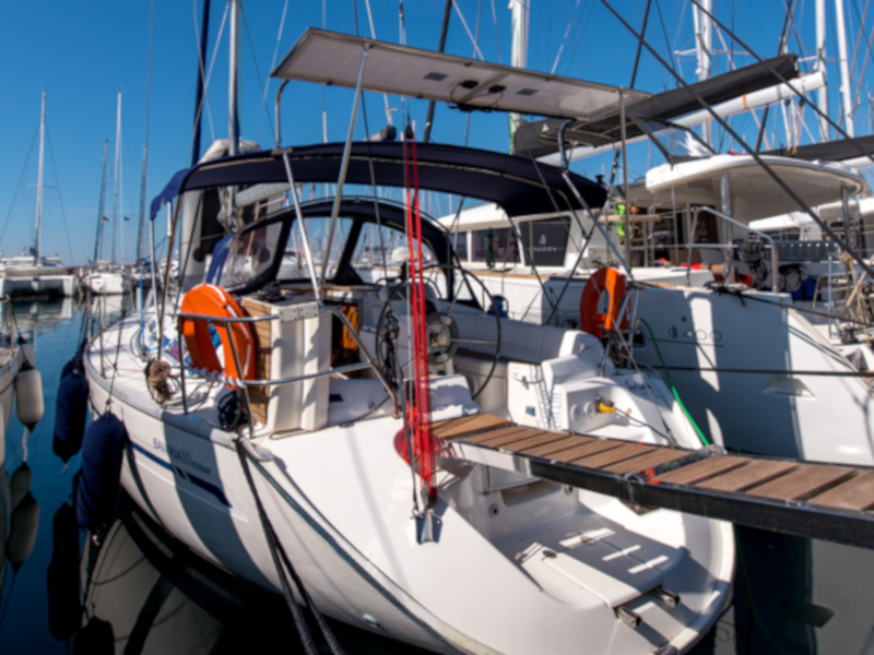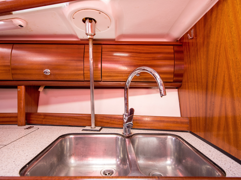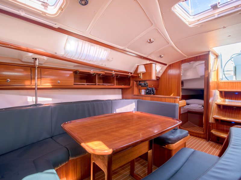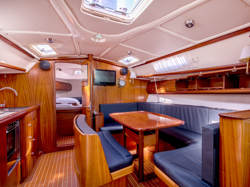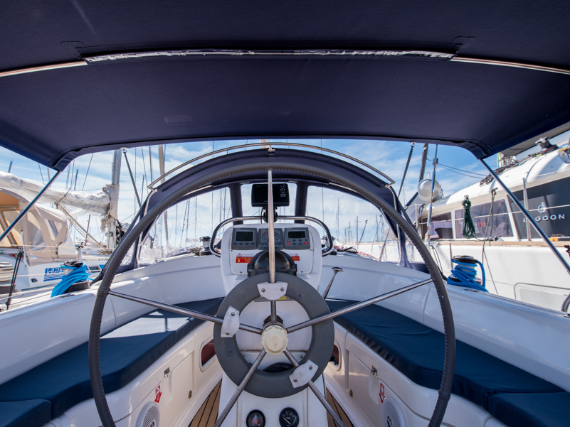 | Outside | Außendusche, Badeleiter, Biminitop, Cockpitlautsprecher, Cockpittisch, elektr. Ankerwinsch, Gangway, Sprayhood, Teak im Cockpit |