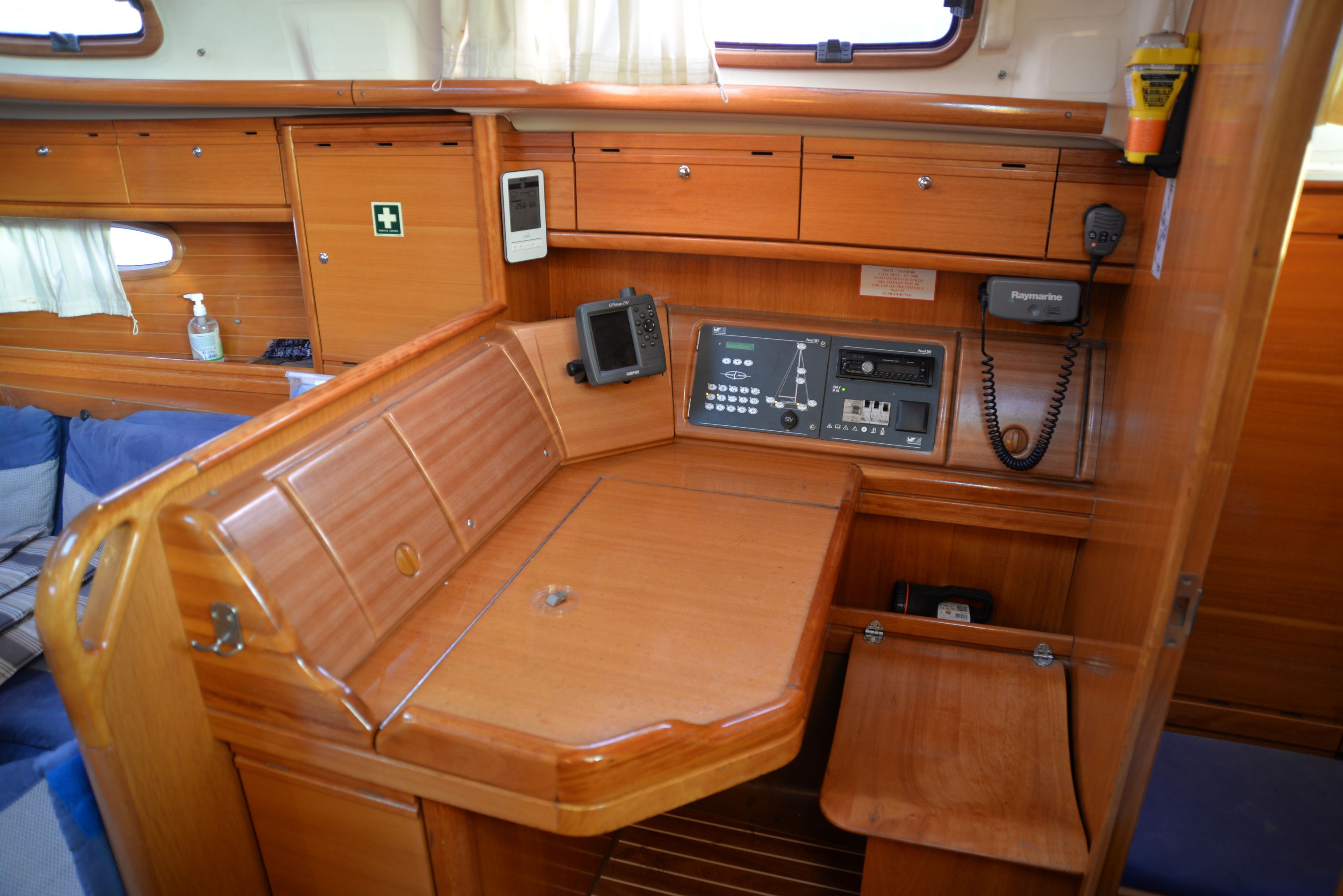 | Navigation | Barometer, Echolot, Fernglas, GPS mit Kartenplotter im Salon, Hafenhandbücher, Handpeilkompass, Kompass, Seekarten, Sumlog, Windmesser |