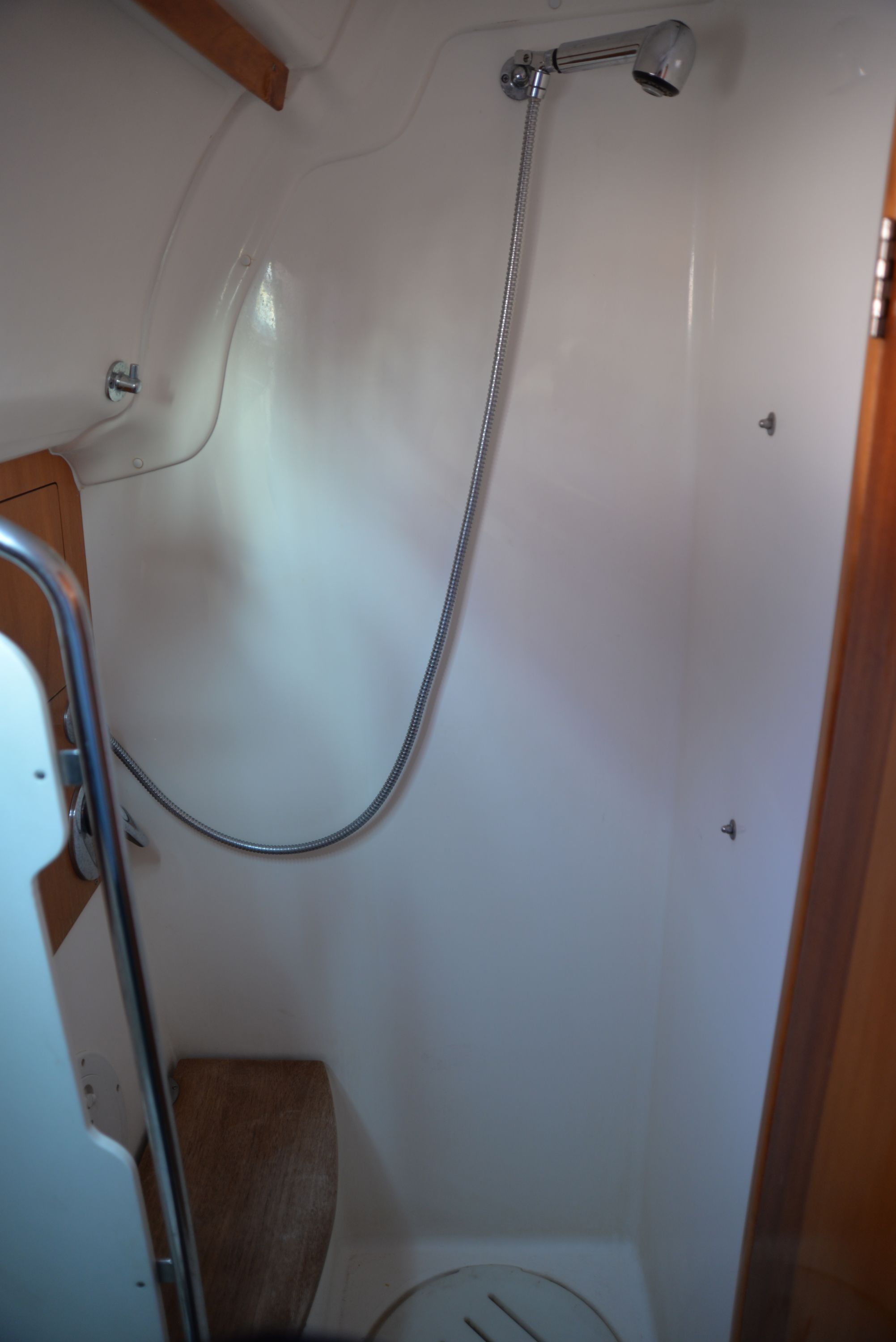| Outside | 12 V-Anschluss, 220 V-Landanschluss, Badeleiter, Biminitop, Cockpitdusche, Cockpitlautsprecher, Cockpitpolster, Cockpittisch, elektr. Ankerwinsch, Gangway, Schnorchelausrüstung, Sprayhood, Teak im Cockpit, Windex |