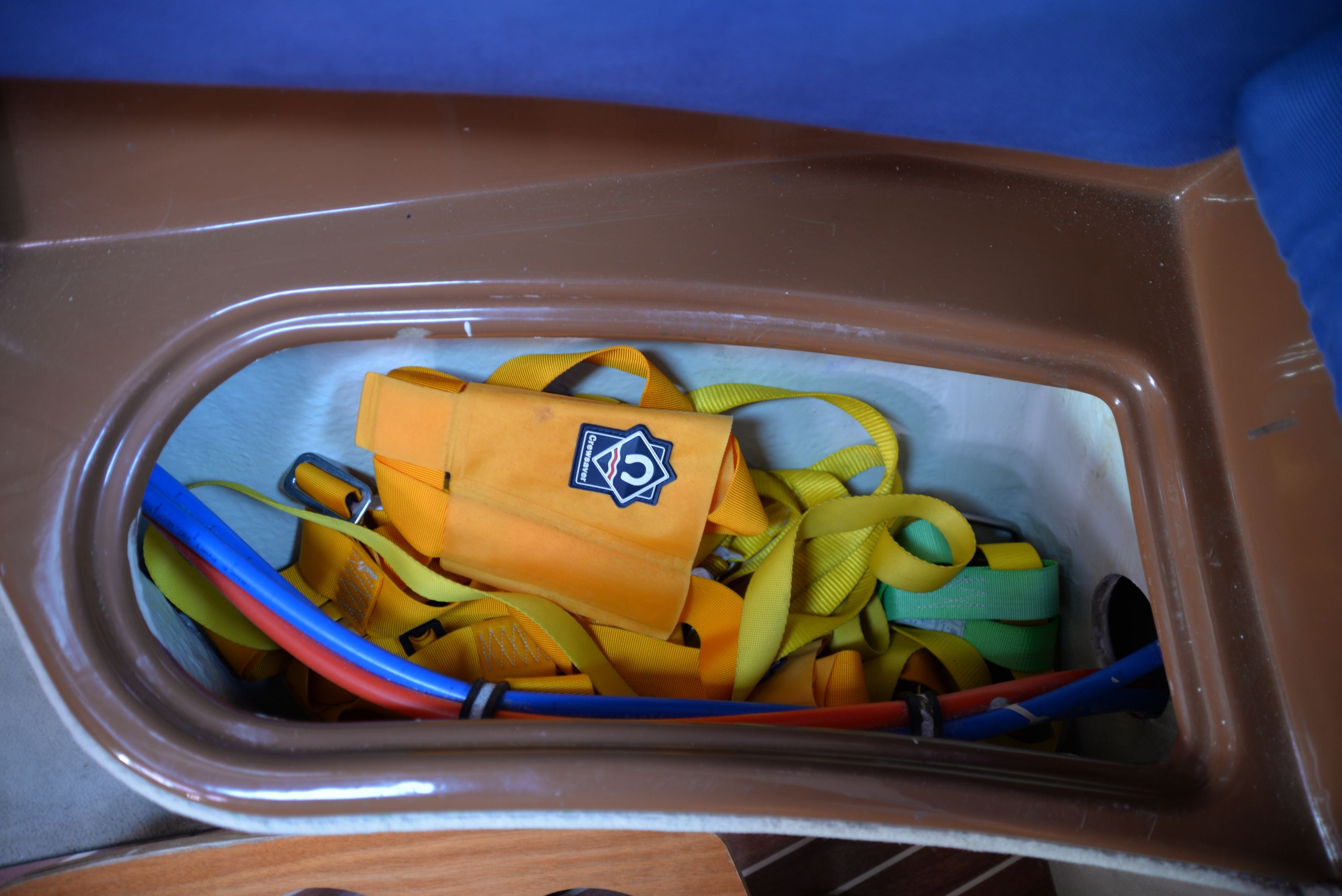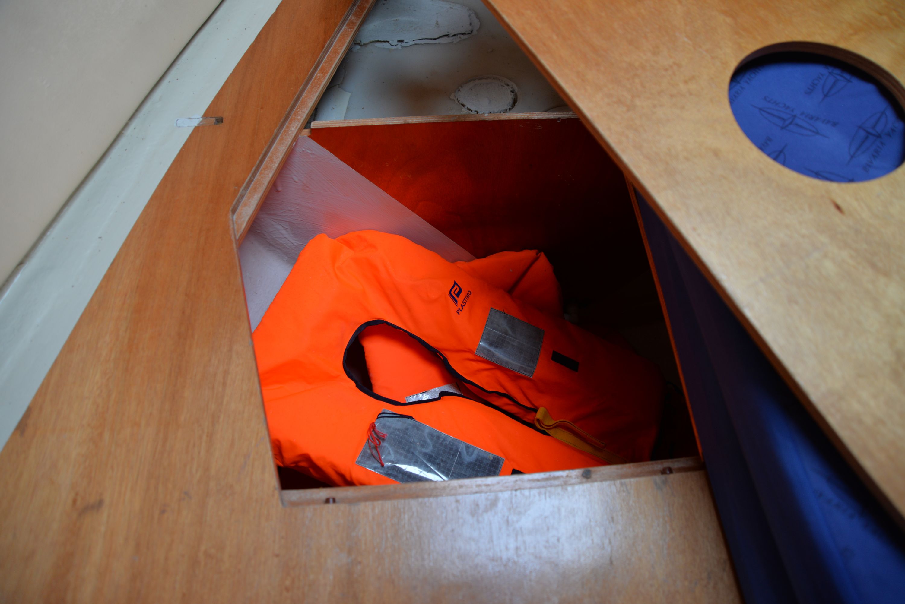 | Safety | Autopilot, Bootsmannstuhl, Bordapotheke, Bordwerkzeug, Epirb, Feststoffschwimmwesten, GMDSS, Leuchtboje, Lifebelts, Navigationslichter, Notpinne, Notsignale, Rettungsinsel, Rettungskragen, Taschenlampe, UKW-Funk |