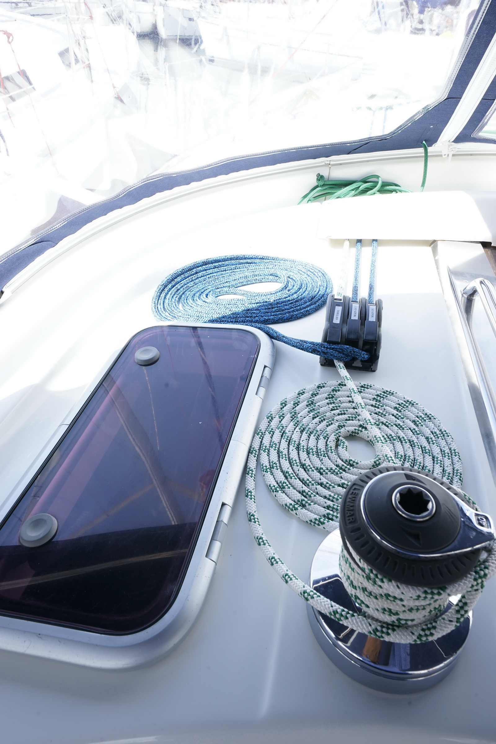 Refit 2019: Motor Außenborder, Bimini, Sprayhood, Nasszellen, Wasserhähne, Seile, Räder, Plotter, Holz im Unterdeck, Küchenutensilien, Gasofen, Beiboot, neues Navigationssystem