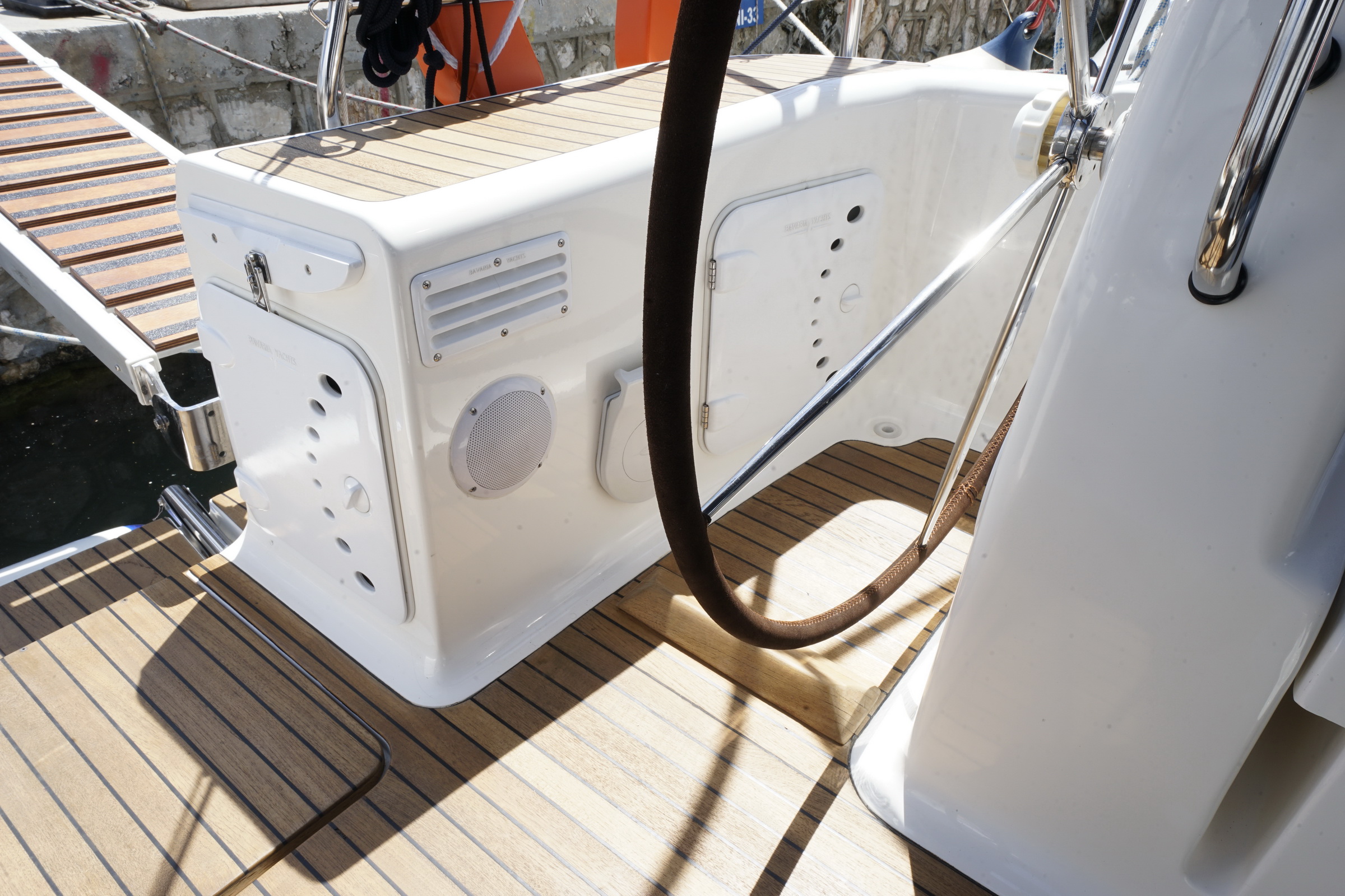 | Outside | Biminitop, Cockpitlautsprecher, Cockpitpolster, Cockpittisch, Solaranlage, Sprayhood |