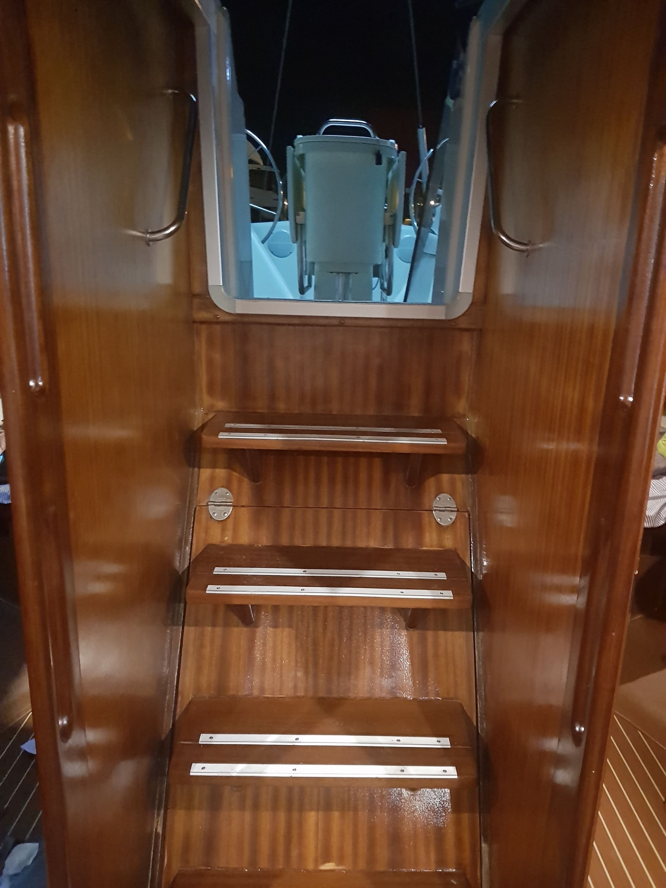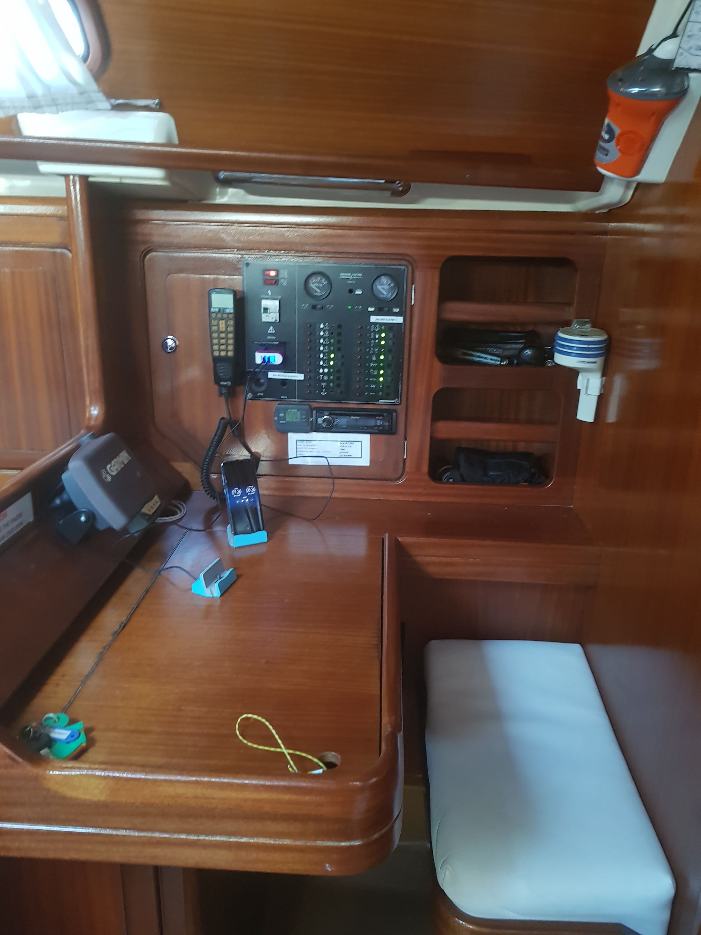| Navigation | Echolot, GPS mit Kartenplotter im Cockpit, Kompass, Sumlog, Windmesser |