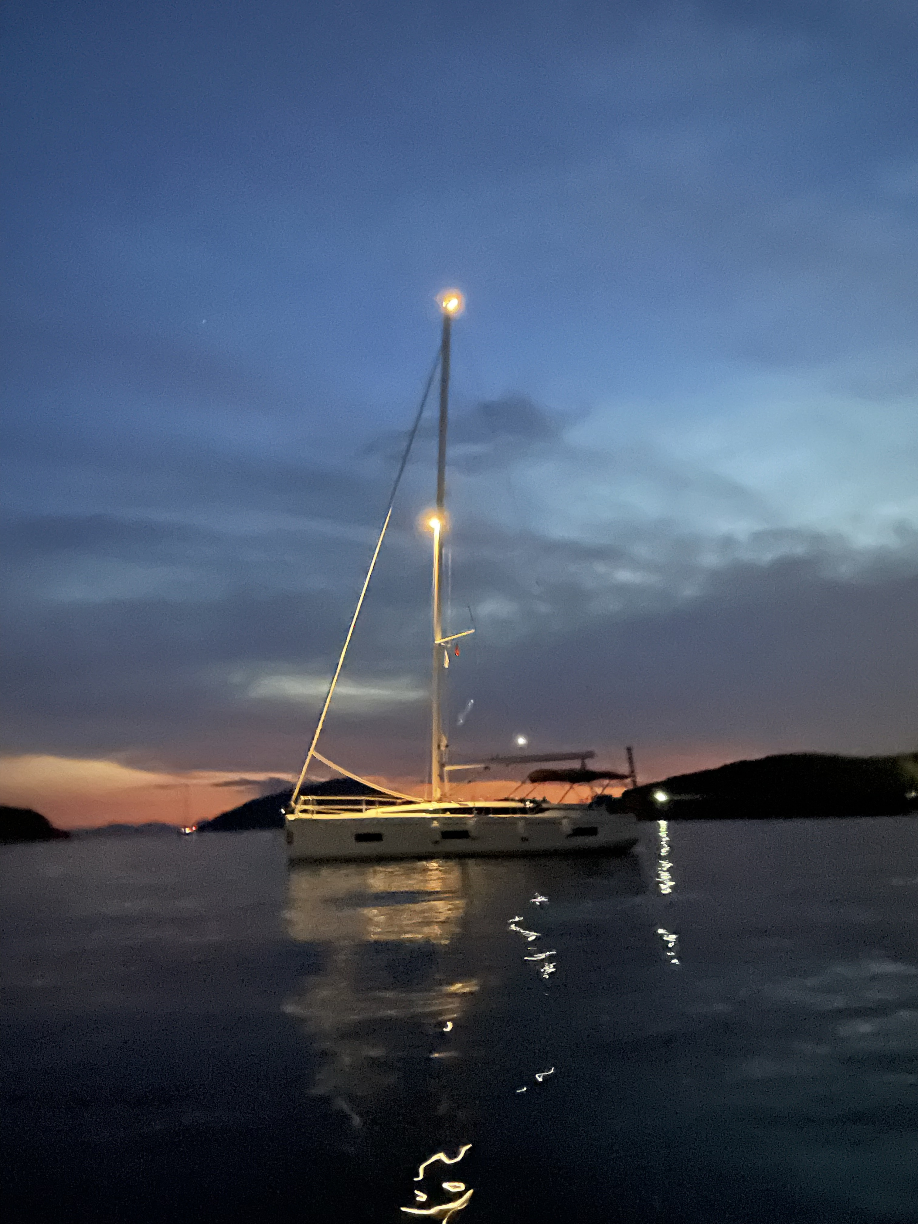 Das Boot hatte einige kleinere technische Mängel, welche ich alle kommuniziert habe. Der Vercharterer hat alles aufgeschrieben und war auch während unseres Törns sehr bemüht die Mängel zu beheben. So wurde z.B. die Verbraucherbatterie ersetzt, weil wir während dem Segeln Stromausfall hatte. Das Problem liegt allerdings an der Bordelektronik und muss meiner Meinung nach von der Werft überprüft werden (Voll geladene Batterie zeigte nur 12.7 V an). Die Unterwanten waren sehr lose, was beim hohen Wellengang zu starken Schlägen am Rigg bzw. den Verankerungen der Wanten geführt hatte. Das kann dann irgendwann auch mal gefährlich werden. Dieses Problem wurde erkannt und sollte in den nächsten Tagen behoben werden. Es gab auch einige andere kleine technische Mängel, welche aber nicht so dramatisch sind (lottern der Türen usw,....)