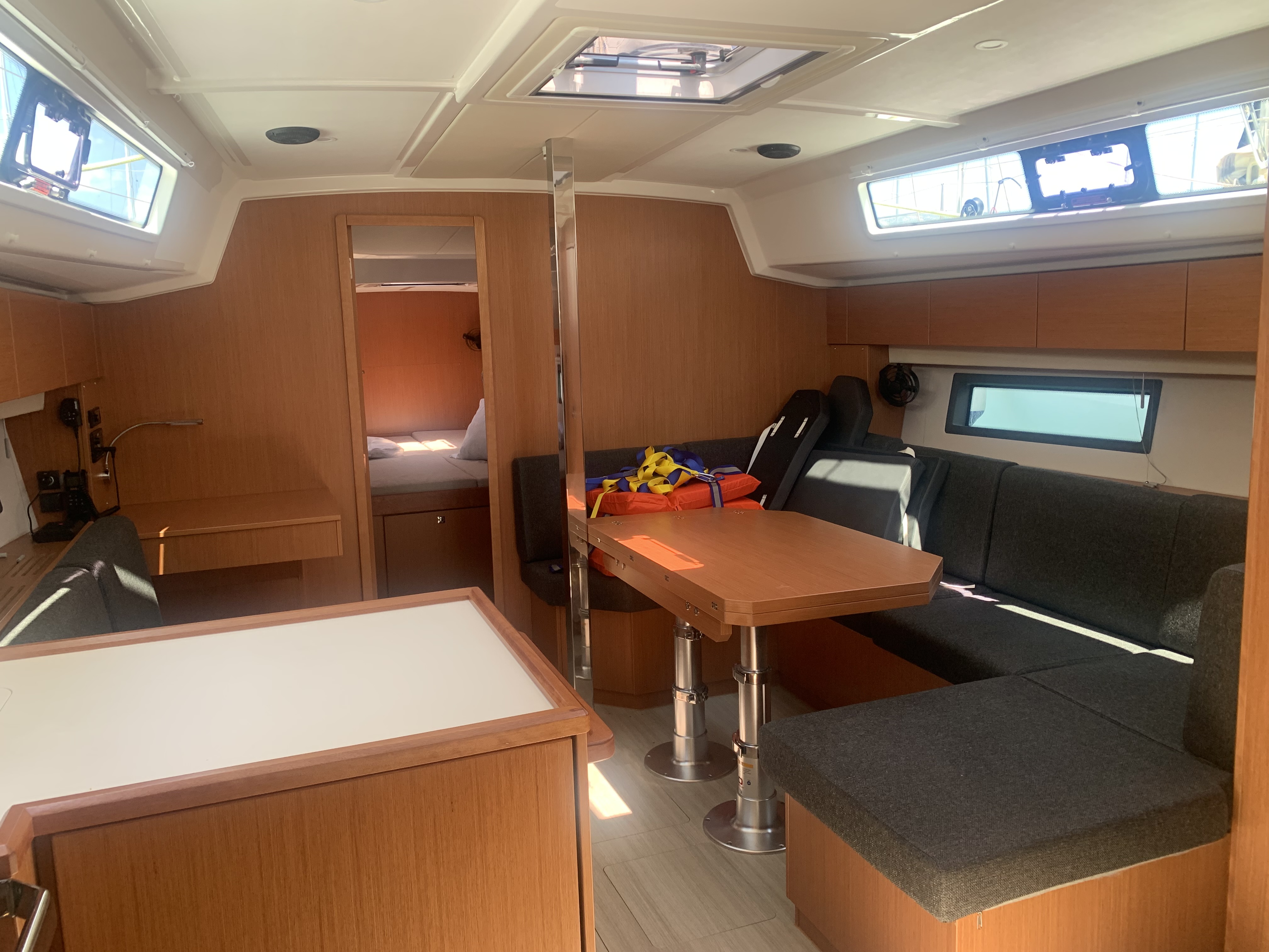 | Inside | Klimaanlage (Landstrom), Landstromkabel, Pantryausstattung, Radio mit CD und USB, Salontisch absenkbar, Ventilatoren in Kabinen |