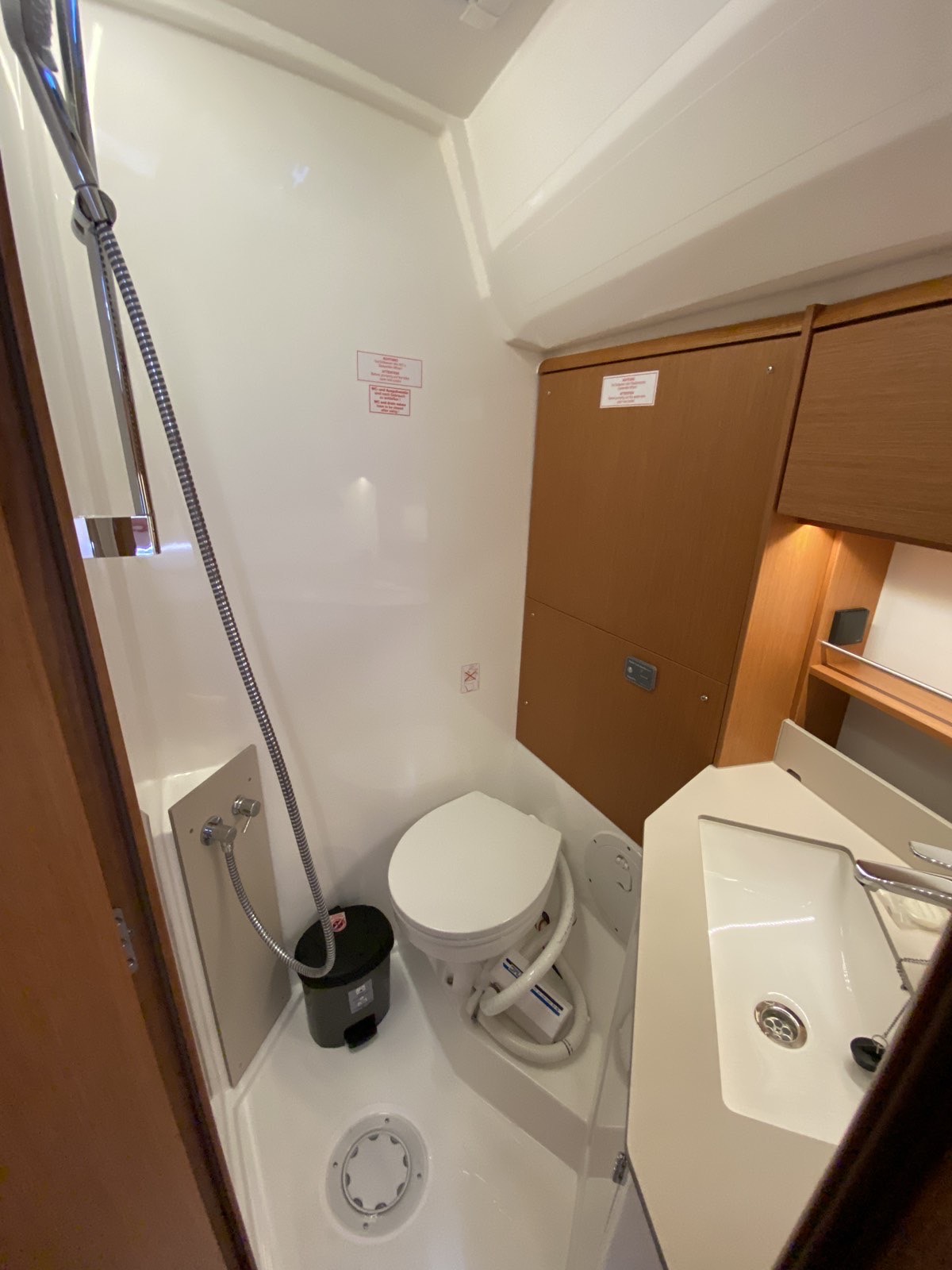| Outside | 220 V-Landanschluss, Badeleiter, Badeplattform, Biminitop, Cockpitdusche, Cockpitlautsprecher, Cockpitpolster, Cockpittisch, Cockpittisch mit Eisbox, elektr. Ankerwinsch, Gangway, Selbstholende Winschen, Solaranlage, Sprayhood, Windex |