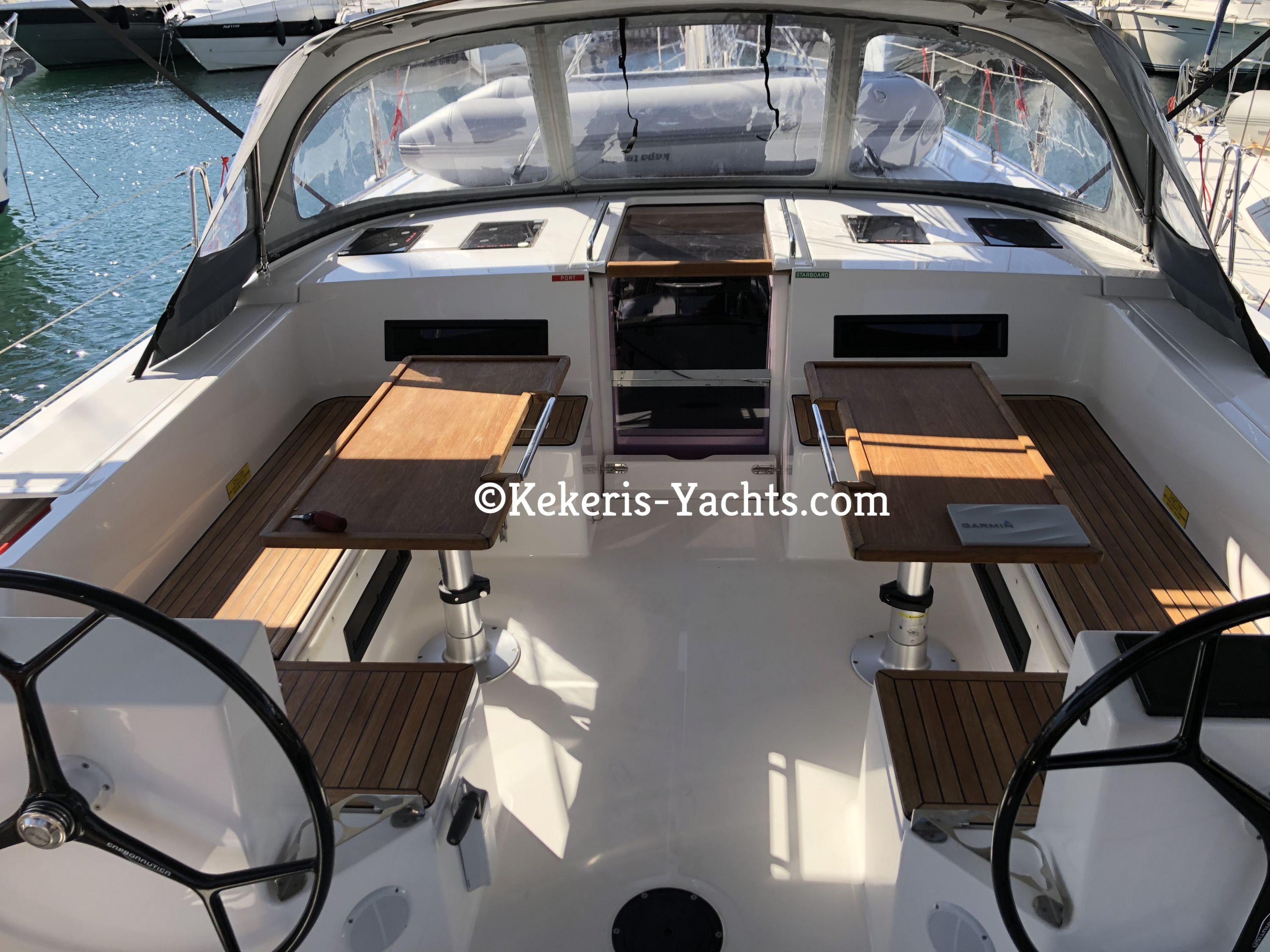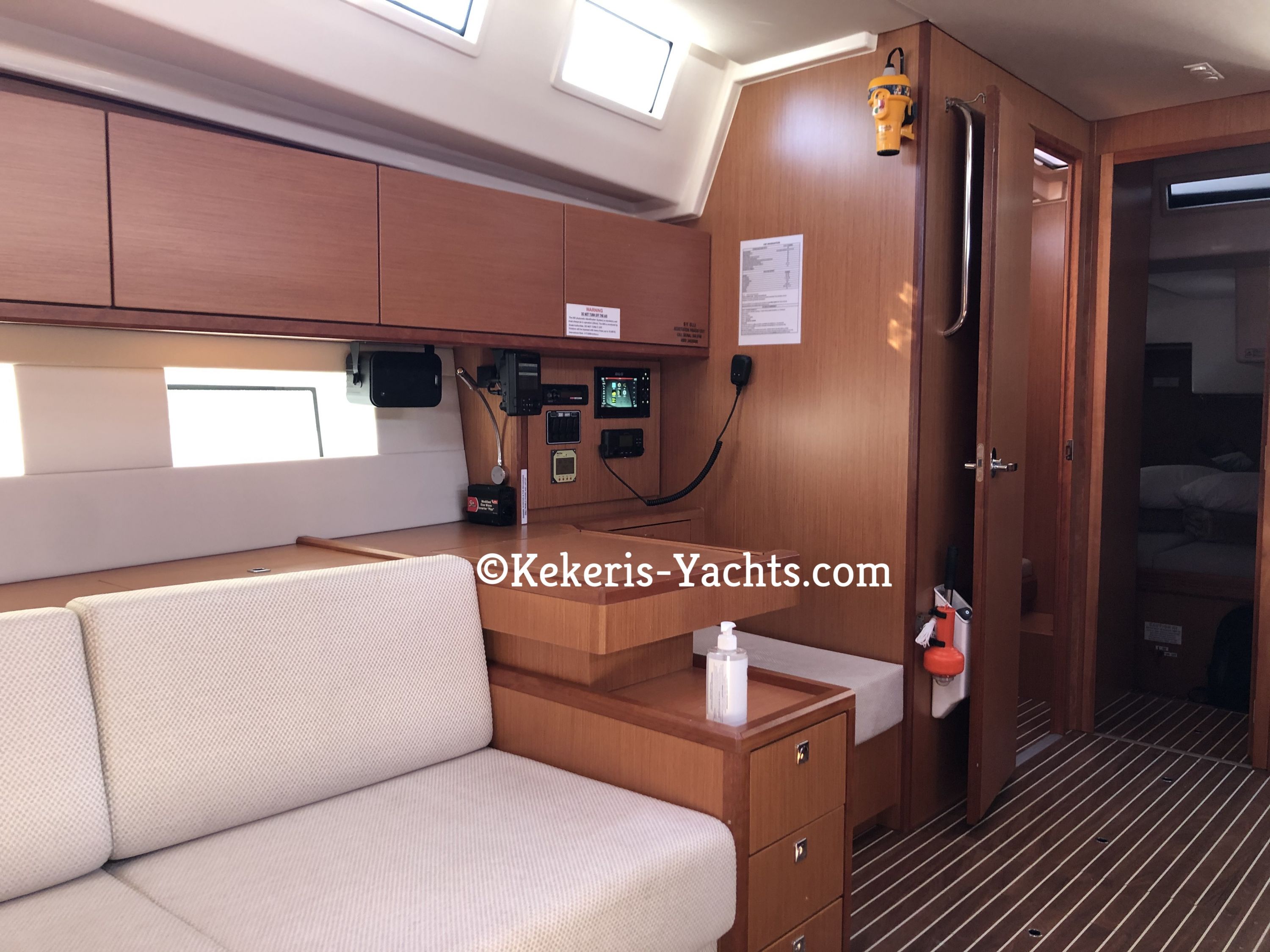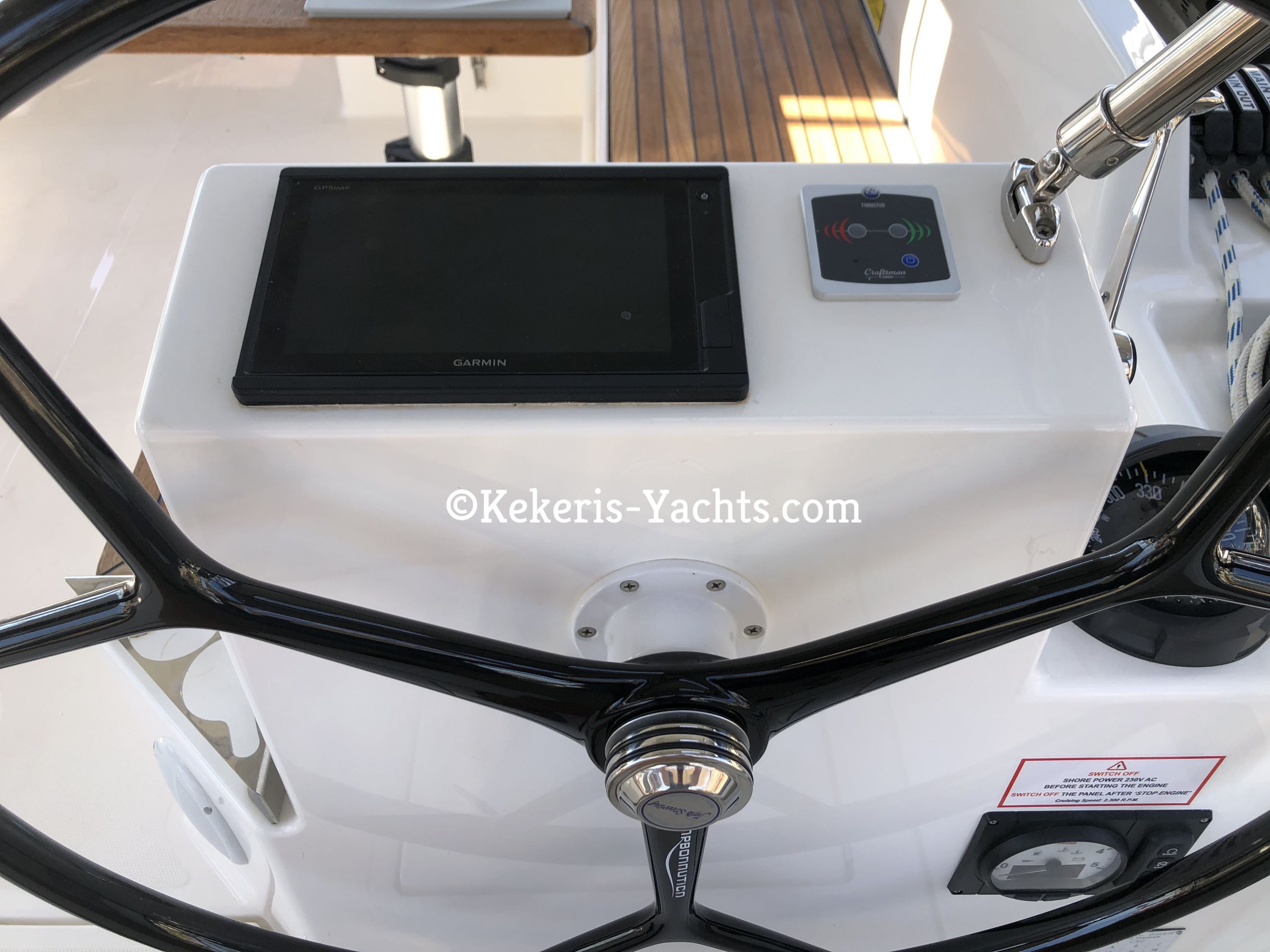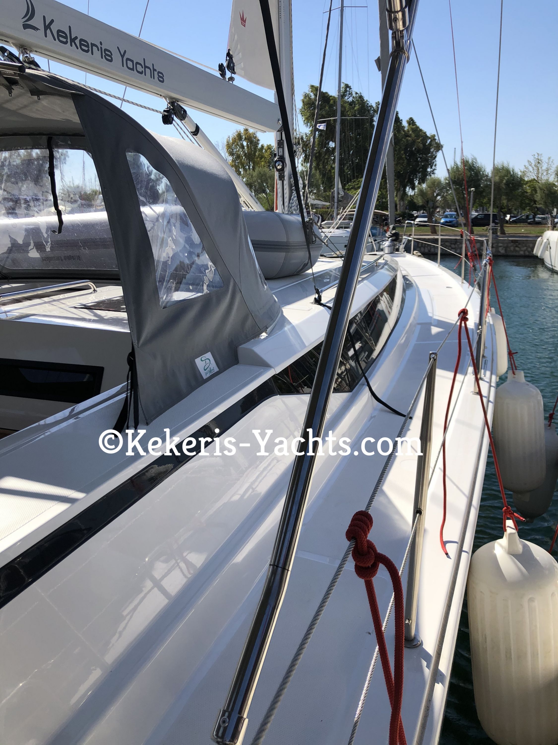 | Outside | Anker mit Kette, Badeplattform, Biminitop, Bootshaken, Cockpitdusche, Cockpitlautsprecher, Cockpitpolster, elektr. Ankerwinsch, Festmacherleinen, Solaranlage, Sprayhood, Wantenschneider |