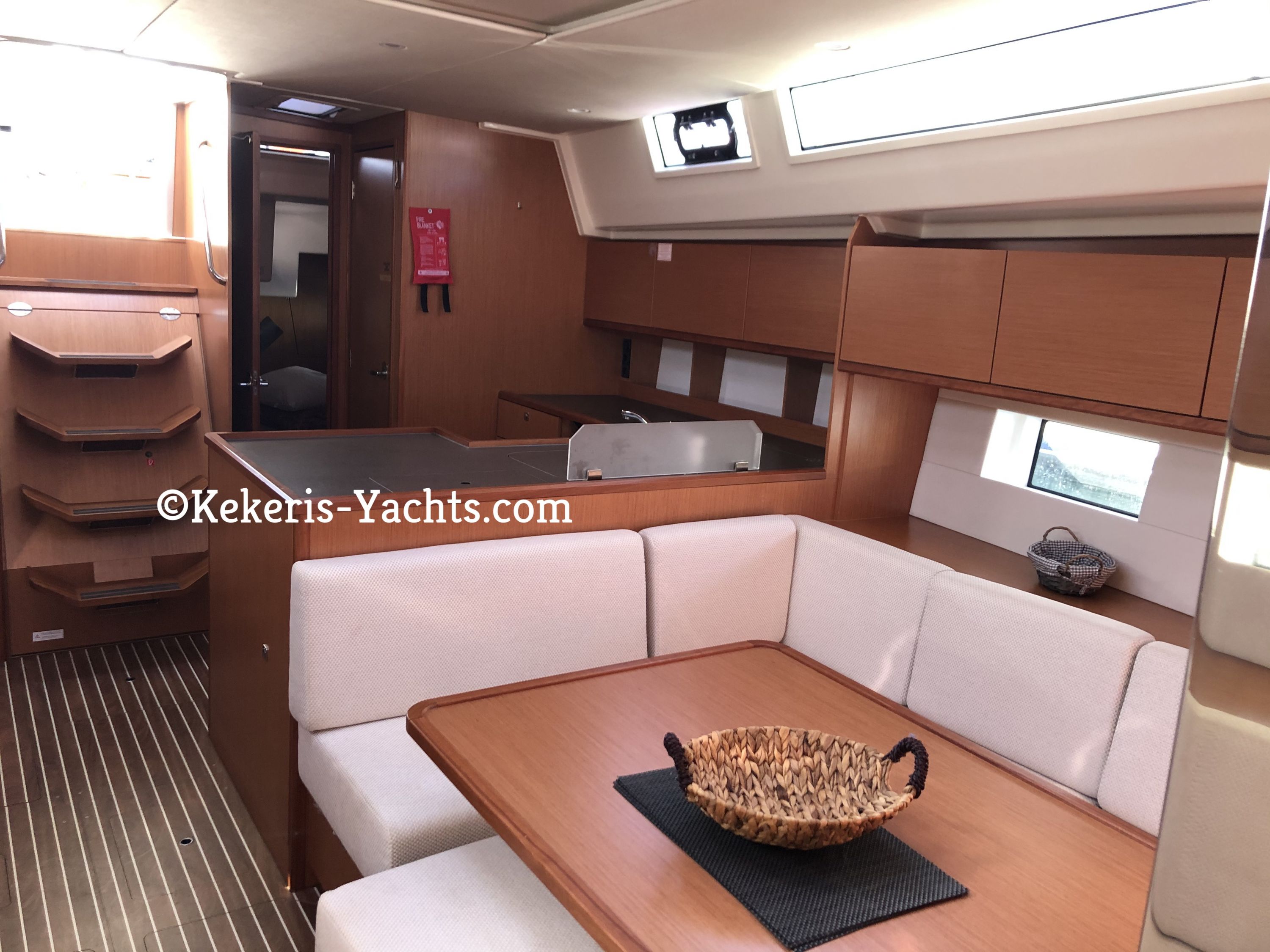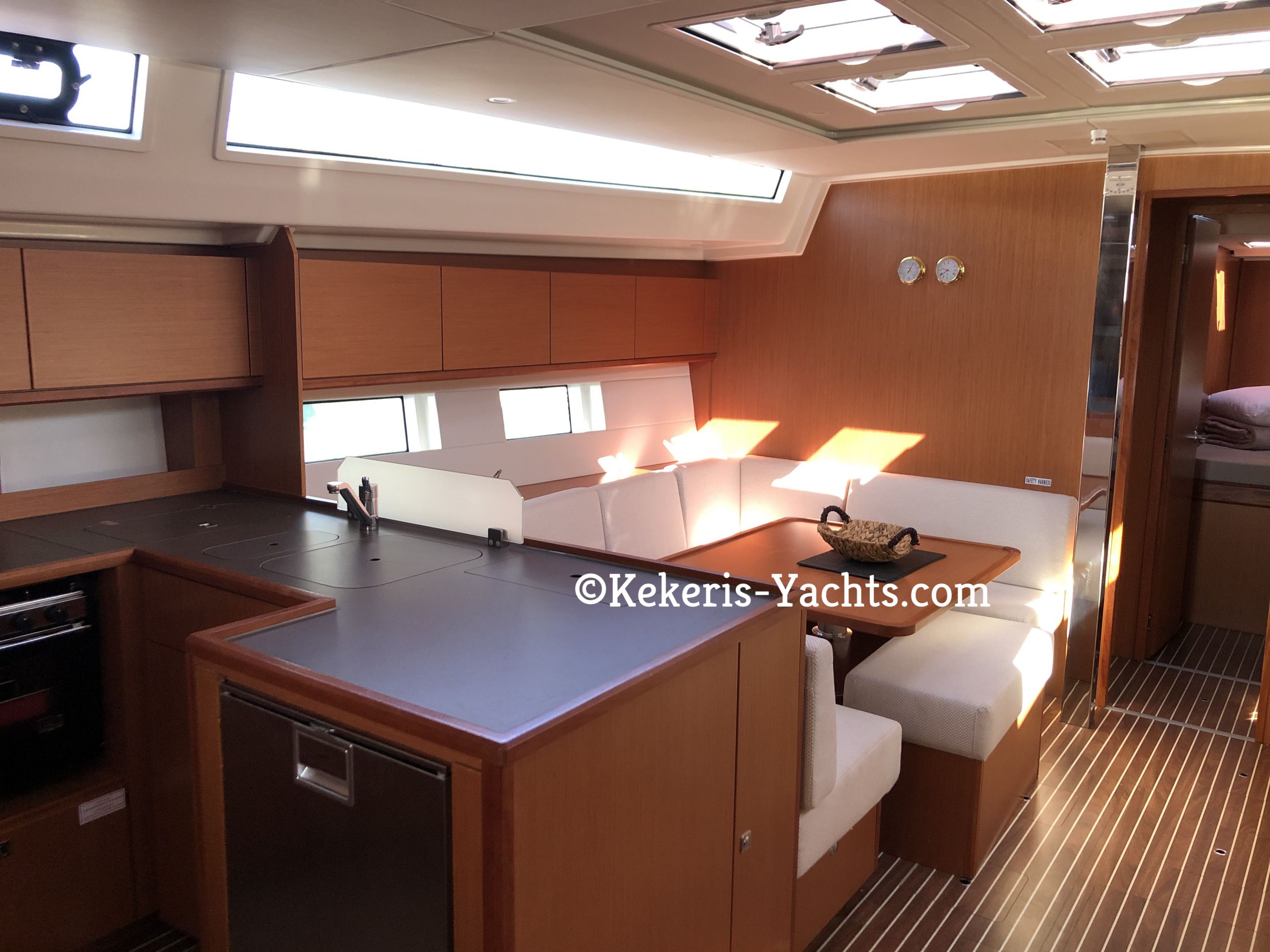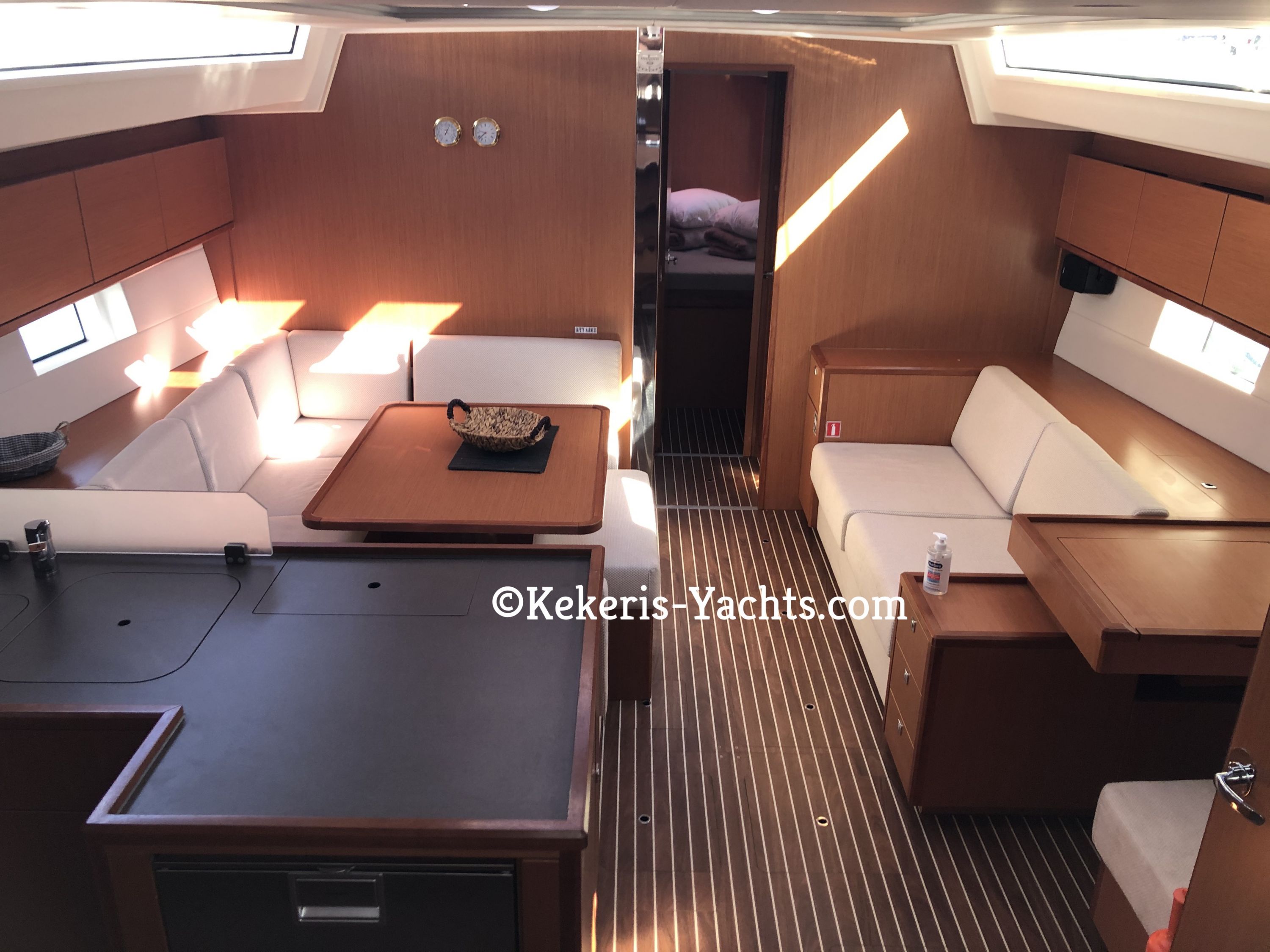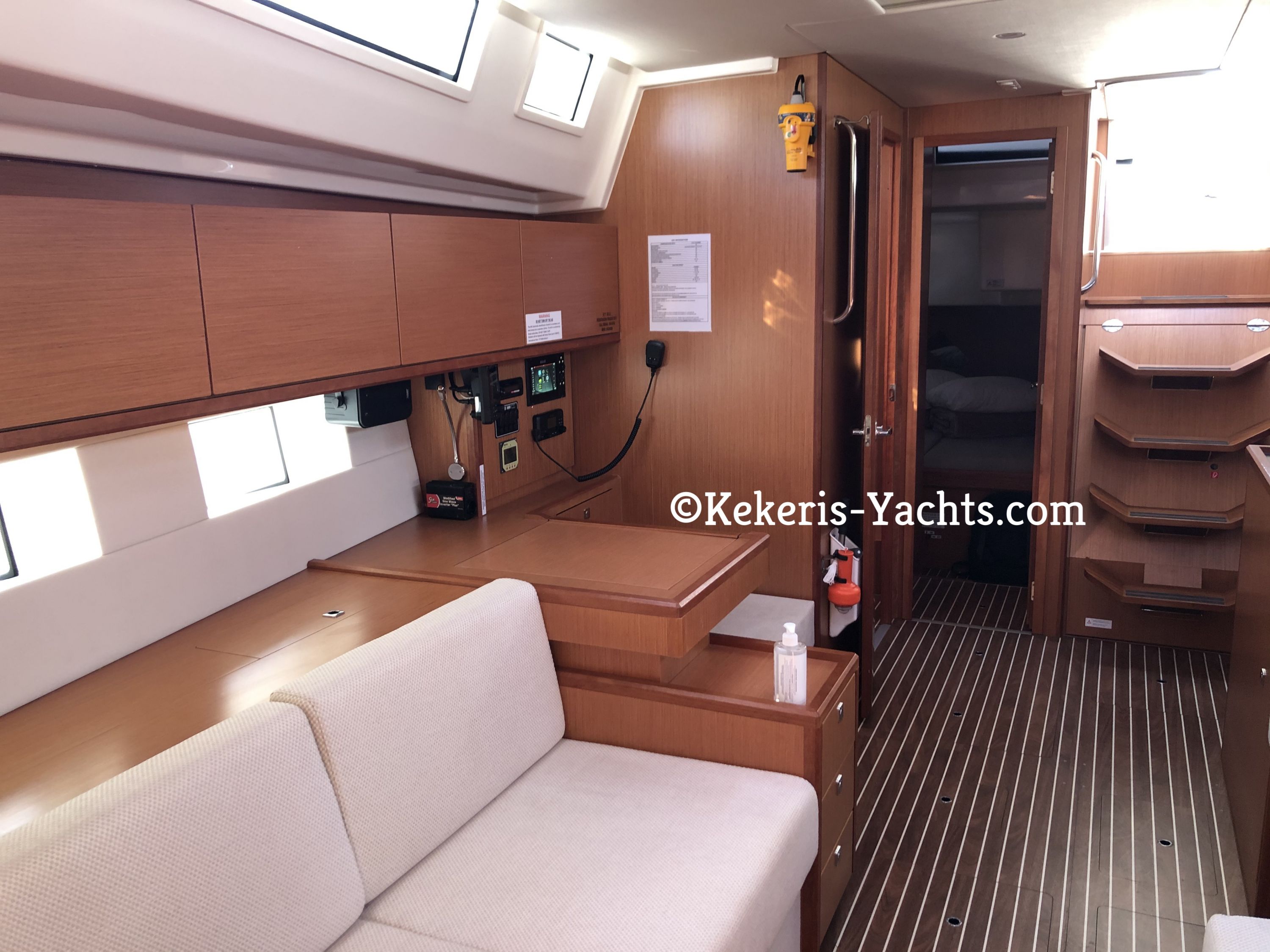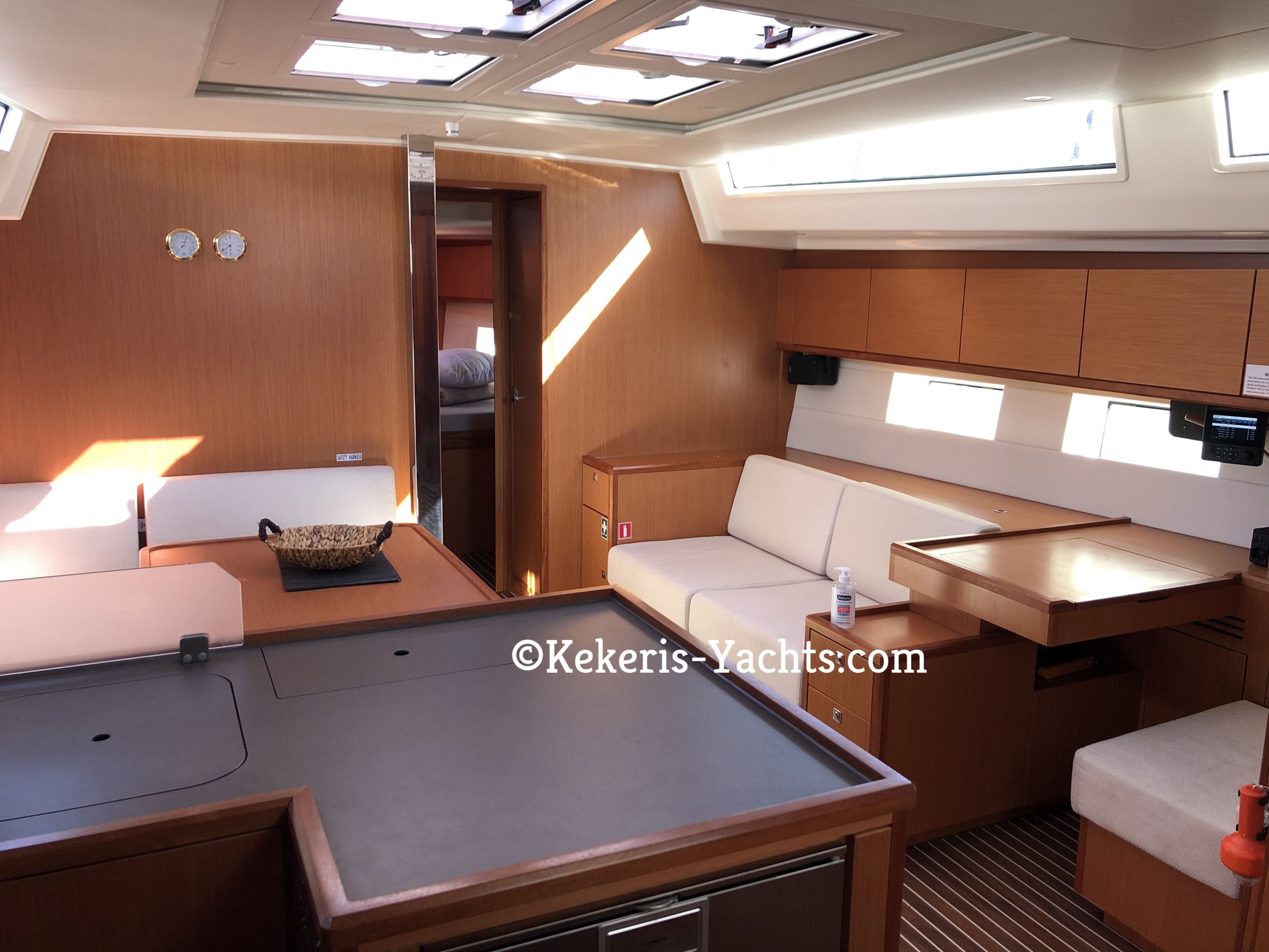 | Outside | Anker mit Kette, Badeplattform, Biminitop, Bootshaken, Cockpitdusche, Cockpitlautsprecher, Cockpitpolster, elektr. Ankerwinsch, Festmacherleinen, Solaranlage, Sprayhood, Wantenschneider |