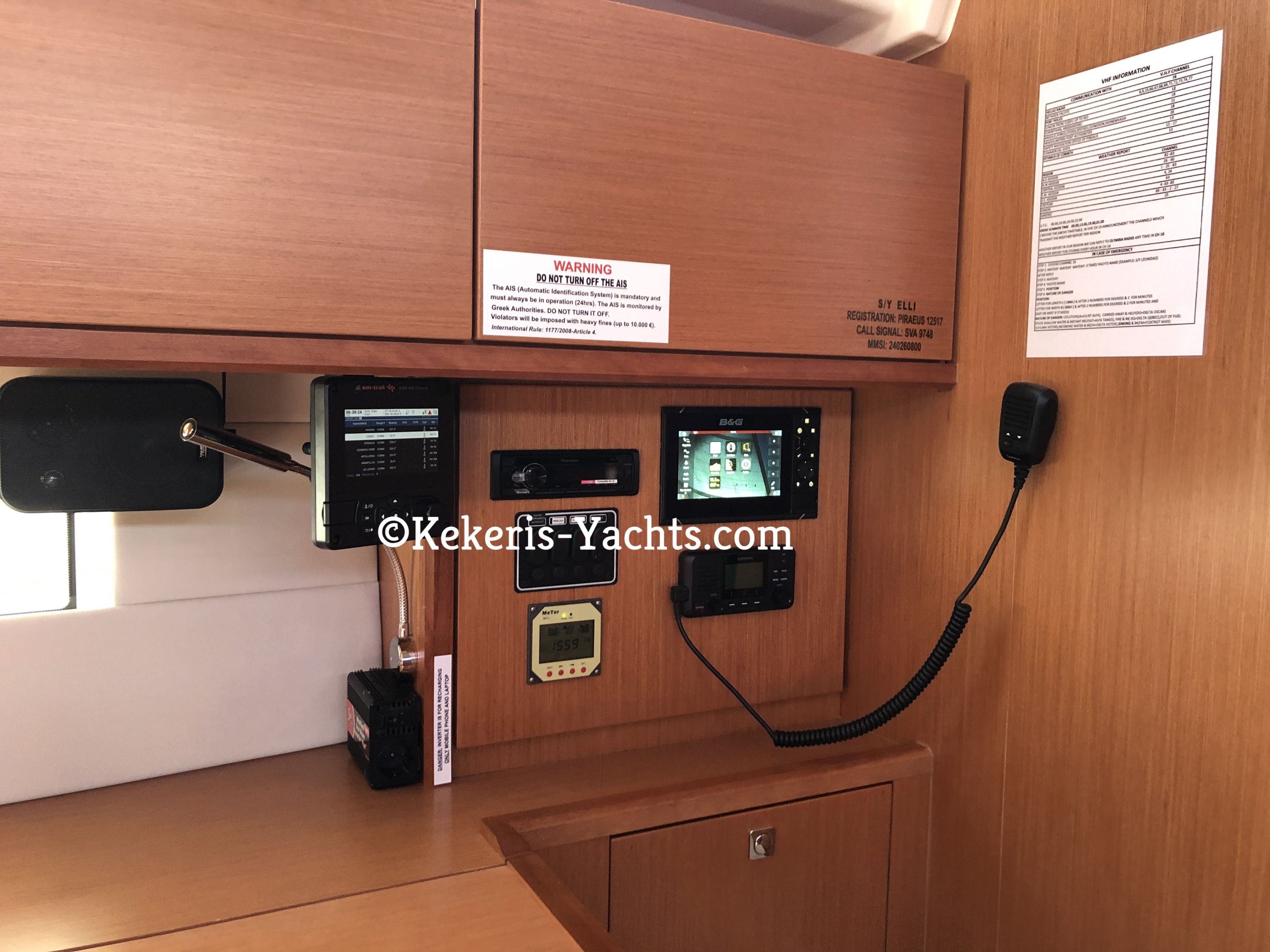 | Safety | Autopilot, Bootsmannstuhl, Bordapotheke, Bordwerkzeug, Bugstrahlruder, elektr. Bilgepumpe, Feststoffschwimmwesten, Feuerlöscher, Lifebelts, Nebelhorn, Notsignale, Reparaturset für Beiboot, Rettungsinsel, Rettungskragen, Taschenlampe, UKW-Funk |