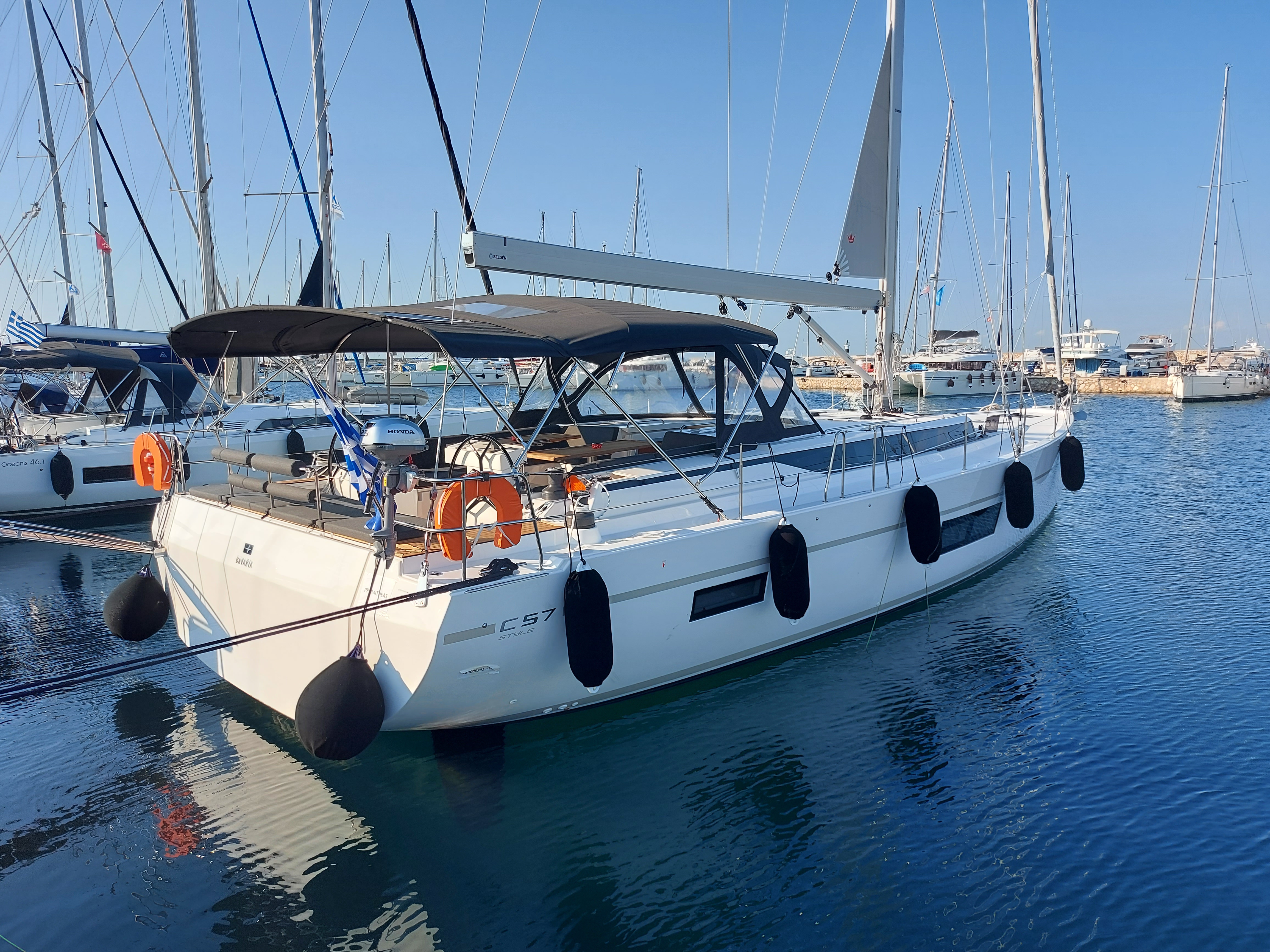 | Outside | 12 V-Anschluss, 220 V Landstromkabel mit Ladegerät, Badeleiter, Biminitop, Bootshaken, Cockpitdusche, Cockpitlautsprecher, Cockpitpolster, elektr. Ankerwinsch, Fender, Gangway, Grill, Solaranlage, Sprayhood, Wasserschlauch |