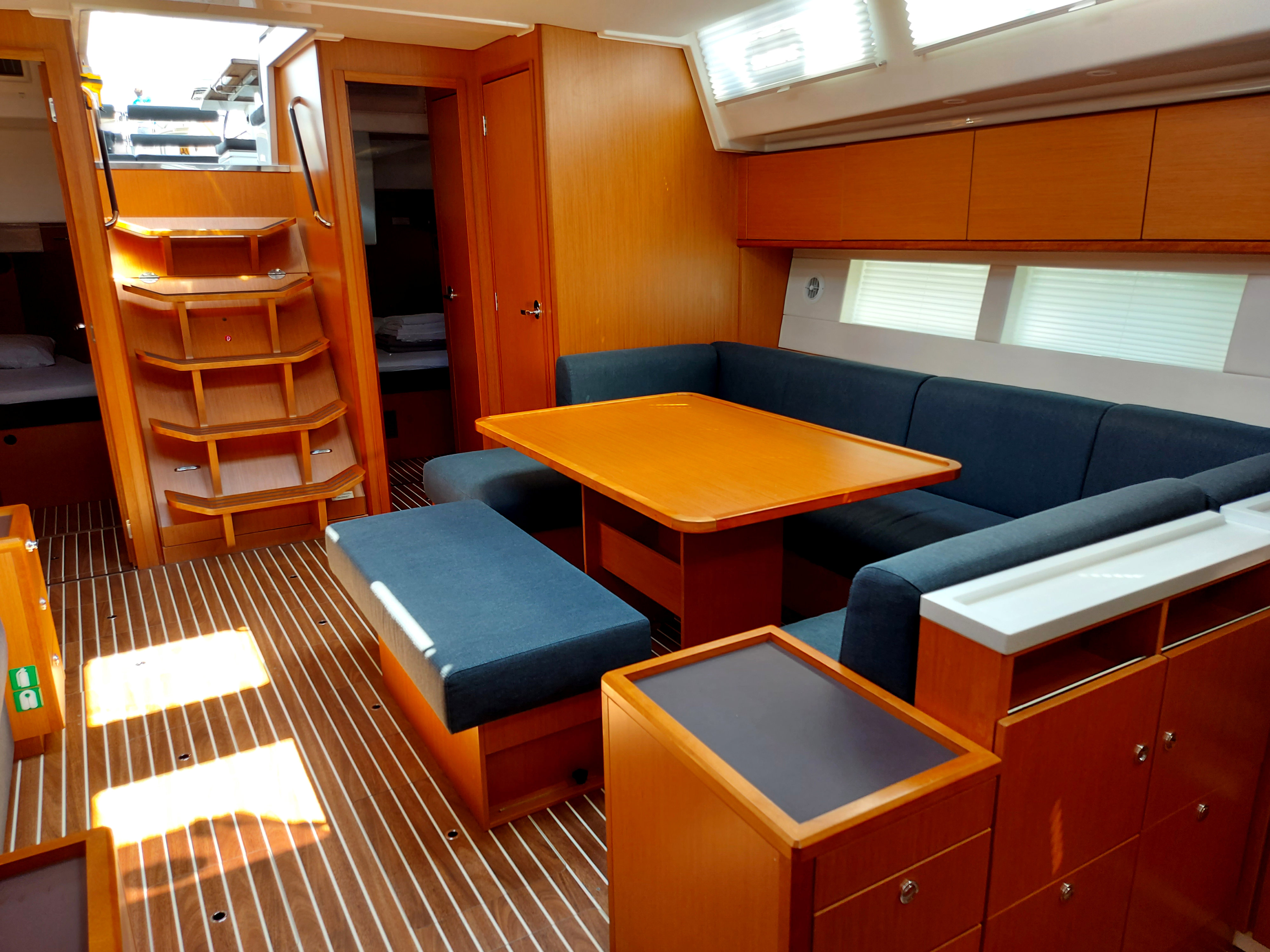 | Navigation | Echolot, GPS mit Kartenplotter im Cockpit, Kartenplotter im Salon, Navigationsbesteck, Seekarten, Sumlog, Windmesser |