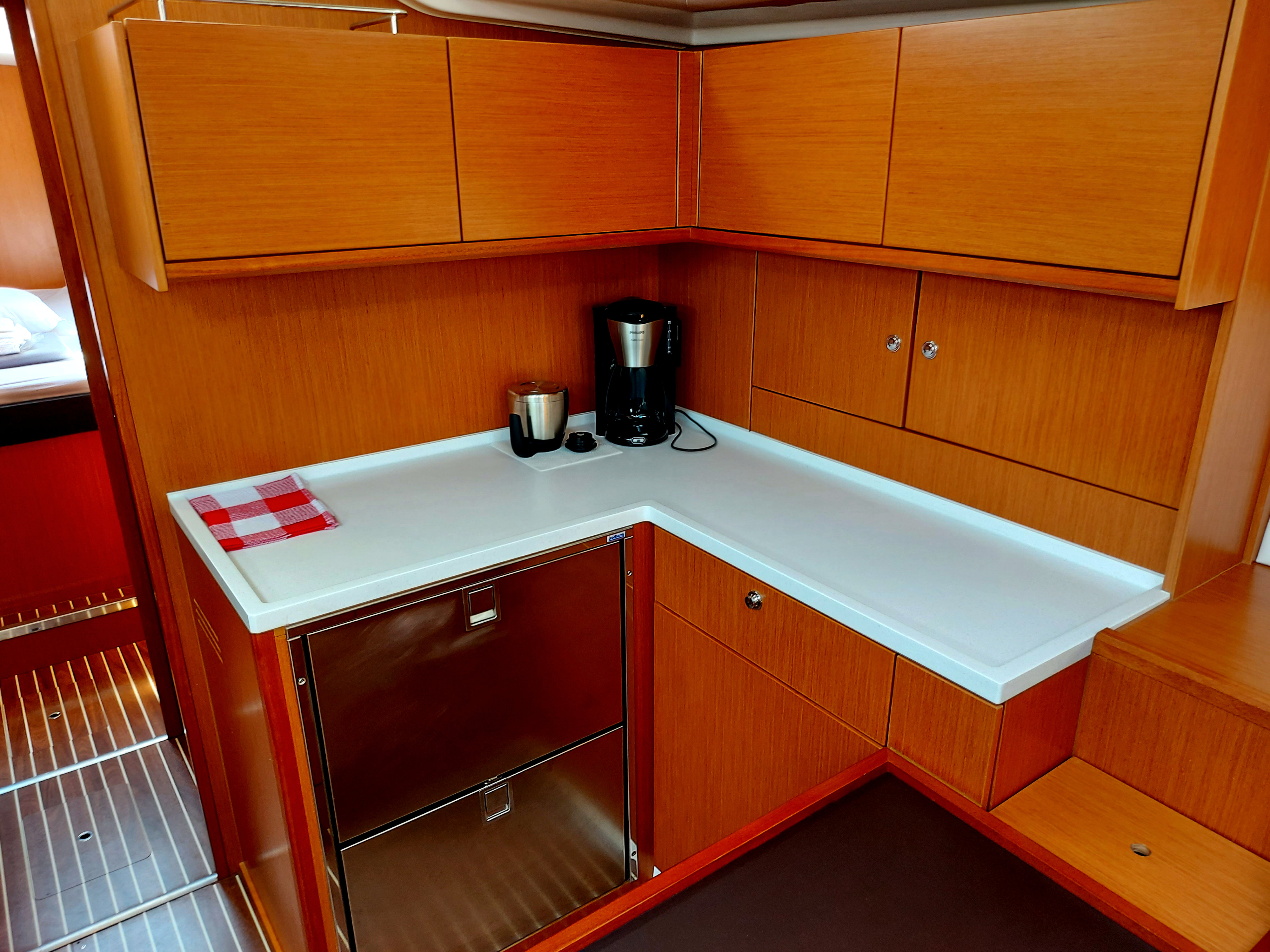 | Inside | Generator, Klimaanlage (ohne Landstrombedarf), Kühlschrank, Radio mit USB und Bluetooth, USB Steckdosen in den Kabinen, Ventilator, Watermaker, WC (elektr.) |