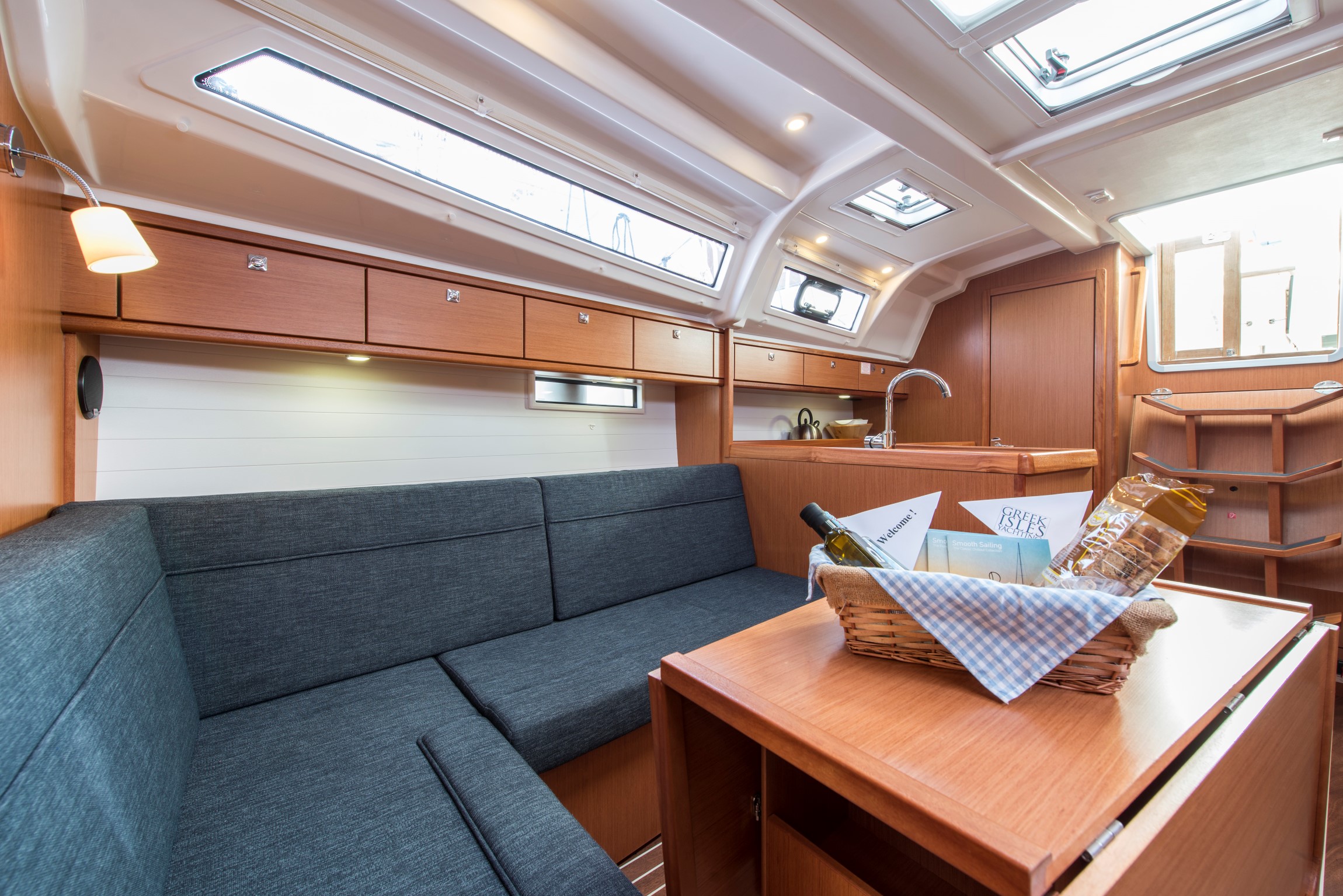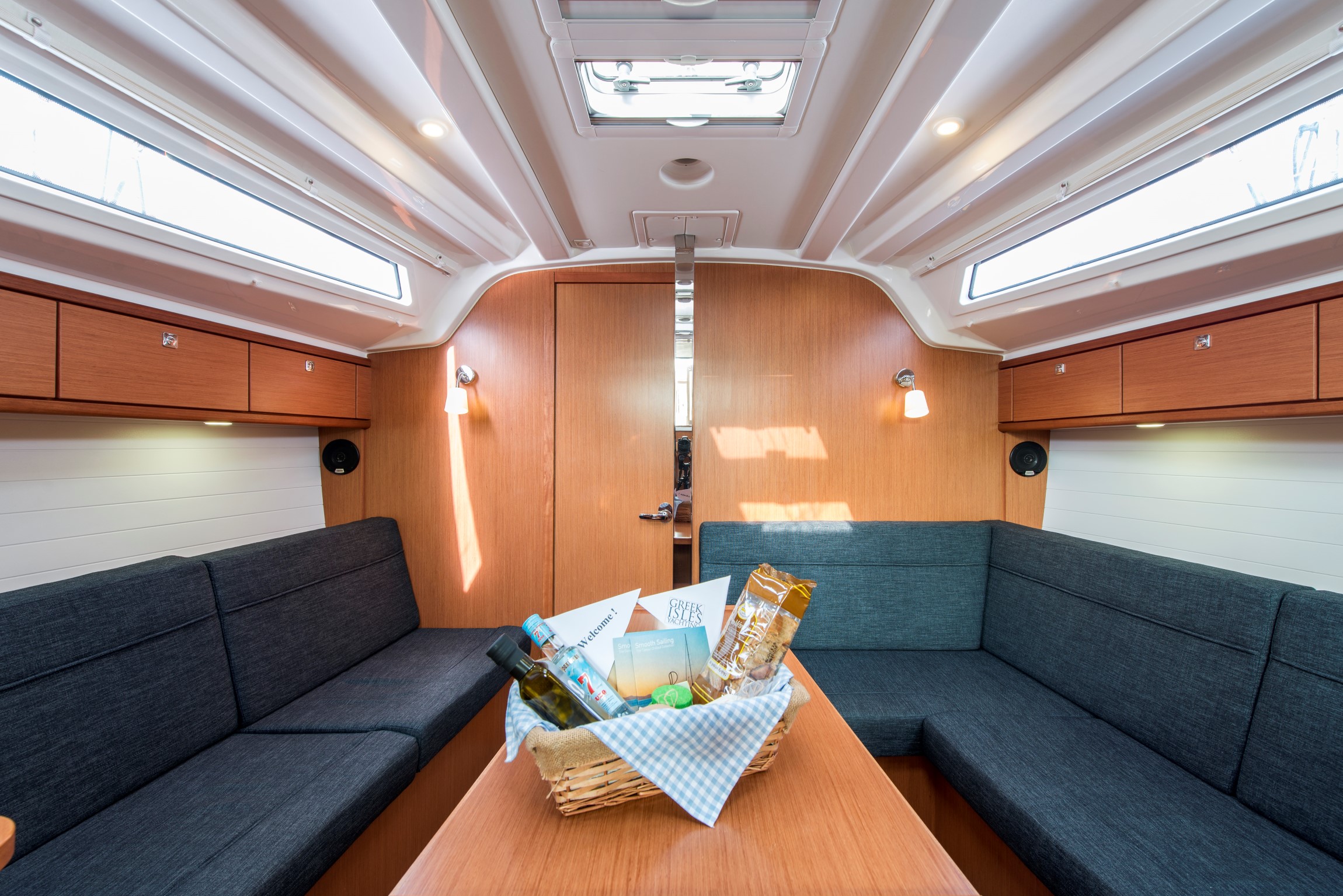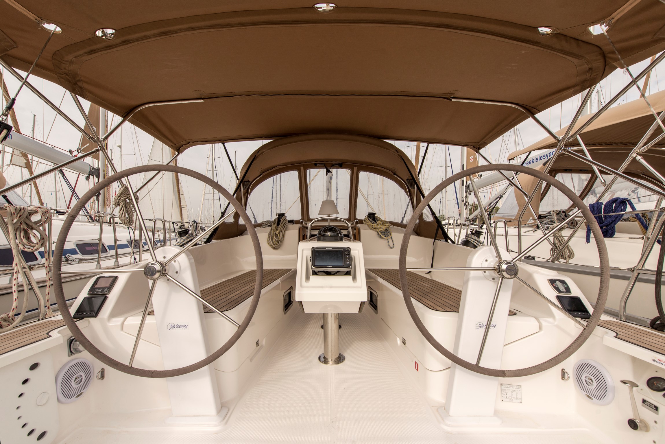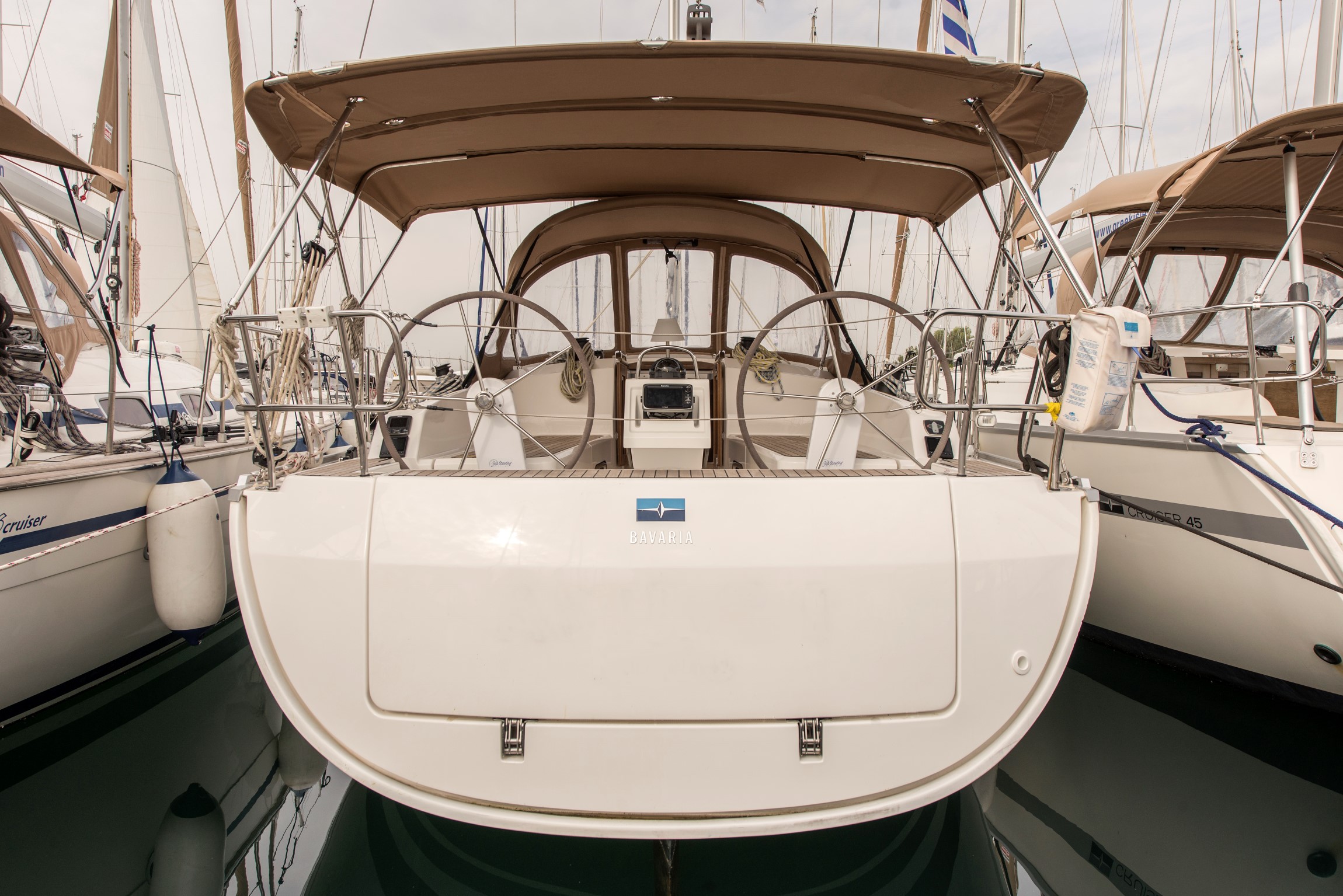 | Outside | 220 V-Landanschluss, Badeleiter, Badeplattform, Biminitop, Cockpitdusche, Cockpitlautsprecher, Cockpittisch, elektr. Ankerwinsch, Gangway, Segel-Flickwerkzeug, Solaranlage, Treibanker, Windex |