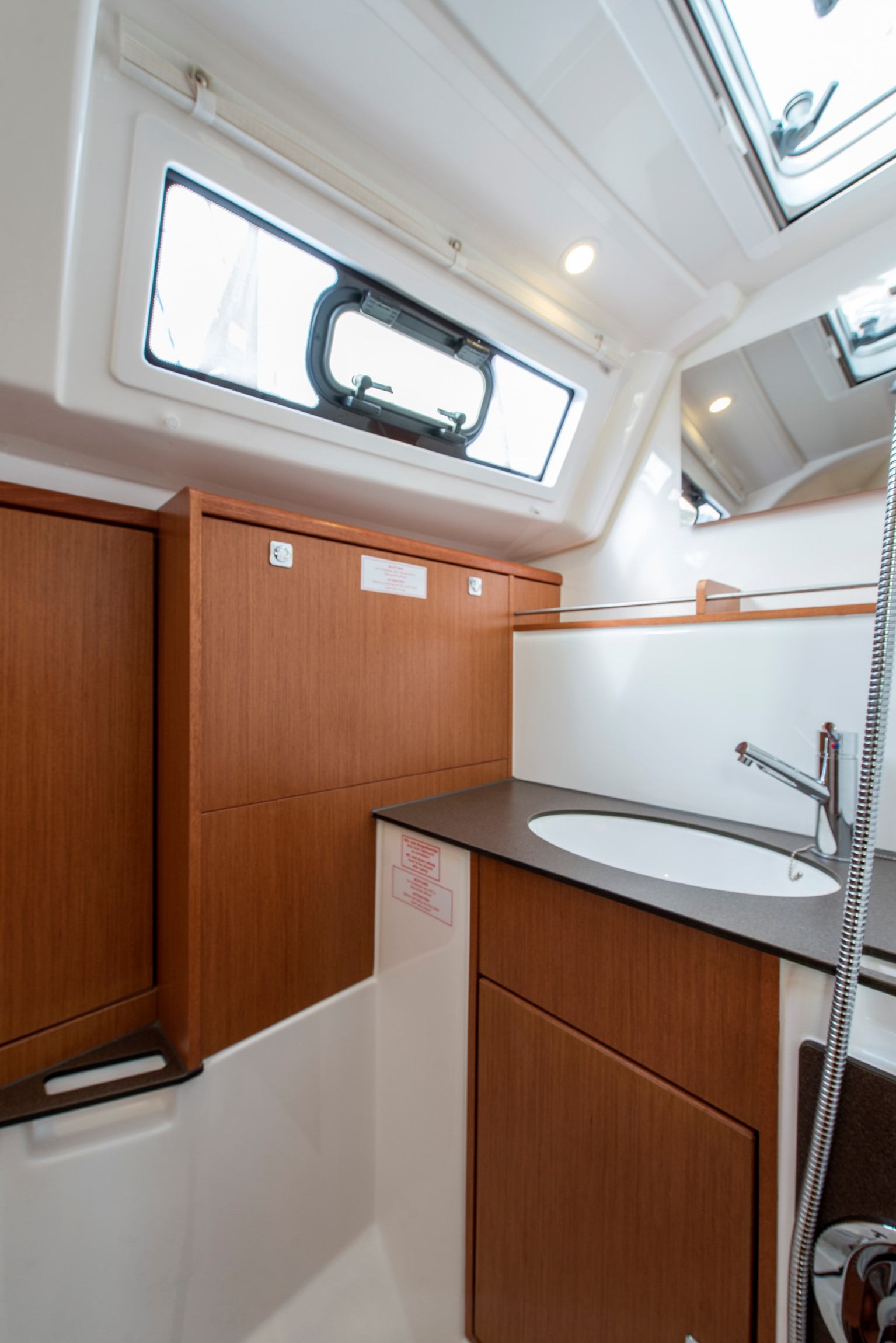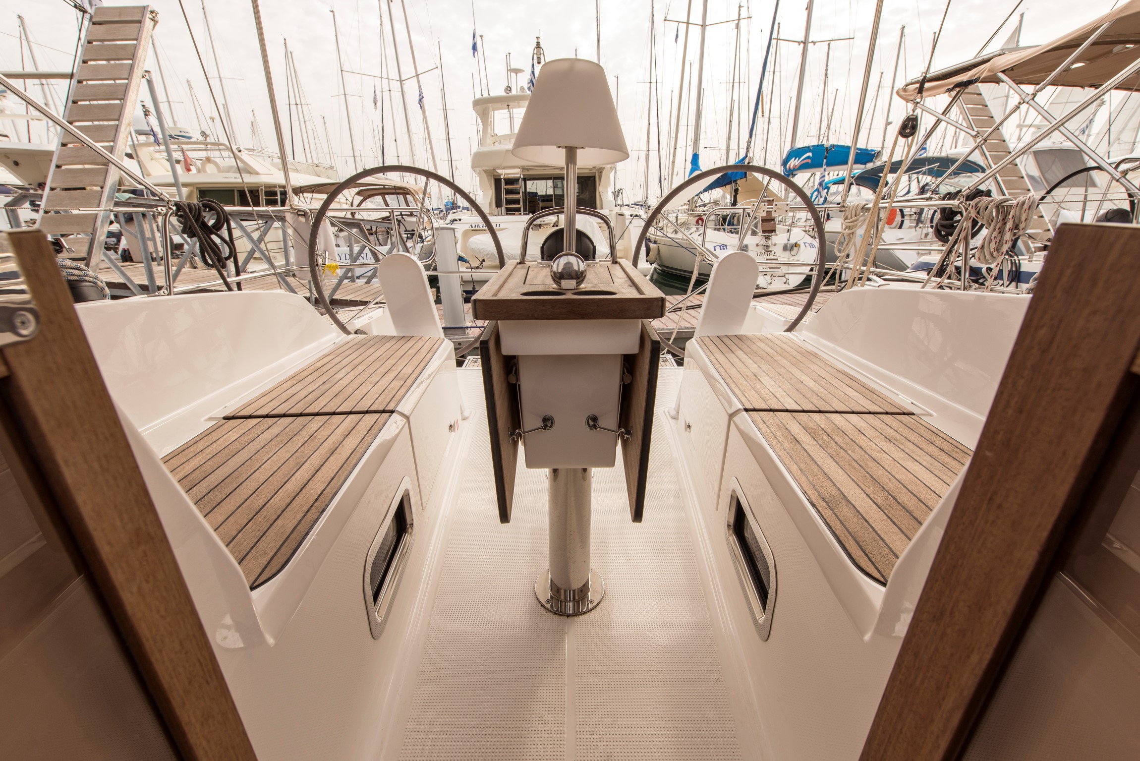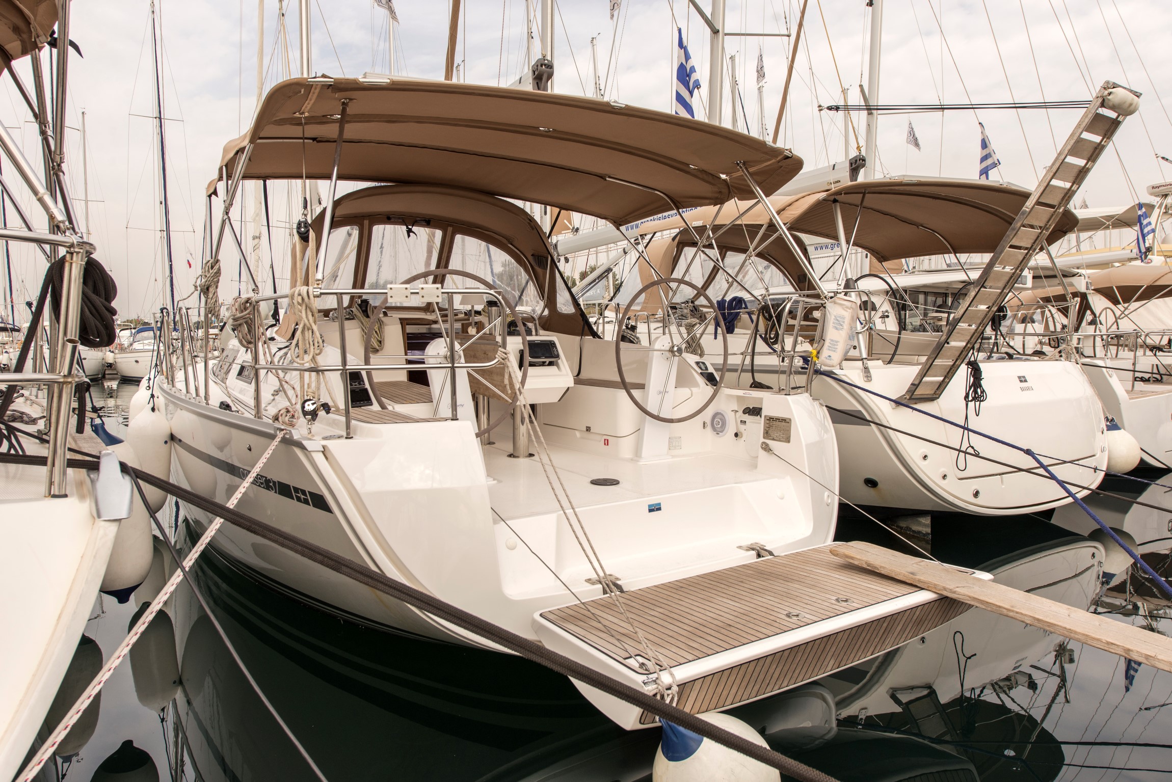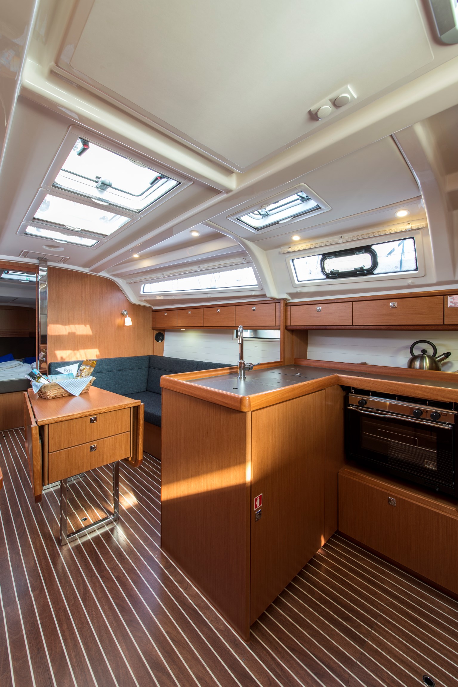 | Outside | 220 V-Landanschluss, Badeleiter, Badeplattform, Biminitop, Cockpitdusche, Cockpitlautsprecher, Cockpittisch, elektr. Ankerwinsch, Gangway, Segel-Flickwerkzeug, Solaranlage, Treibanker, Windex |