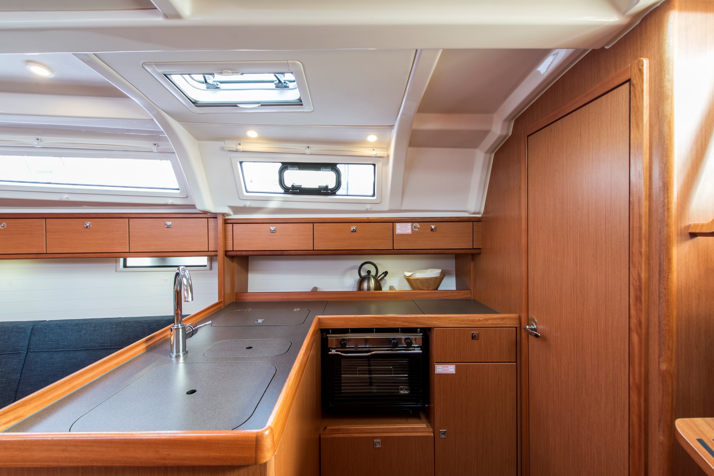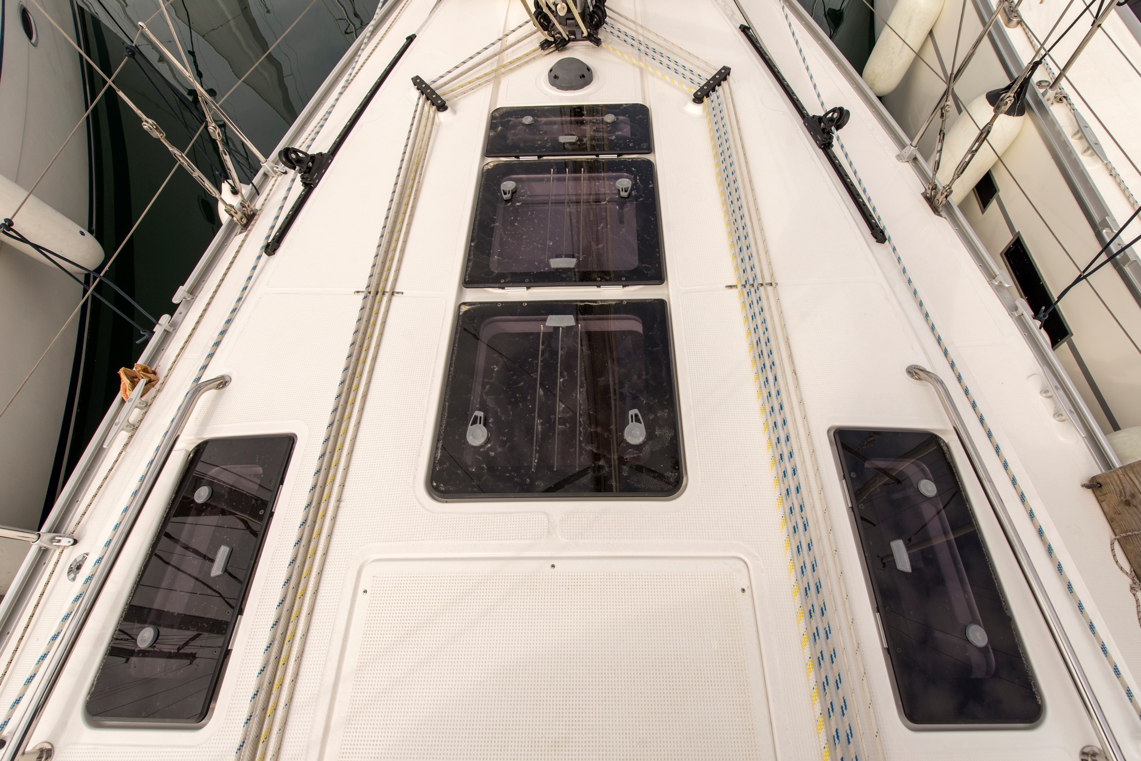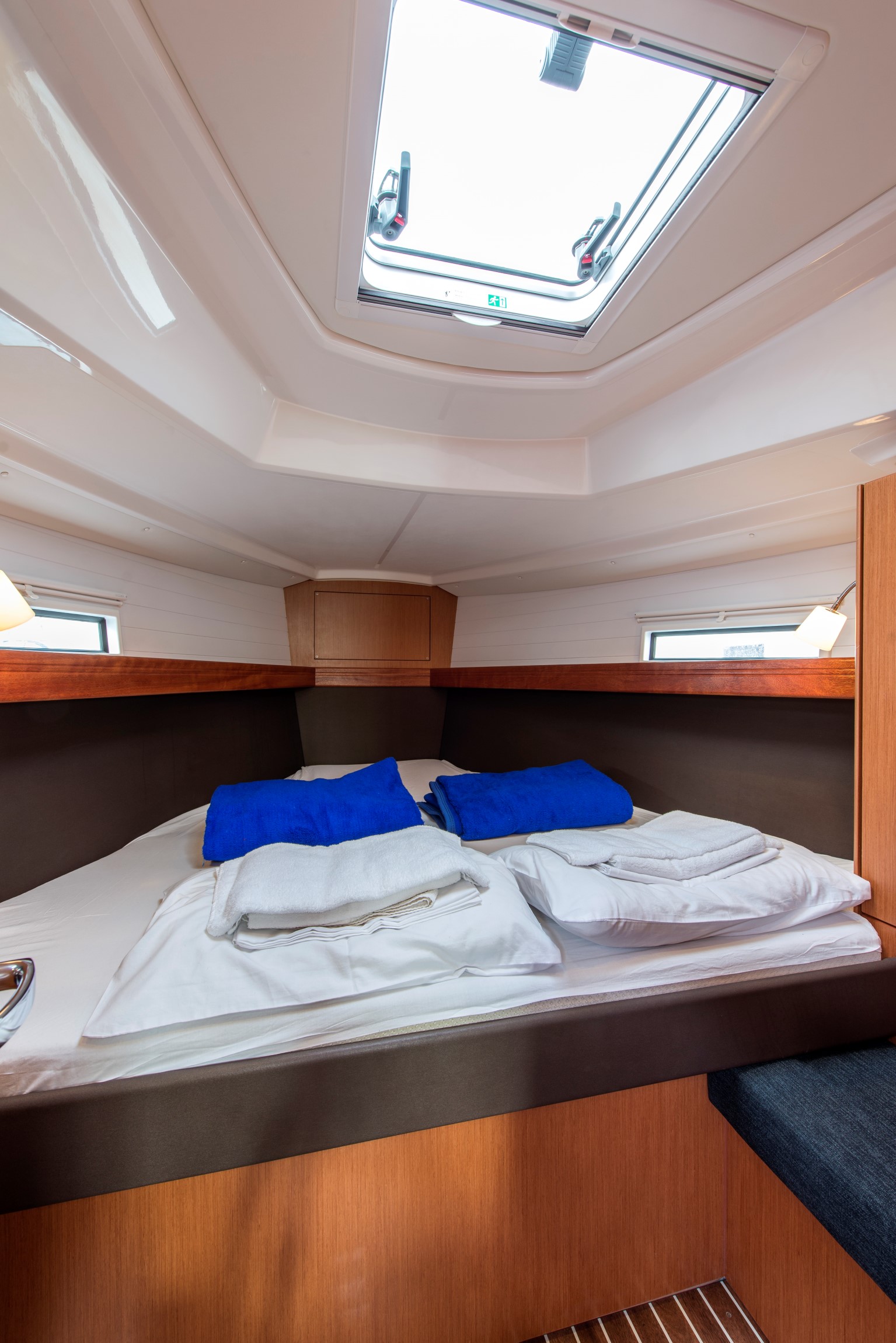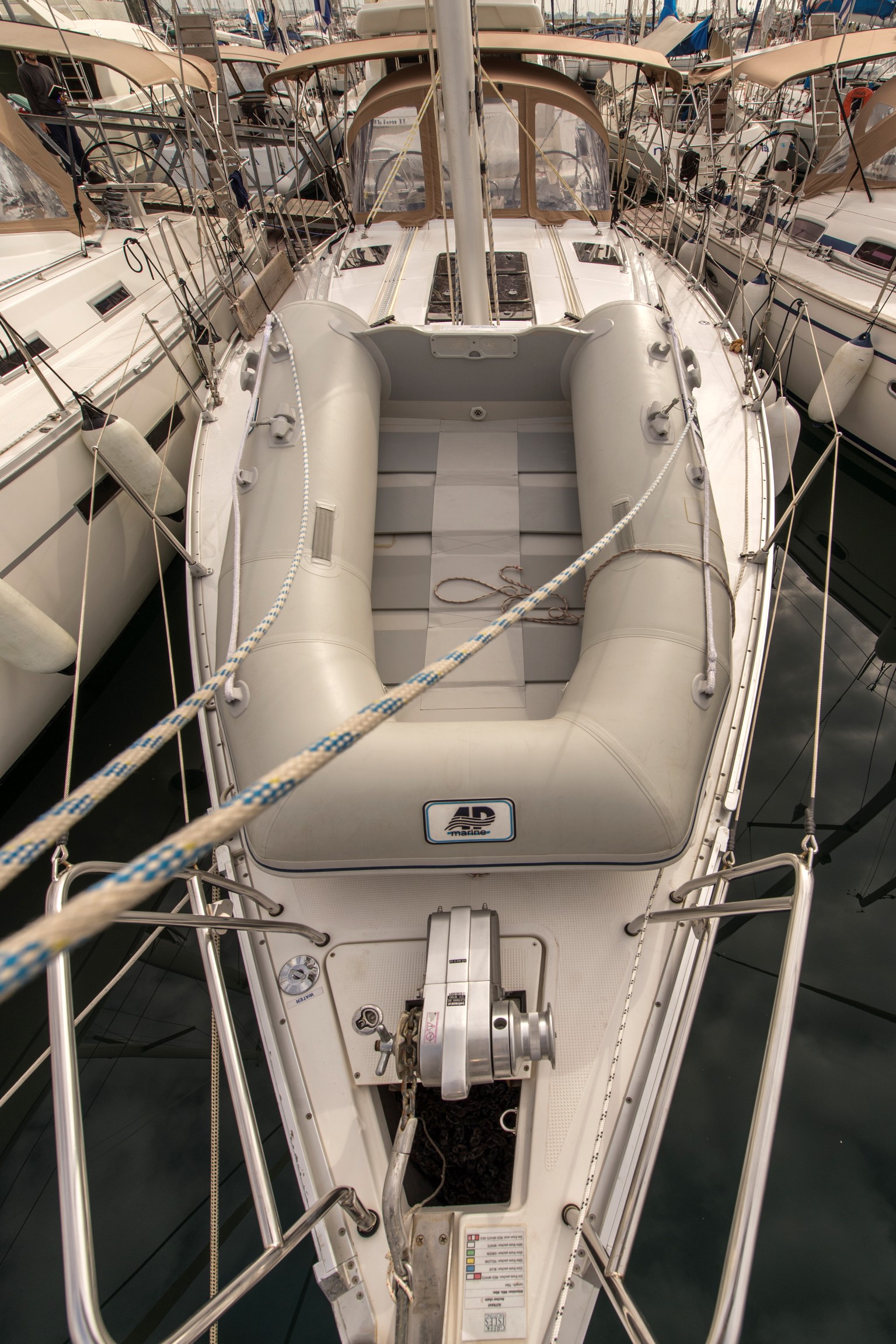| Safety | Automatikwesten, Autopilot, Bootsmannstuhl, Bordapotheke, Bordwerkzeug, Bugstrahlruder, elektr. Bilgepumpe, Epirb, Flaggen, GMDSS, Leuchtboje, Navigationslichter, Notpinne, Notsignale, Reparaturset für Beiboot, Rettungsinsel, Rettungskragen, Sicherheitsgurt, Taschenlampe, UKW-Funk |