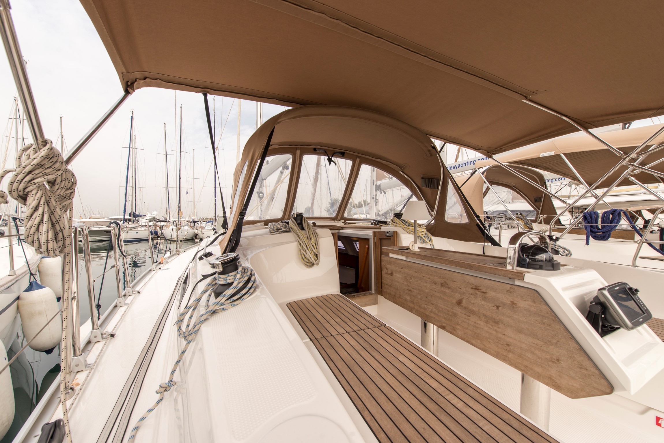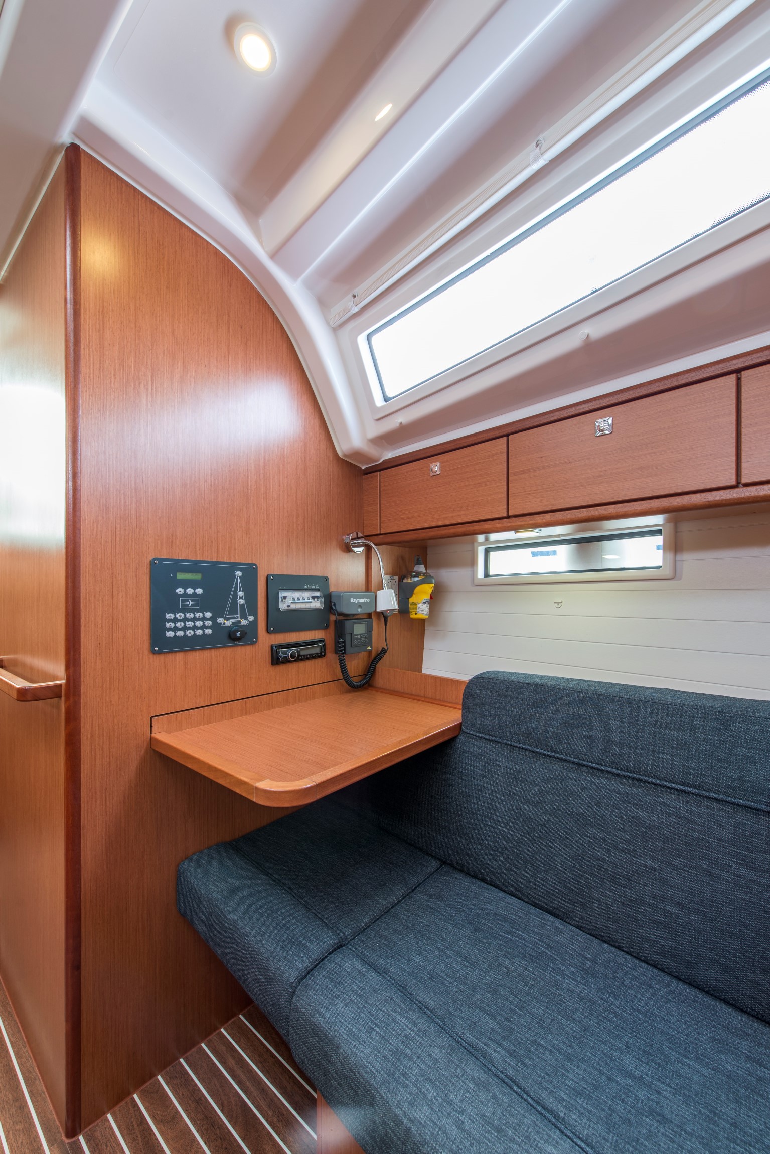 | Navigation | Barometer, Echolot, Fernglas, GPS mit Farbkartenplotter im Cockpit, Hafenhandbücher, Handpeilkompass, Seekarten, Windmesser |