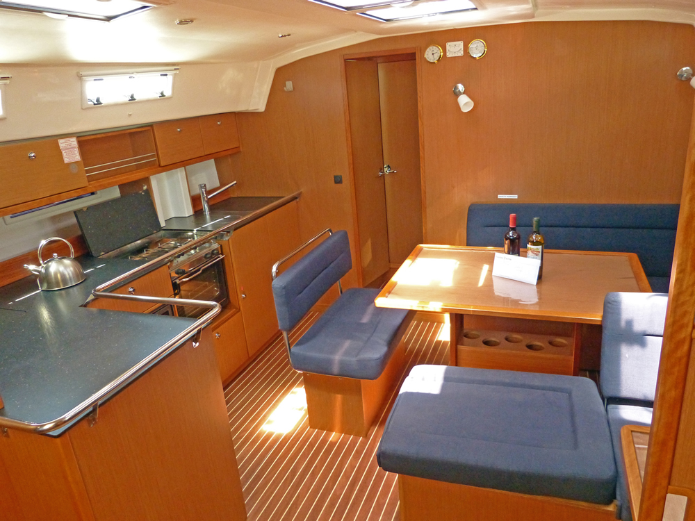 | Outside | Anker mit Kette, Badeleiter, Biminitop, Bootshaken, Cockpitdusche, Cockpitlautsprecher, Cockpittisch, Deckbürste, elektr. Ankerwinsch, Fender, Festmacherleinen, Gangway, Sprayhood, Teak im Cockpit |