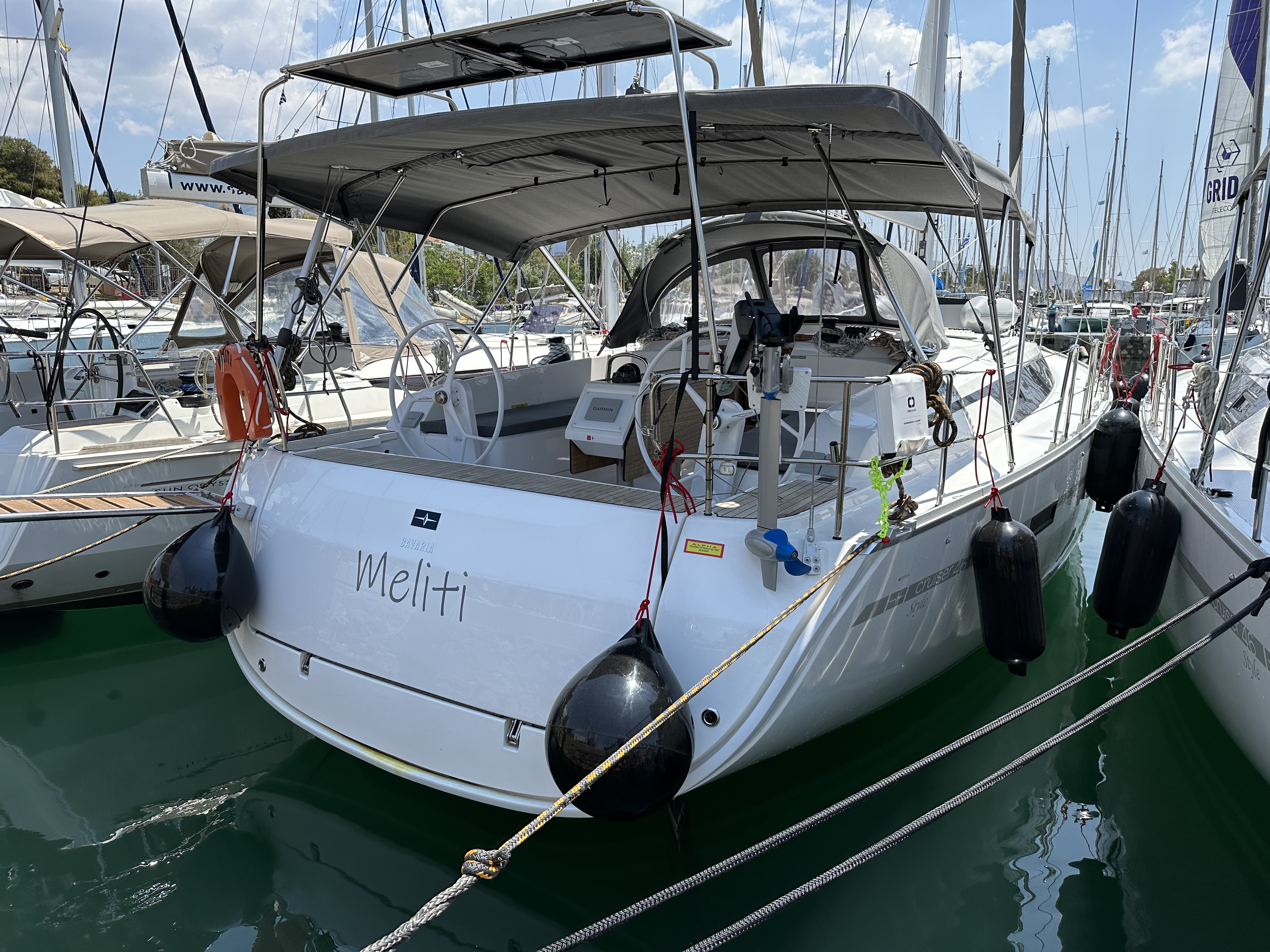| Outside | Anker mit Kette, Badeleiter, Badeplattform, Biminitop, Bootshaken, Cockpitdusche, Cockpitlautsprecher, Cockpitpolster, elektr. Ankerwinsch, Festmacherleinen, Gangway, Solaranlage, Sprayhood, Wantenschneider |