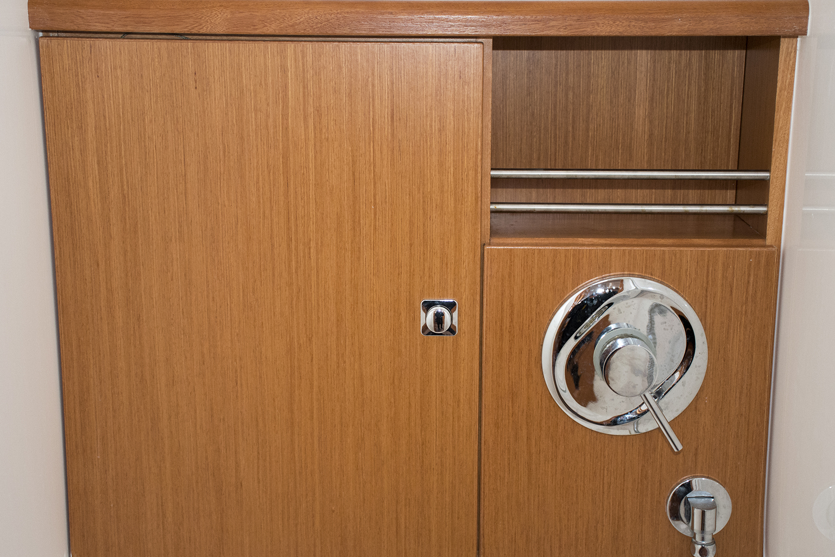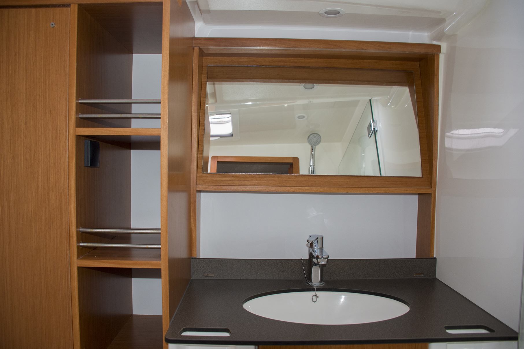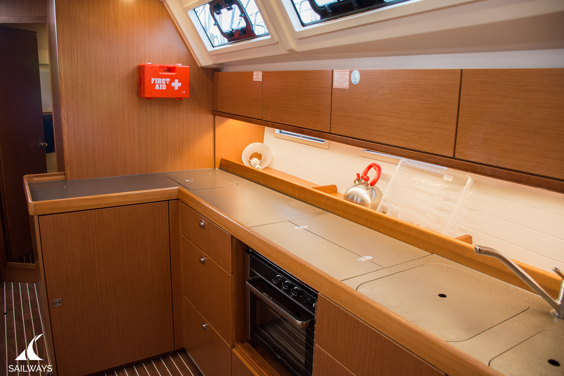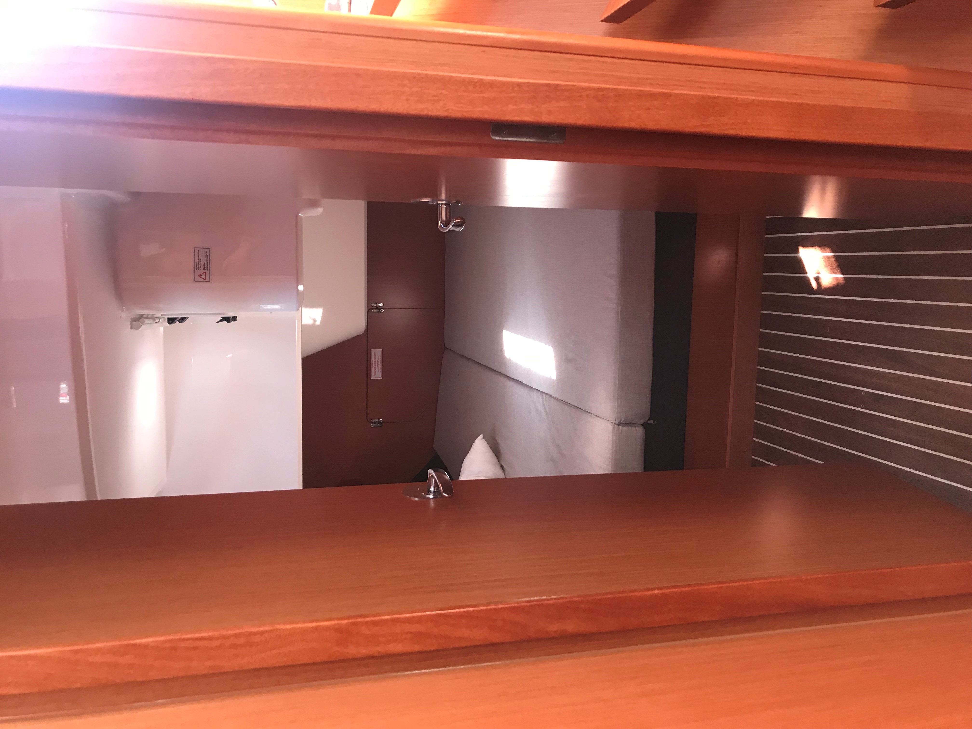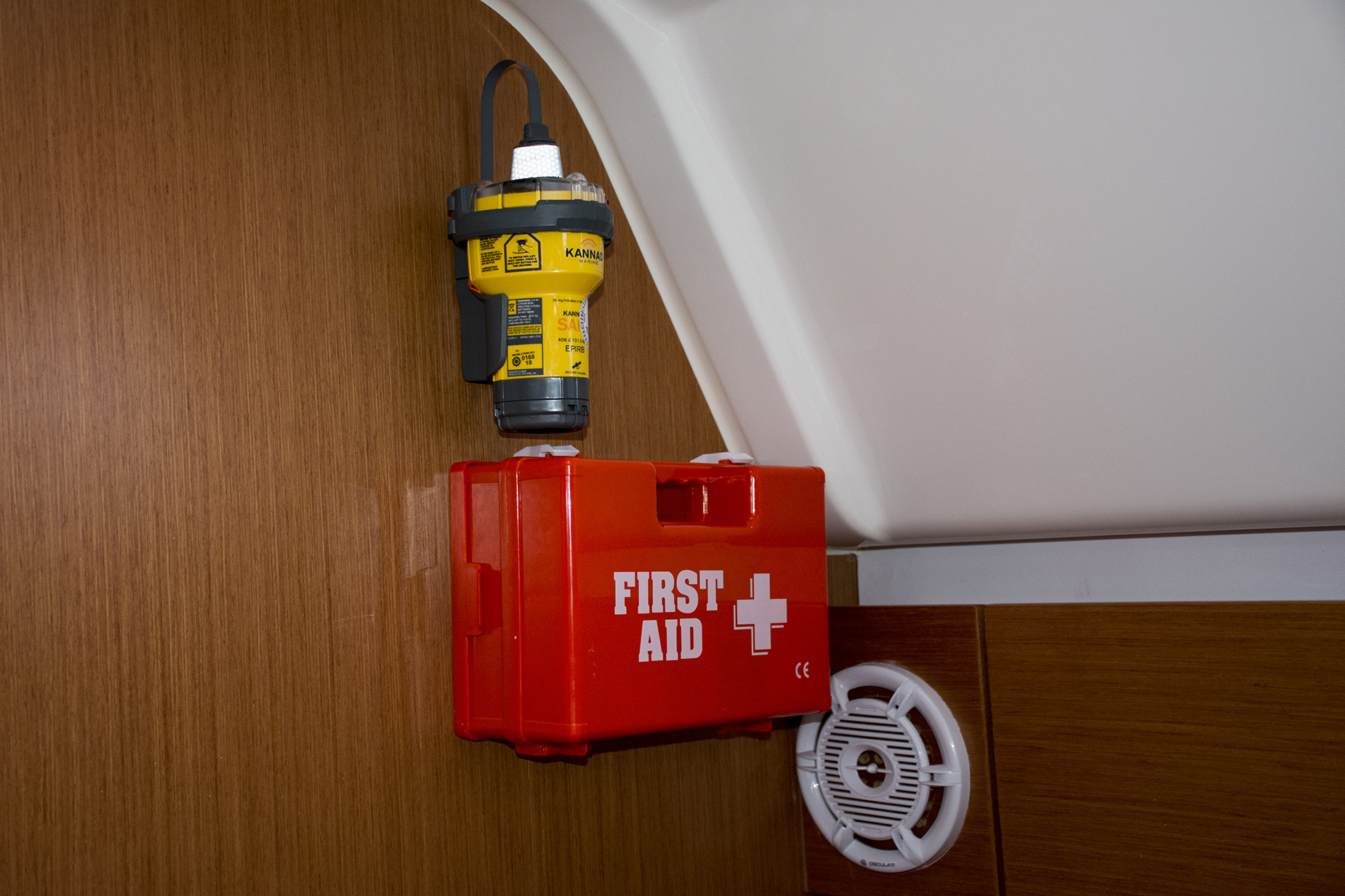 | Safety | Autopilot, Bordapotheke, Bugstrahlruder, elektr. Bilgepumpe, Feststoffschwimmwesten, Feuerlöscher, Lifebelts, Notsignale, Rettungsinsel, Rettungskragen, Sicherheitsausrüstung, UKW-Funk |