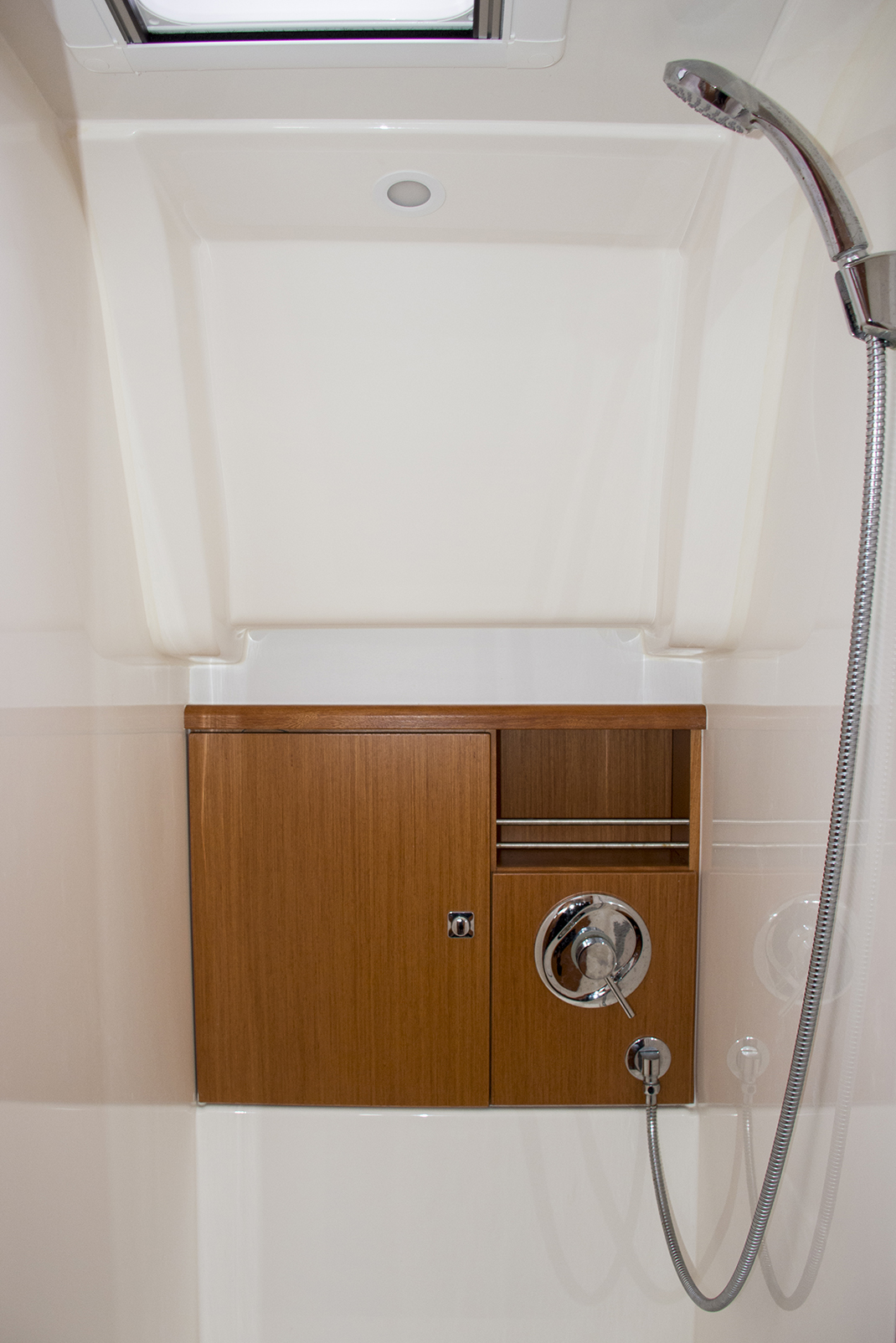 | Outside | Anker mit Kette, Biminitop, Cockpitdusche, Cockpitlautsprecher, Cockpitpolster, elektr. Ankerwinsch, Sprayhood |