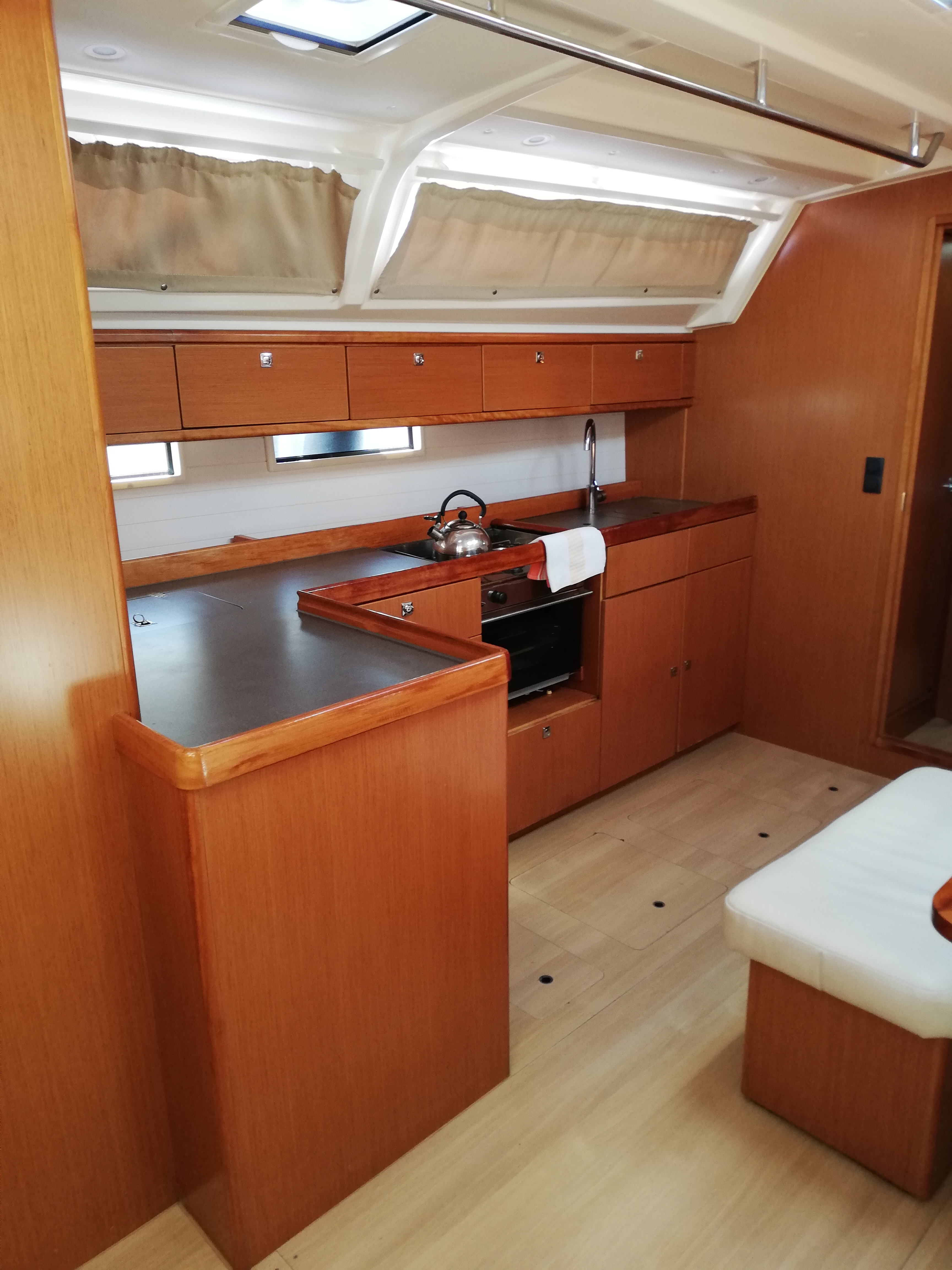 | Safety | Autopilot, Bordapotheke, Bordwerkzeug, Bugstrahlruder, elektr. Bilgepumpe, Epirb, Feststoffschwimmwesten, Handbilgepumpe, Motor-Ersatzteile, Nebelhorn, Notpinne, Notsignale, Reparaturset für Beiboot, Rettungsinsel, Sicherheitsausrüstung, UKW-Funk, Zweitanker |