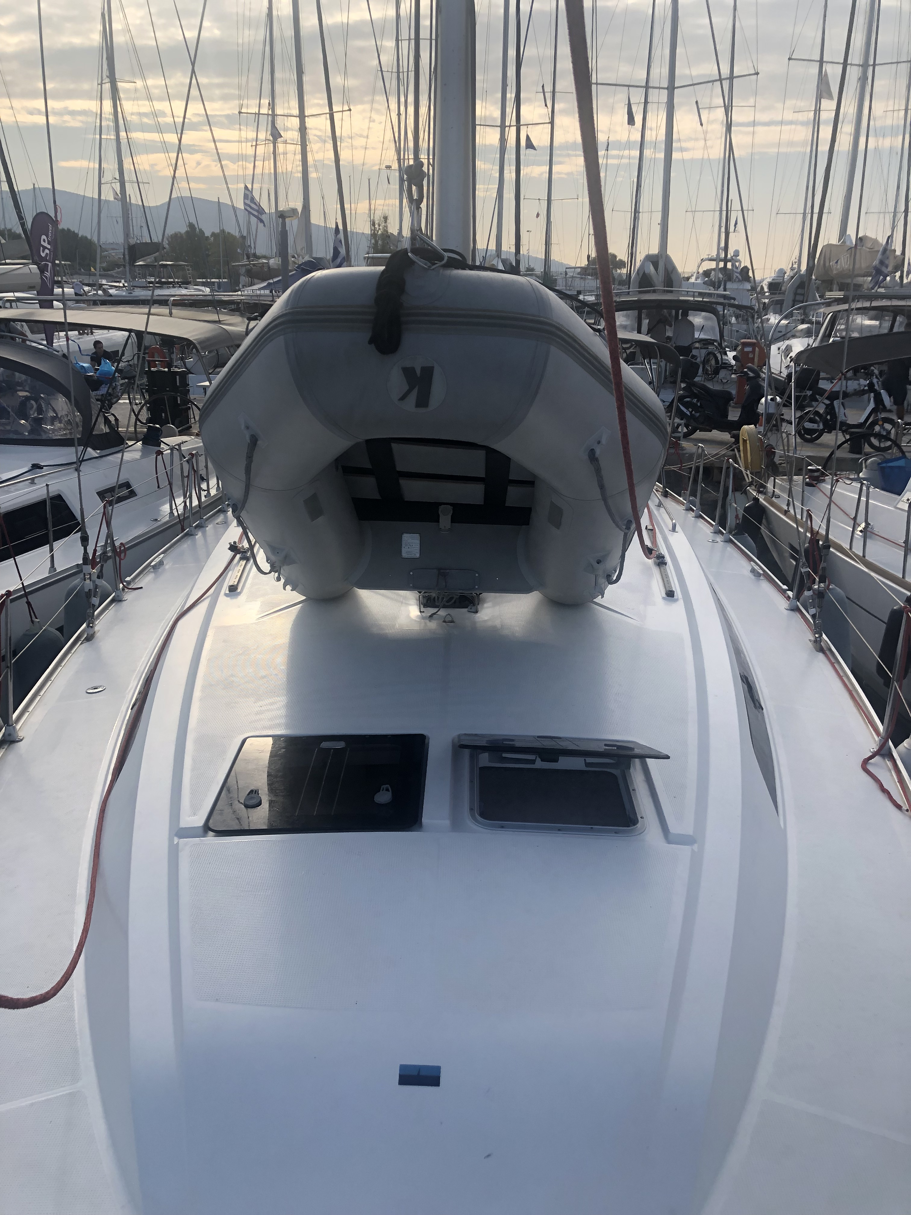| Outside | 220 V-Landanschluss, Anker mit Kette, Außendusche, Badeleiter, Badeplattform, Biminitop, Bootshaken, Cockpitdusche, Cockpitlautsprecher, Cockpitpolster, Cockpittisch, Deckbürste, Dieselkanister , elektr. Ankerwinsch, Fender, Festmacherleinen, Gangway, Kunststoff-Eimer (Pütz), Schnorchelausrüstung, Solaranlage, Sprayhood, Wasserschlauch, Winschen |