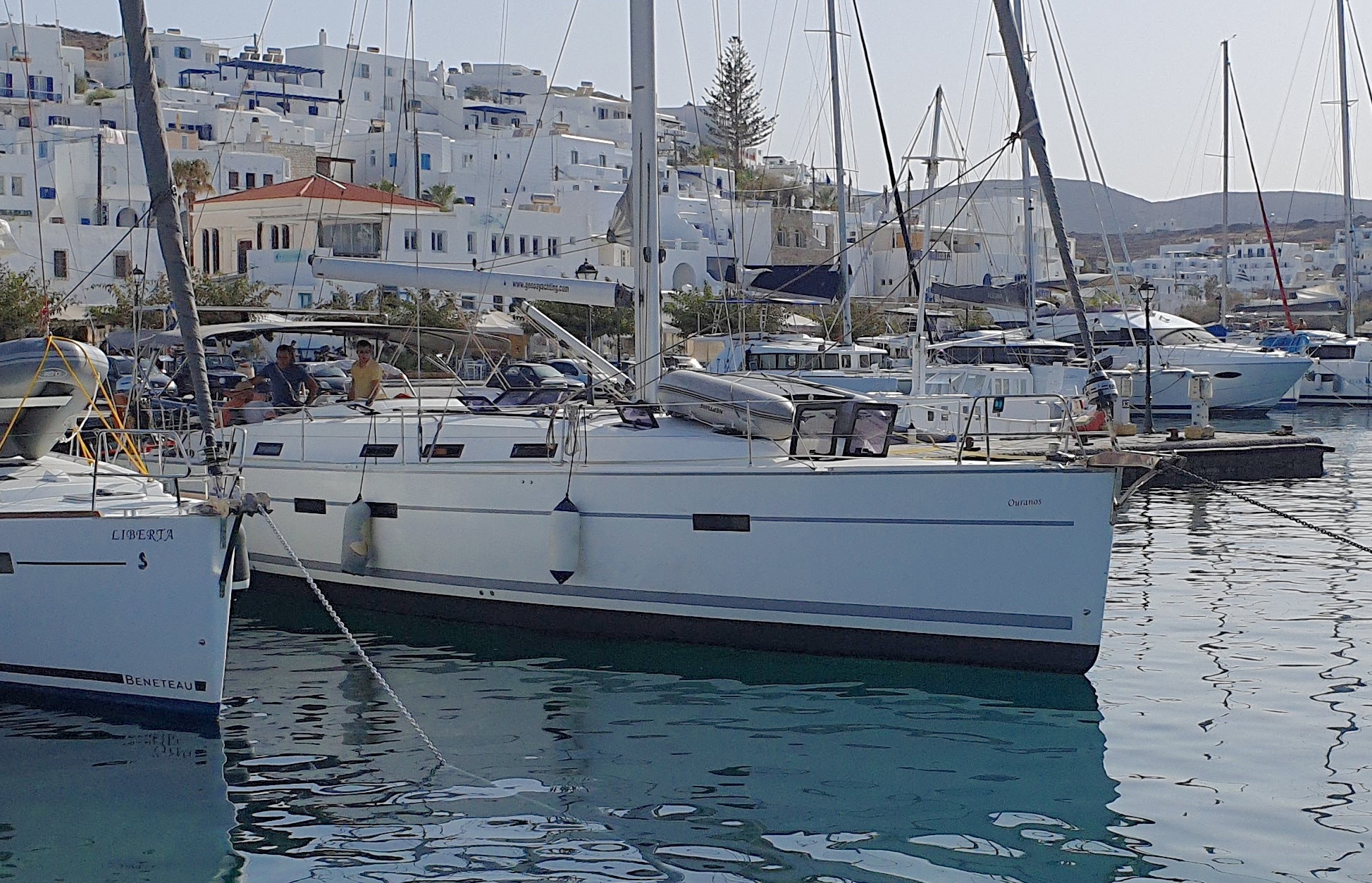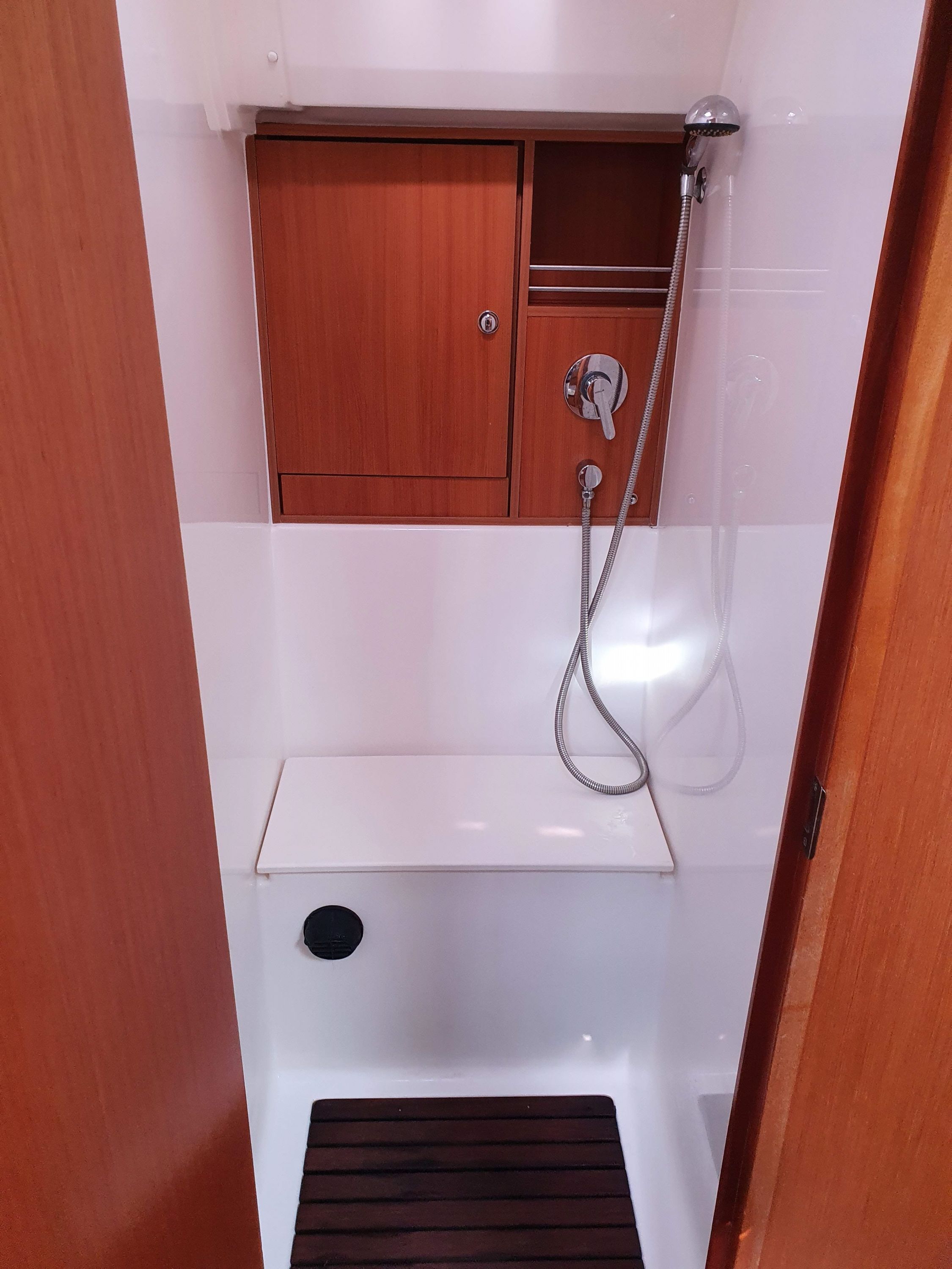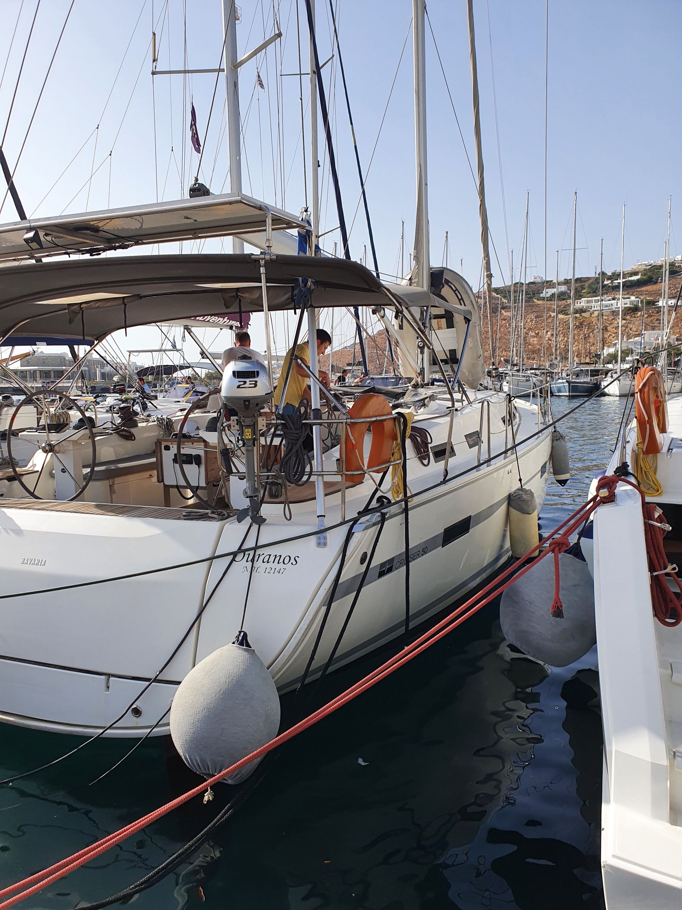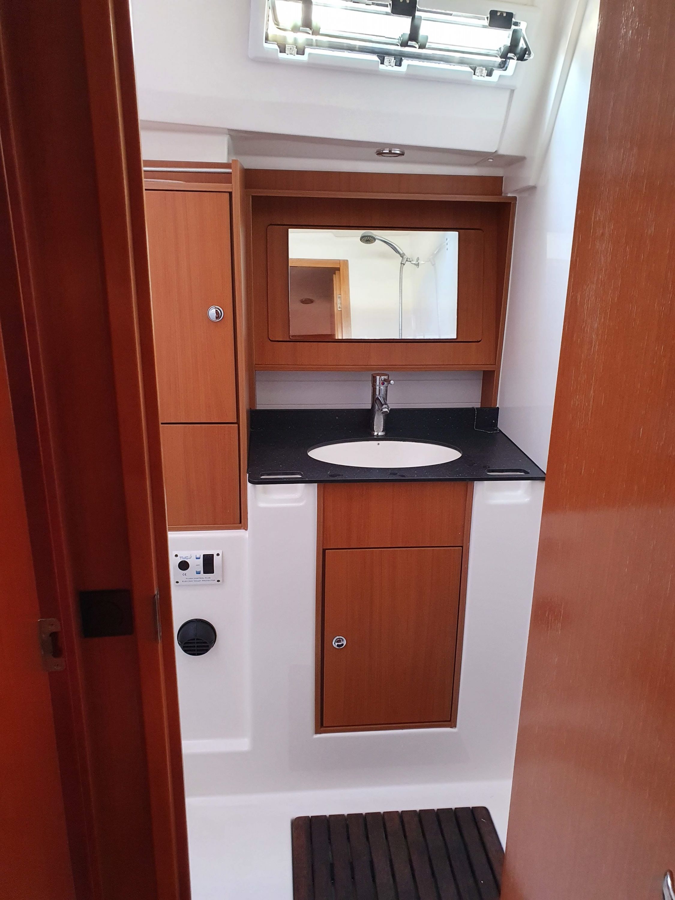 | Outside | Biminitop, Cockpitlautsprecher, elektr. Ankerwinsch, Solaranlage, Sprayhood, Teak im Cockpit |