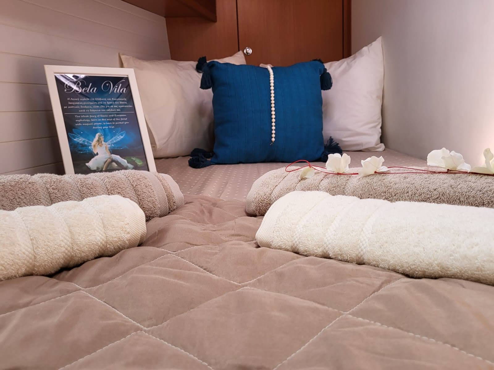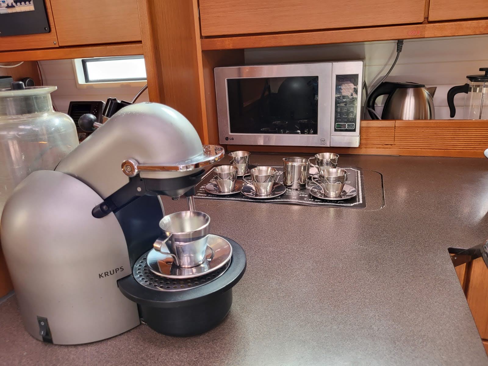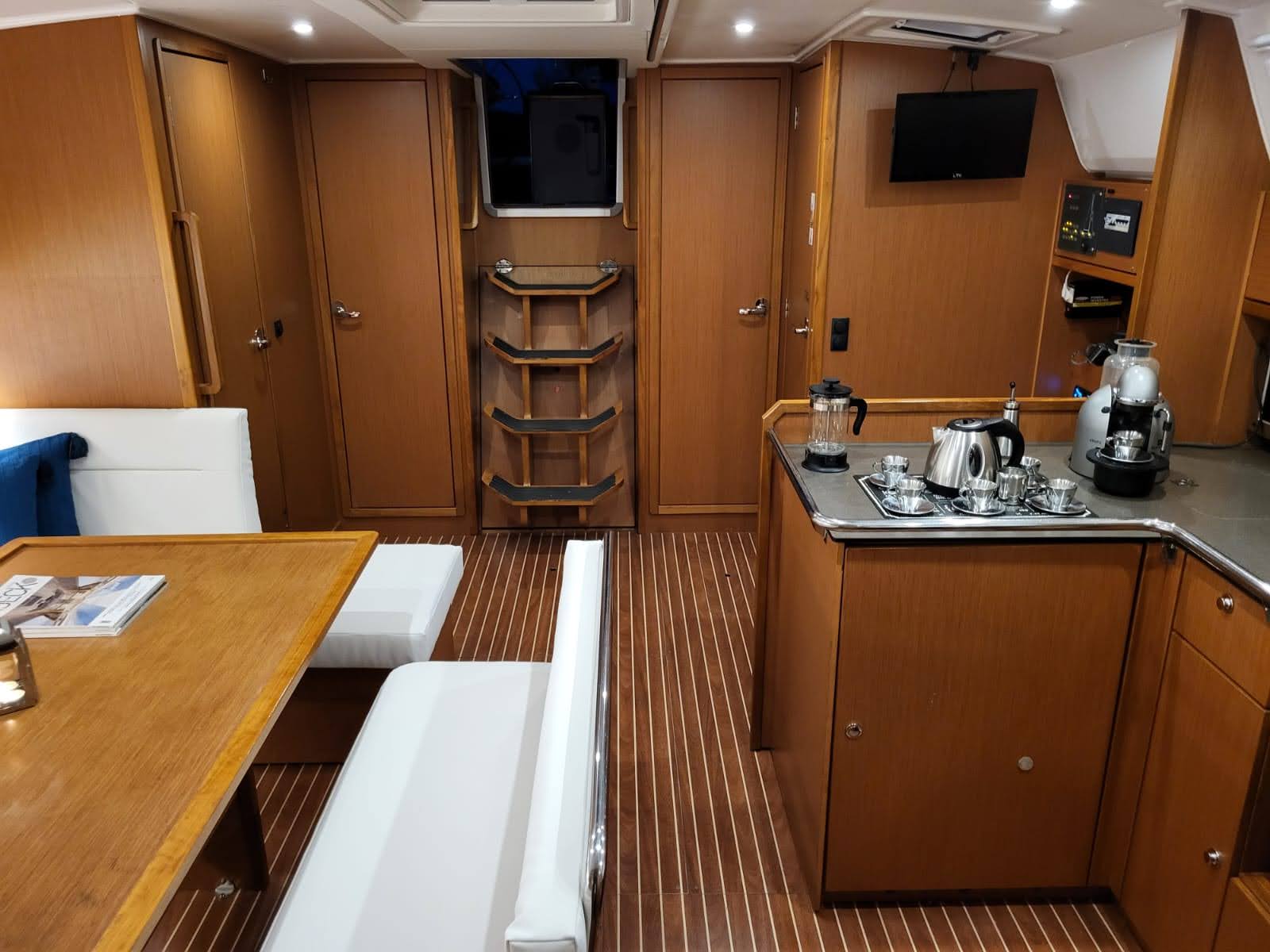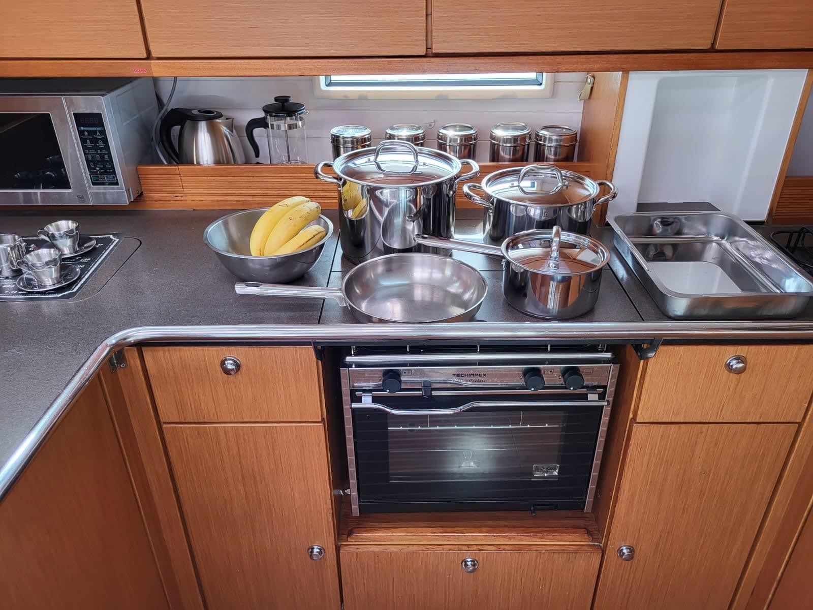 | Inside | AUX Eingang, Backofen, Bügeleisen, Dusche, Fäkalientank, Fön, Generator, Heizung, Inverter 12V/220V, Kaffeemaschine, Klimaanlage (ohne Landstrombedarf), Kühlschrank, Landstromkabel, Mikrowelle, Safe für Wertsachen, Seewasserentsalzungsanlage, TV, Warmwasser, WC (elektr.) |