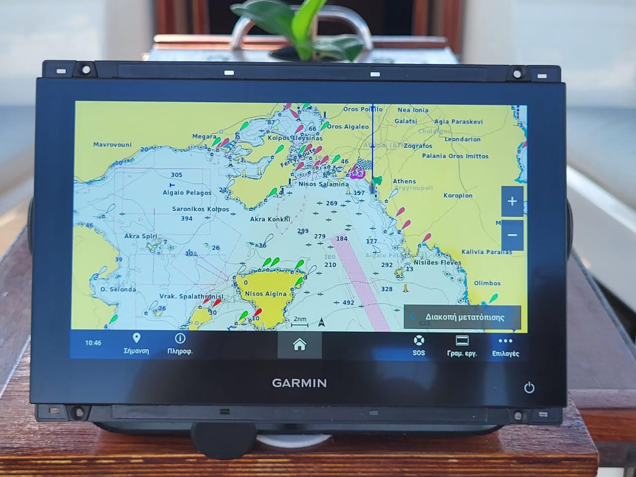 | Navigation | Echolot, Fernglas, GPS mit Kartenplotter im Cockpit, Radar |
