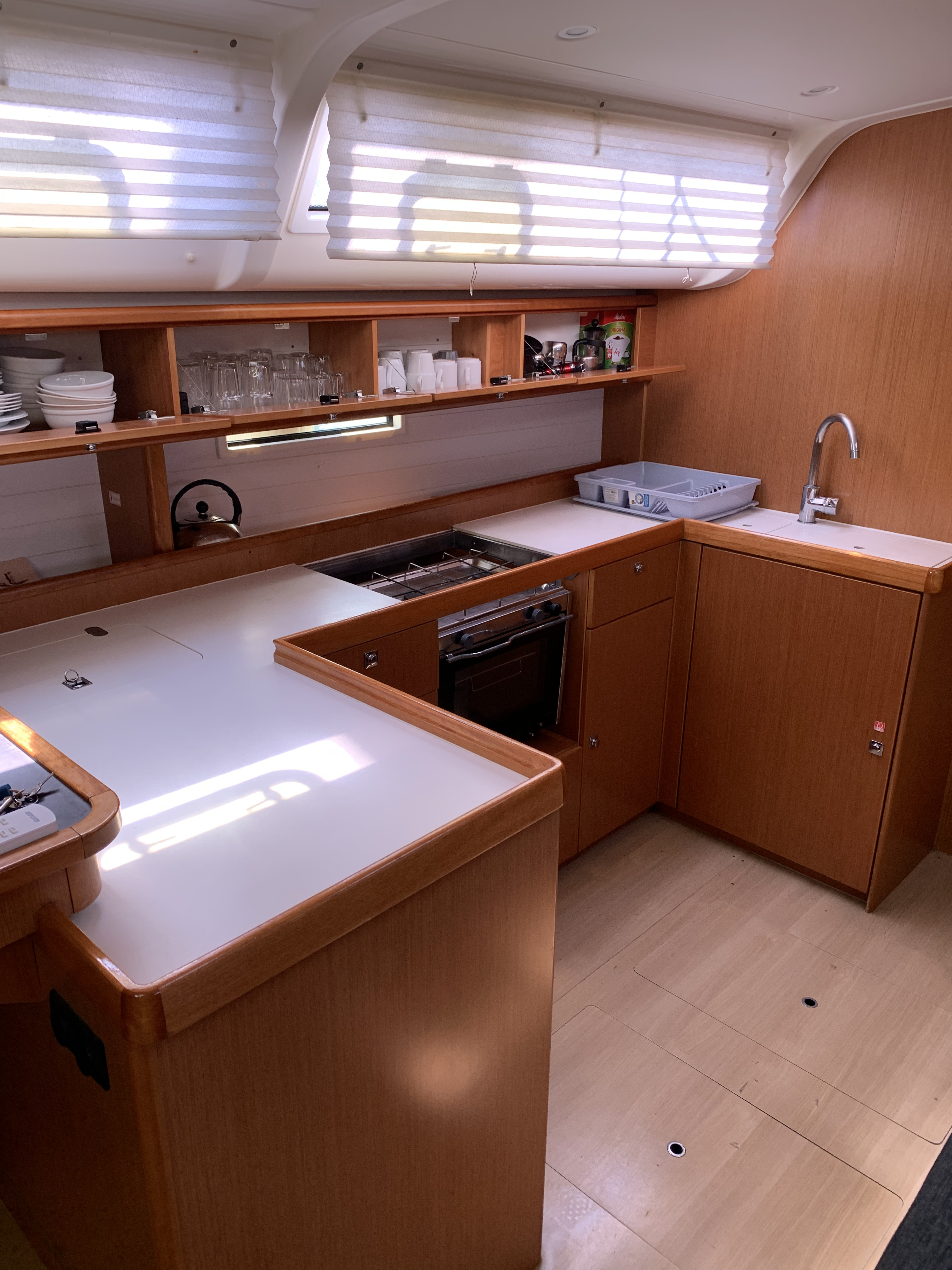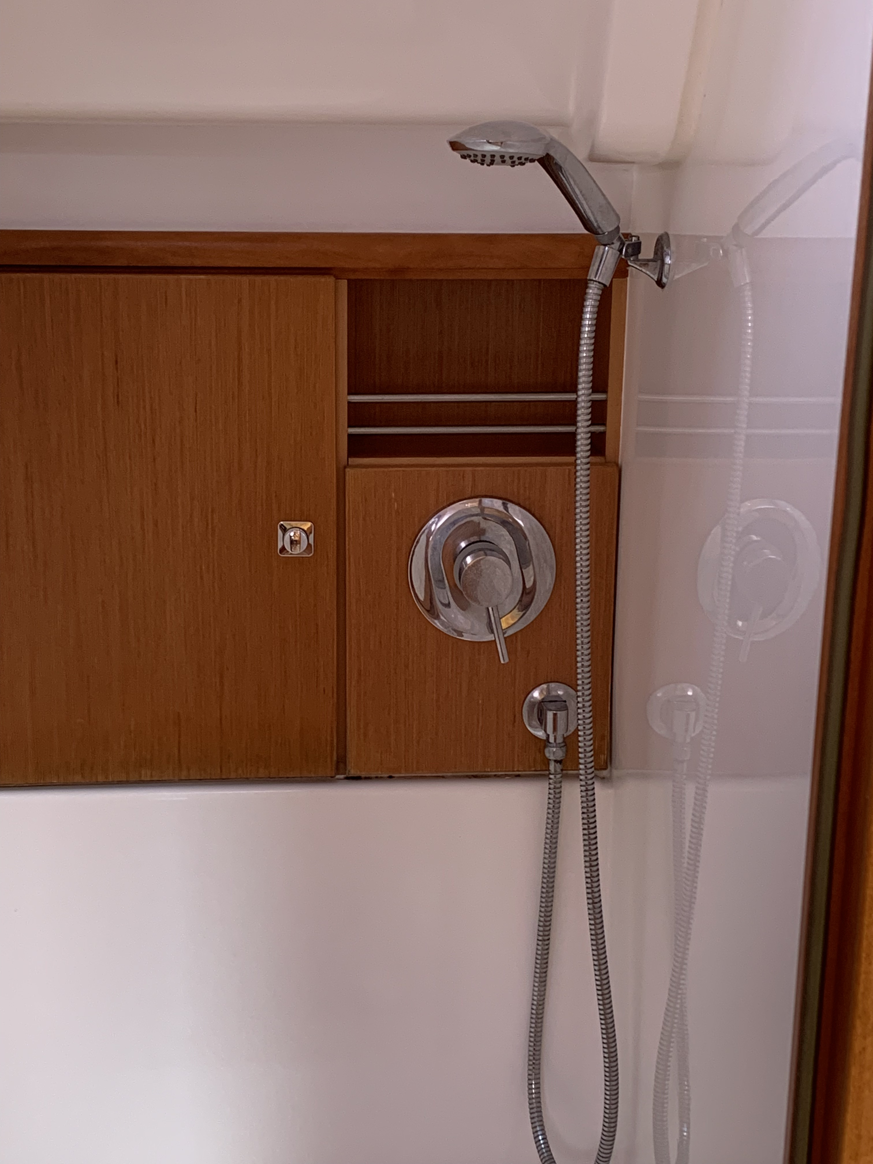 | Outside | 220 V-Landanschluss, Badeleiter, Badeplattform, Biminitop, Cockpitdusche, Cockpitlautsprecher, Cockpittisch, elektr. Ankerwinsch, elektr. Winsch, Solaranlage, Sprayhood |