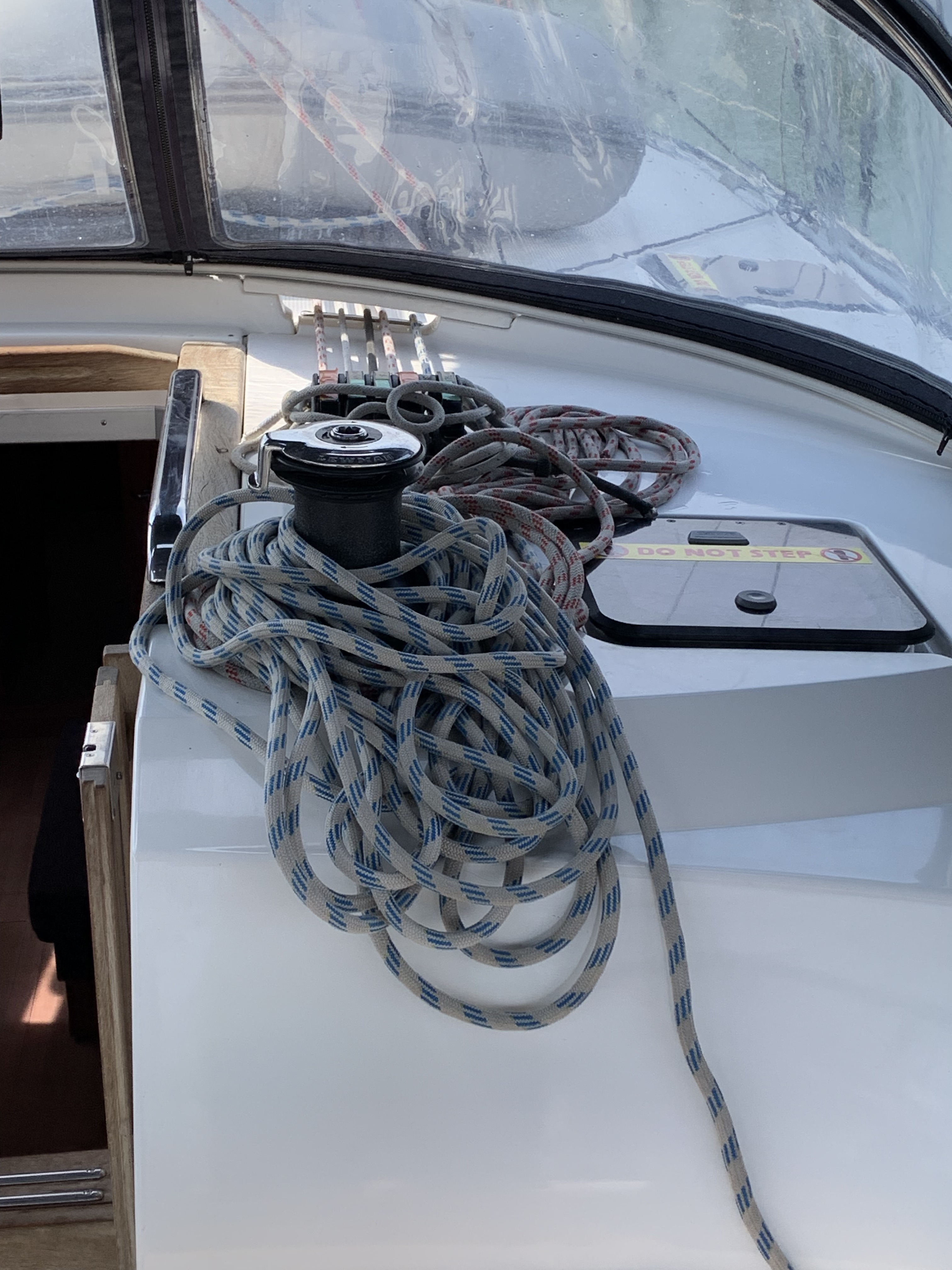 | Navigation | Echolot, Fernglas, GPS mit Kartenplotter im Cockpit, Hafenhandbücher, Kompass, Seekarten, Sumlog, Windmesser |
