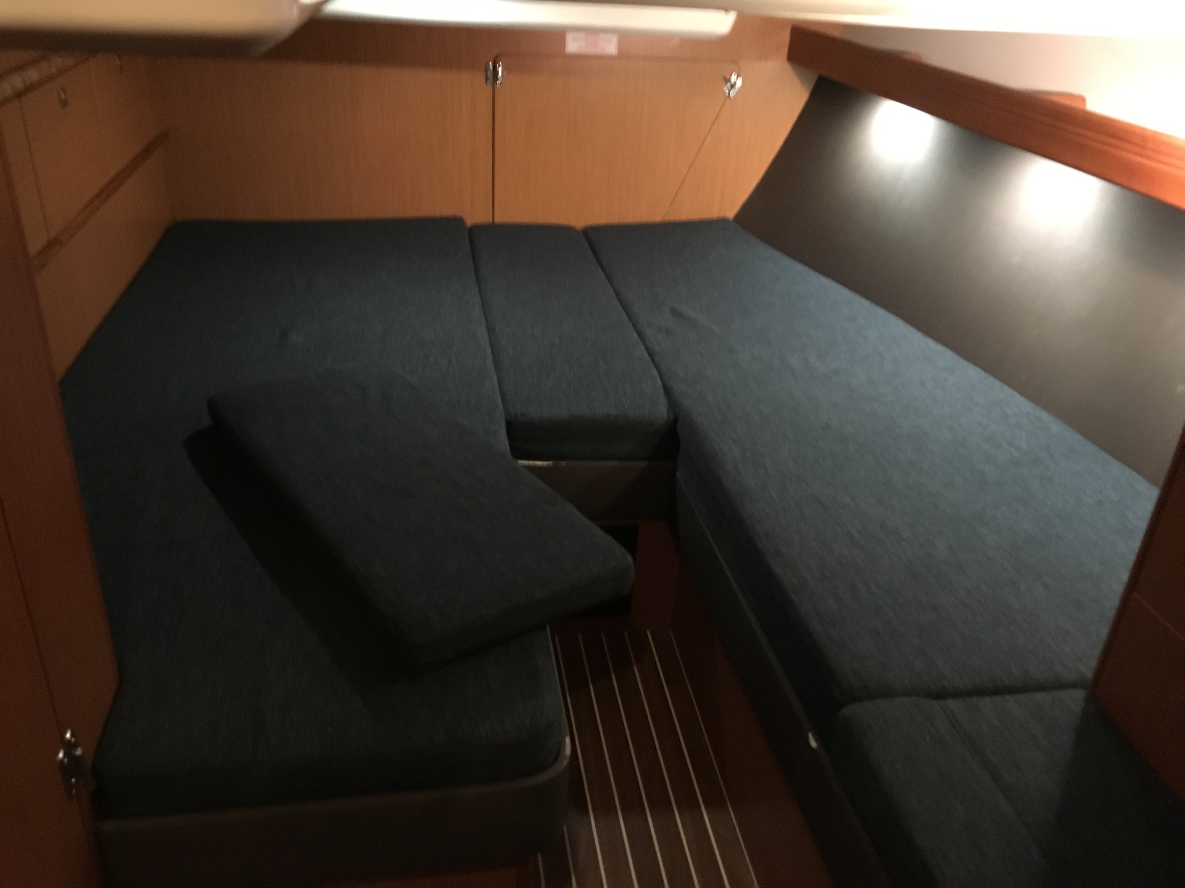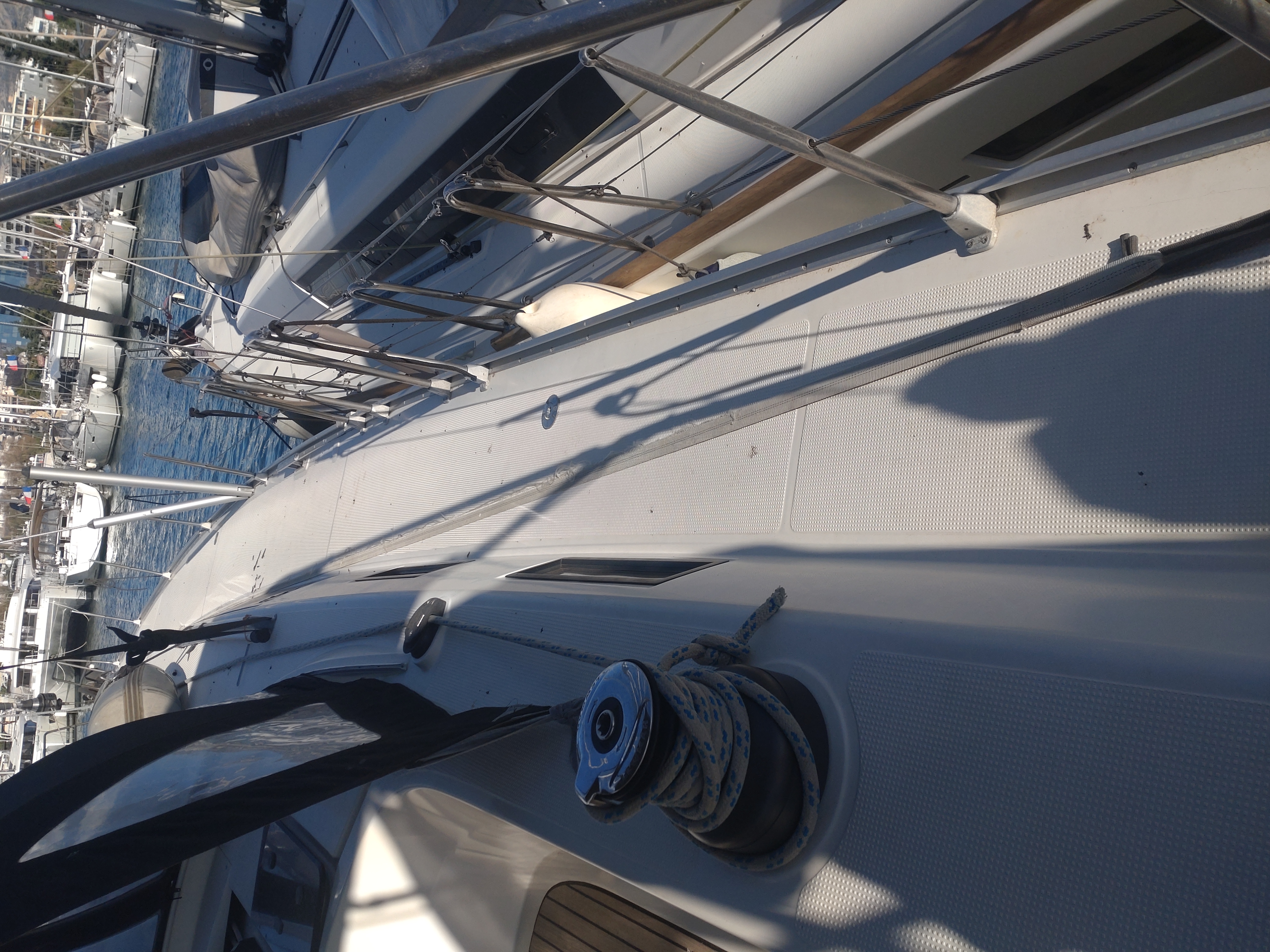 | Outside | Anker mit Kette, Biminitop, Cockpitdusche, Cockpitlautsprecher, Cockpitpolster, Cockpittisch (klappbar), Deckbürste, elektr. Ankerwinsch, Fender, Kunststoff-Eimer (Pütz), Sprayhood |