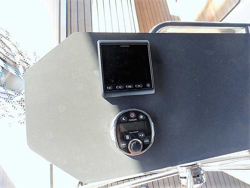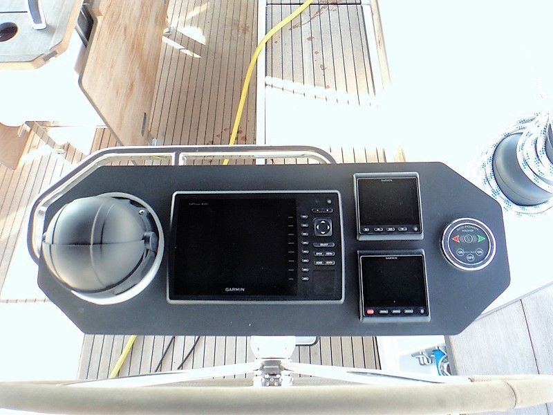 | Navigation | Echolot, GPS mit Kartenplotter im Cockpit, Hafenhandbücher, Navigationsbesteck, Seekarten, Sumlog, Windmesser |