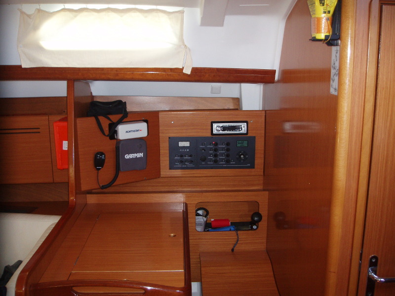 | Outside | 12 V-Anschluss, 220 V-Landanschluss, Biminitop, Cockpitdusche, Cockpitlautsprecher, Cockpittisch, elektr. Ankerwinsch, elektr. Winsch, Solaranlage, Sprayhood |